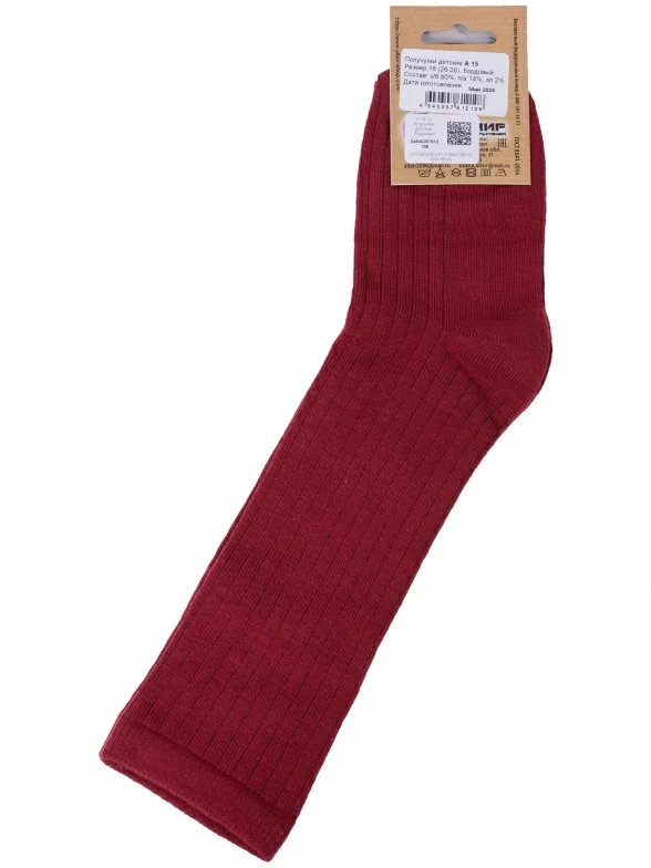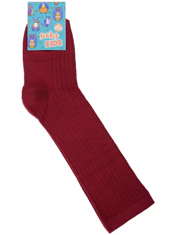 Круглогодичные детские гольфы, цвет бордовый, классические, шов обычный (не бесшовные), принт (рисунок): однотонный, в рубчик, состав: 80% хлопок, 18% полиамид, 2% эластан, арт. А15. Производитель «ООО Альтаир, г. Орск, Оренбургская обл, Россия» под брендом «Альтаир».