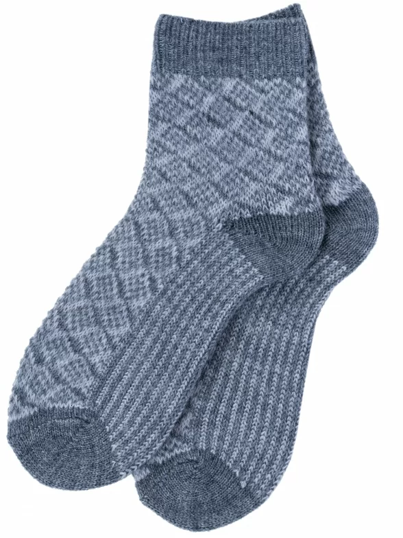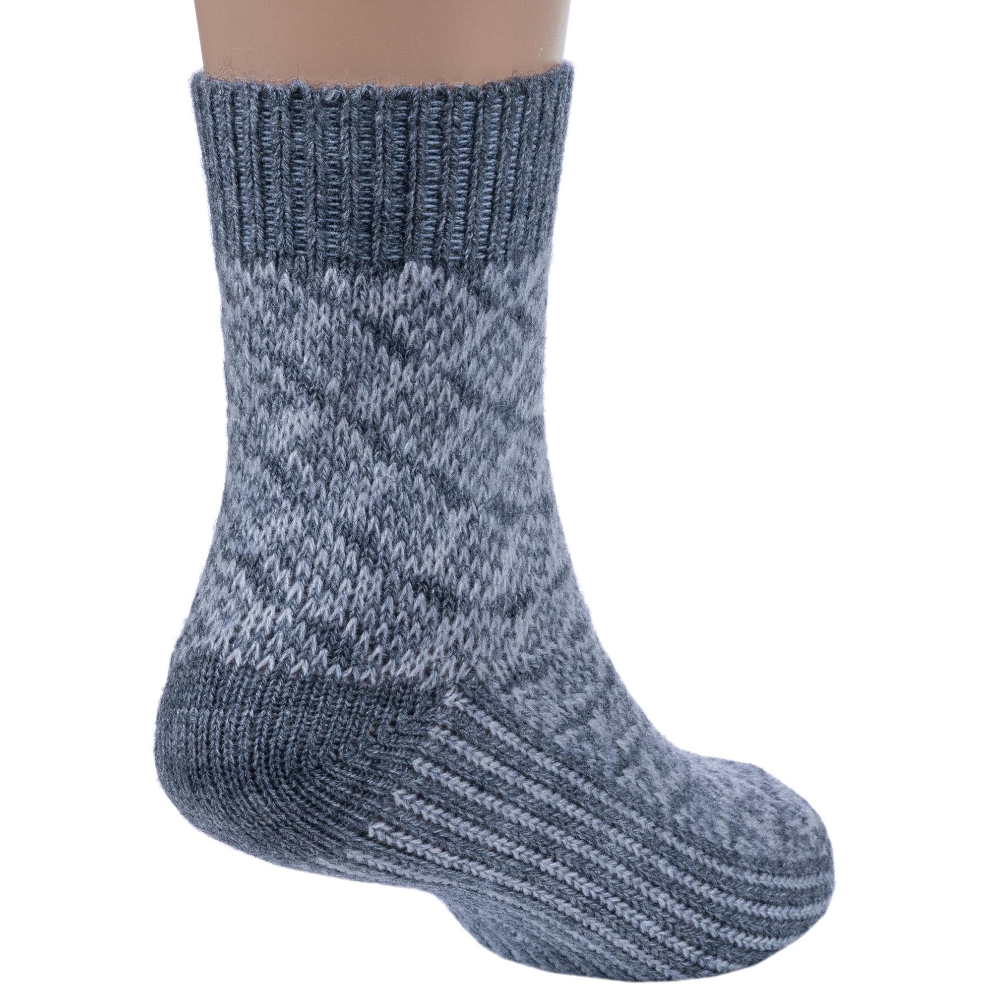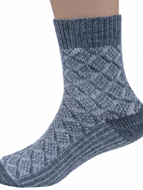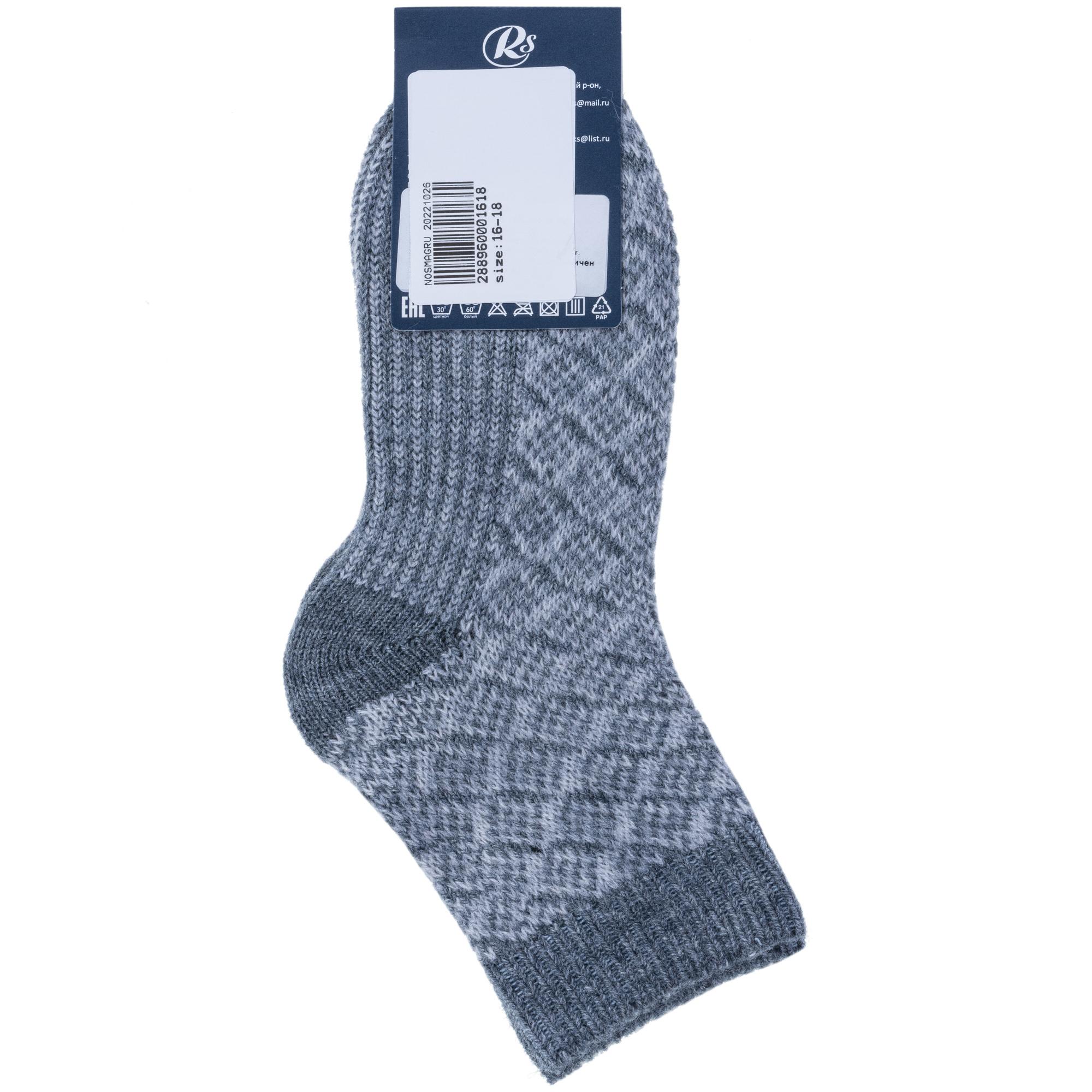 Зимние средней длины детские носки, цвет серый, теплые, классические, шов обычный (не бесшовные), принт (рисунок): геометрия, с узором, состав: 28% шерсть, 62% акрил, 10% полиамид, арт. Д-382. Производитель «ООО Орудьевский трикотаж, Россия» под брендом «Rusocks (орудьевский трикотаж)».