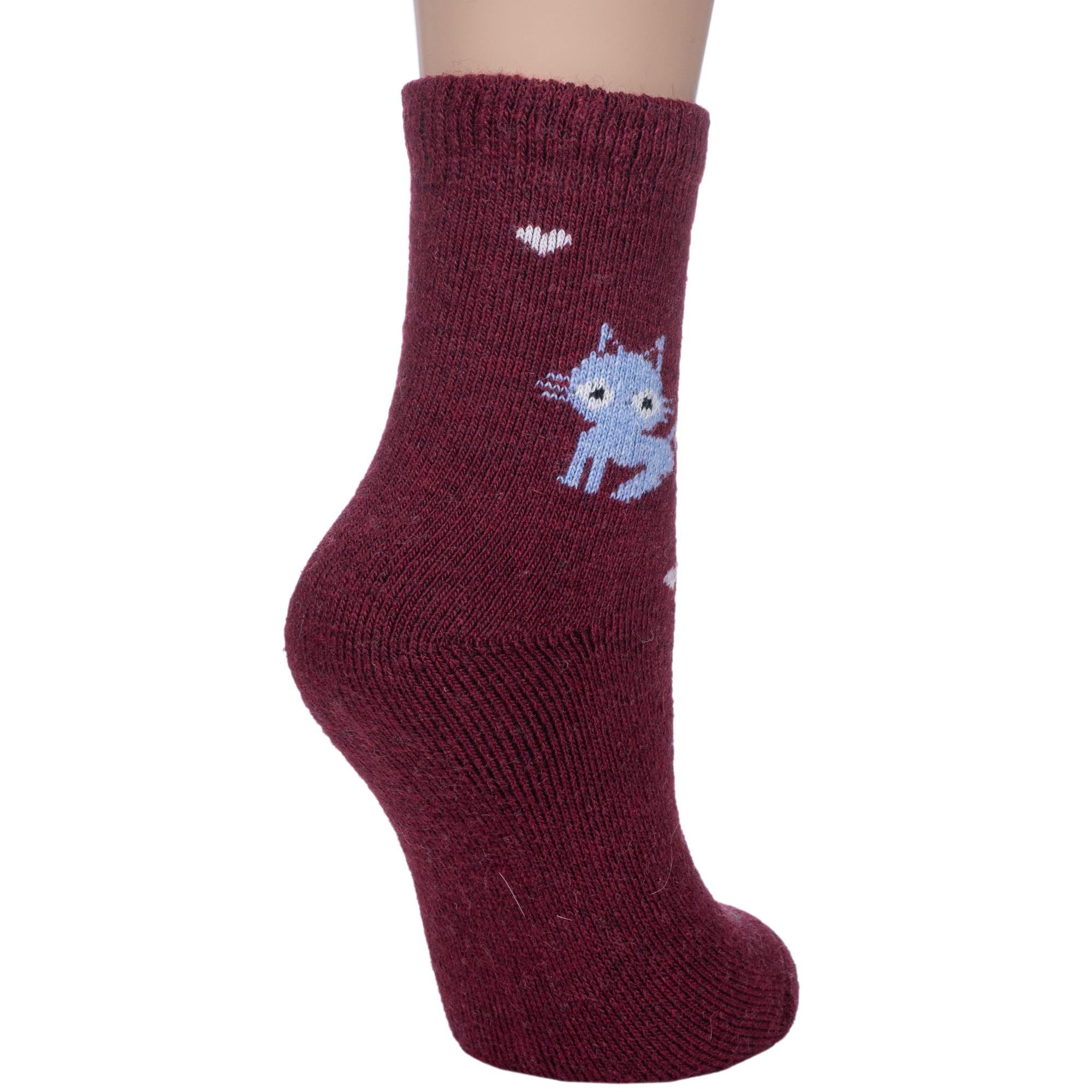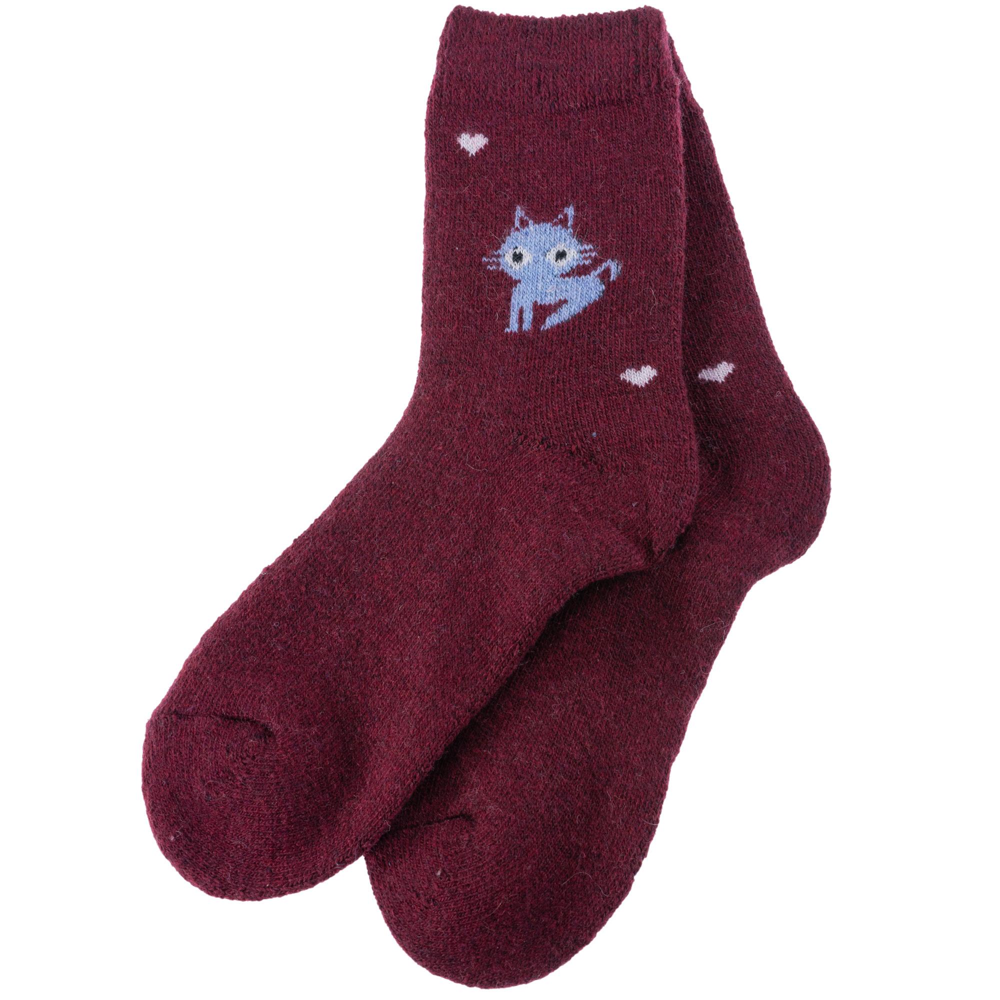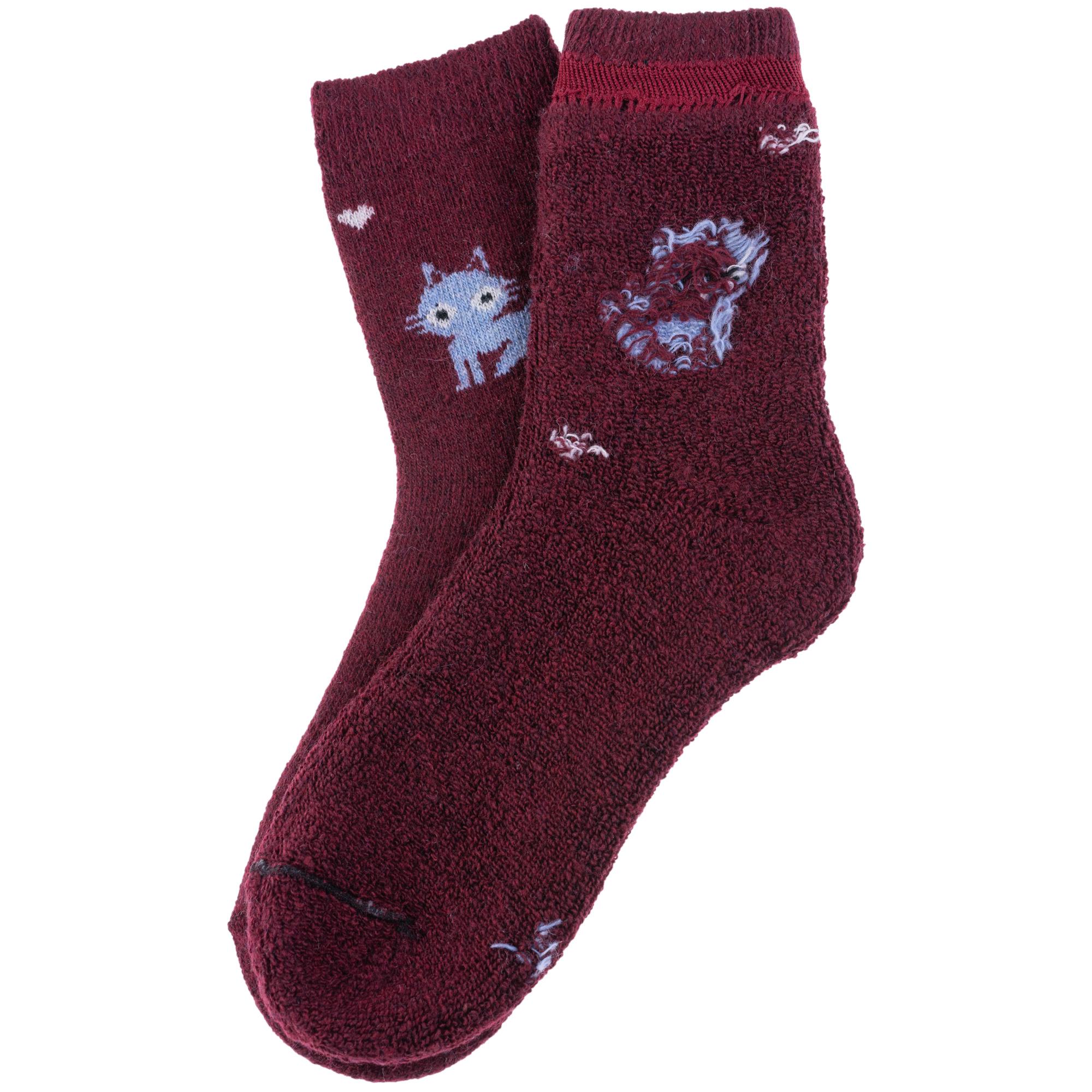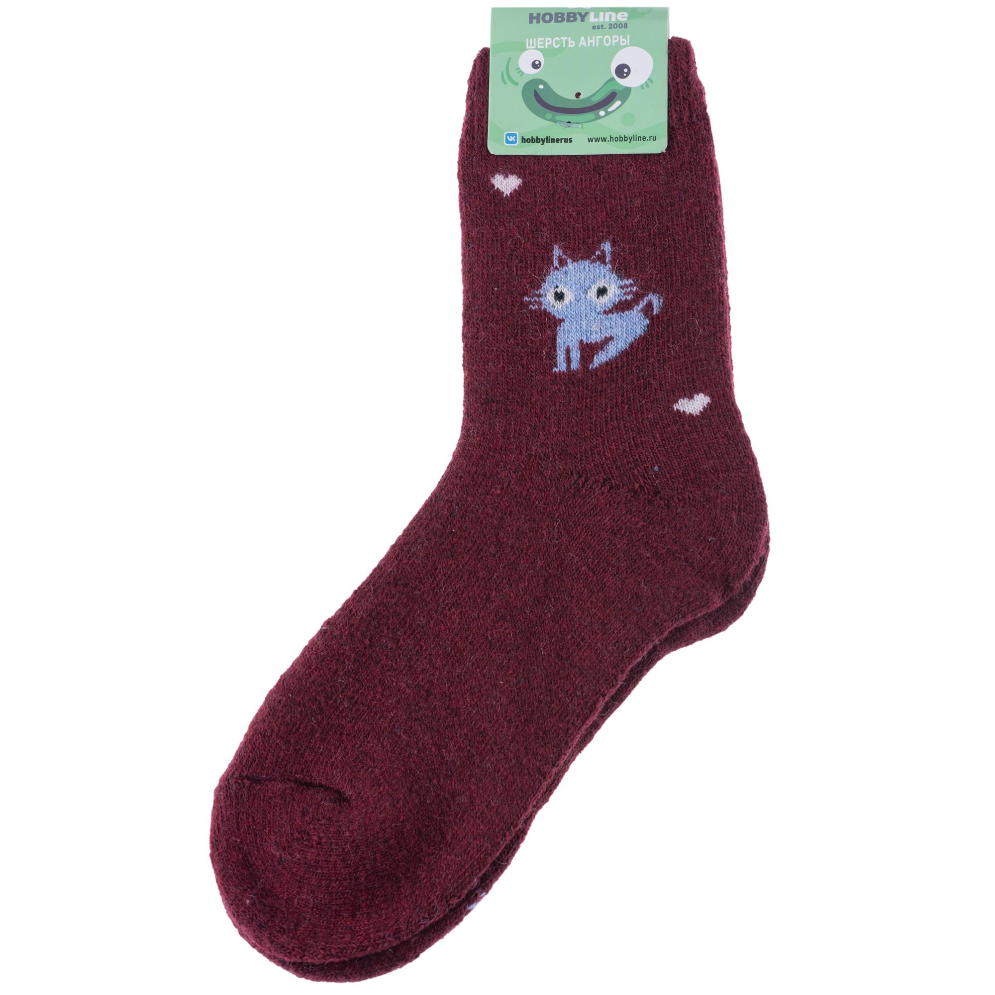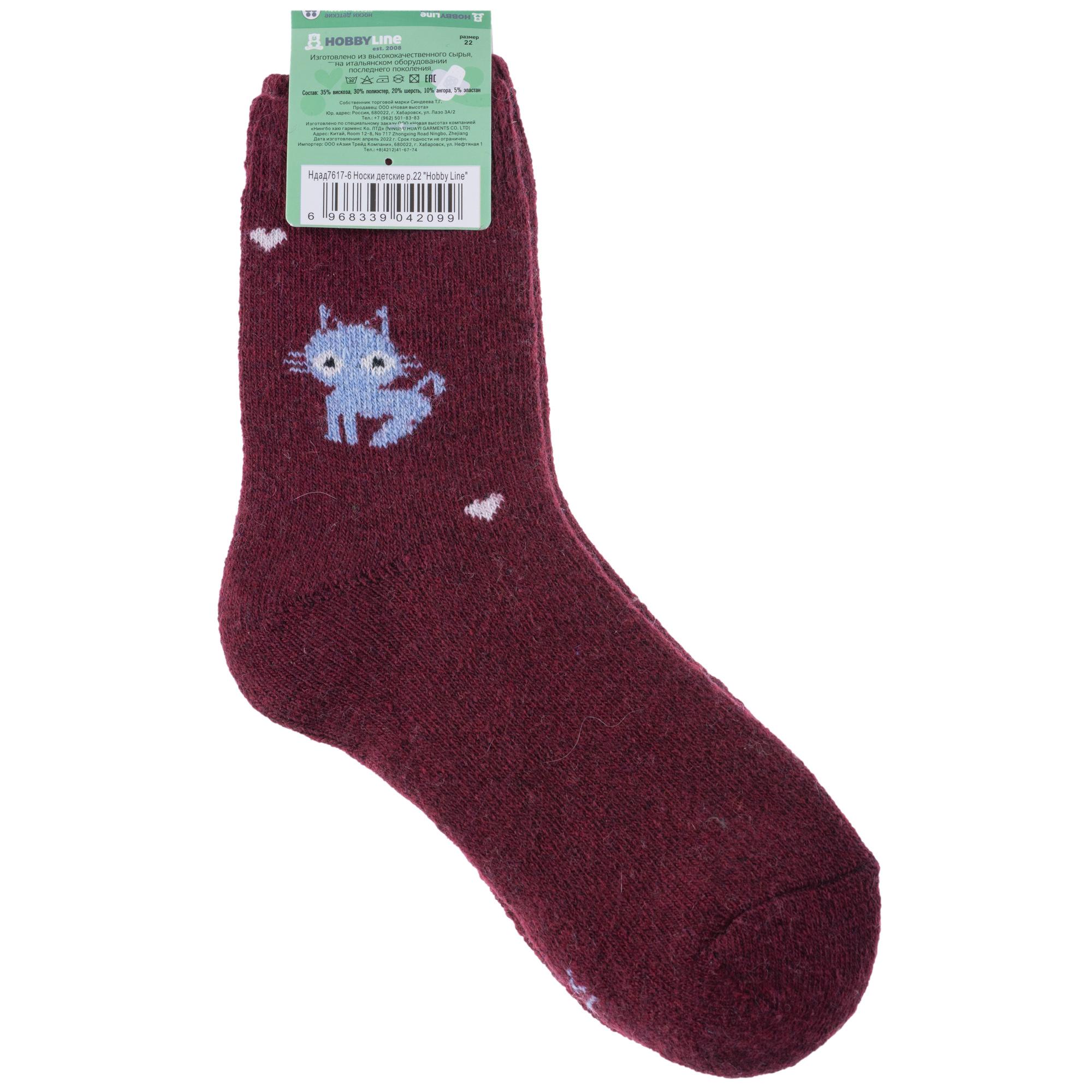 Зимние укороченные детские носки, цвет бордовый, теплые, махровые, повседневные, шов обычный (не бесшовные), принт (рисунок): животные, с узором, состав: 35% вискоза, 30% полиэстер, 20% шерсть, 10% ангора, 5% эластан, арт. 7617-6. Производитель «Китай, страна бренда - Россия» под брендом «Hobby line».