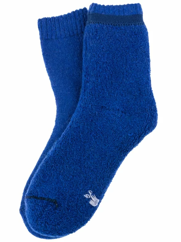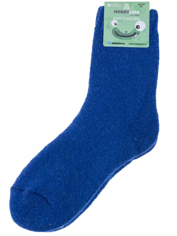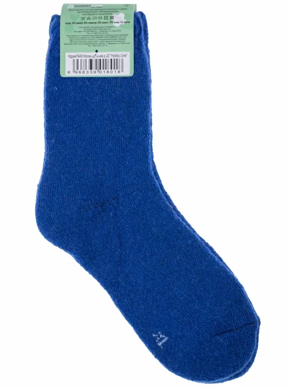 Зимние укороченные детские носки, цвет синий, теплые, махровые, классические, шов обычный (не бесшовные), принт (рисунок): однотонный, без рисунков/узоров, состав: 35% вискоза, 30% полиэстер, 20% шерсть, 10% ангора, 5% эластан, арт. 7645. Производитель «Китай, страна бренда - Россия» под брендом «Hobby line».