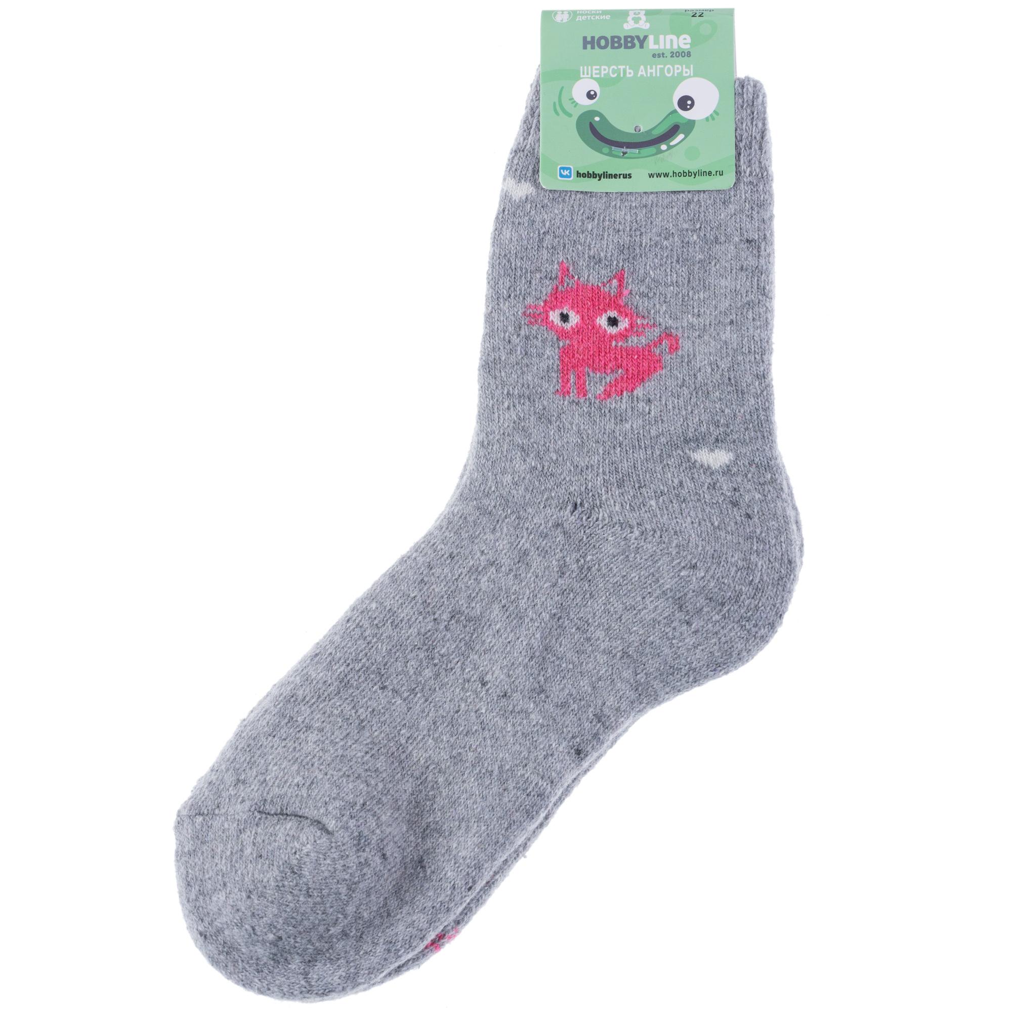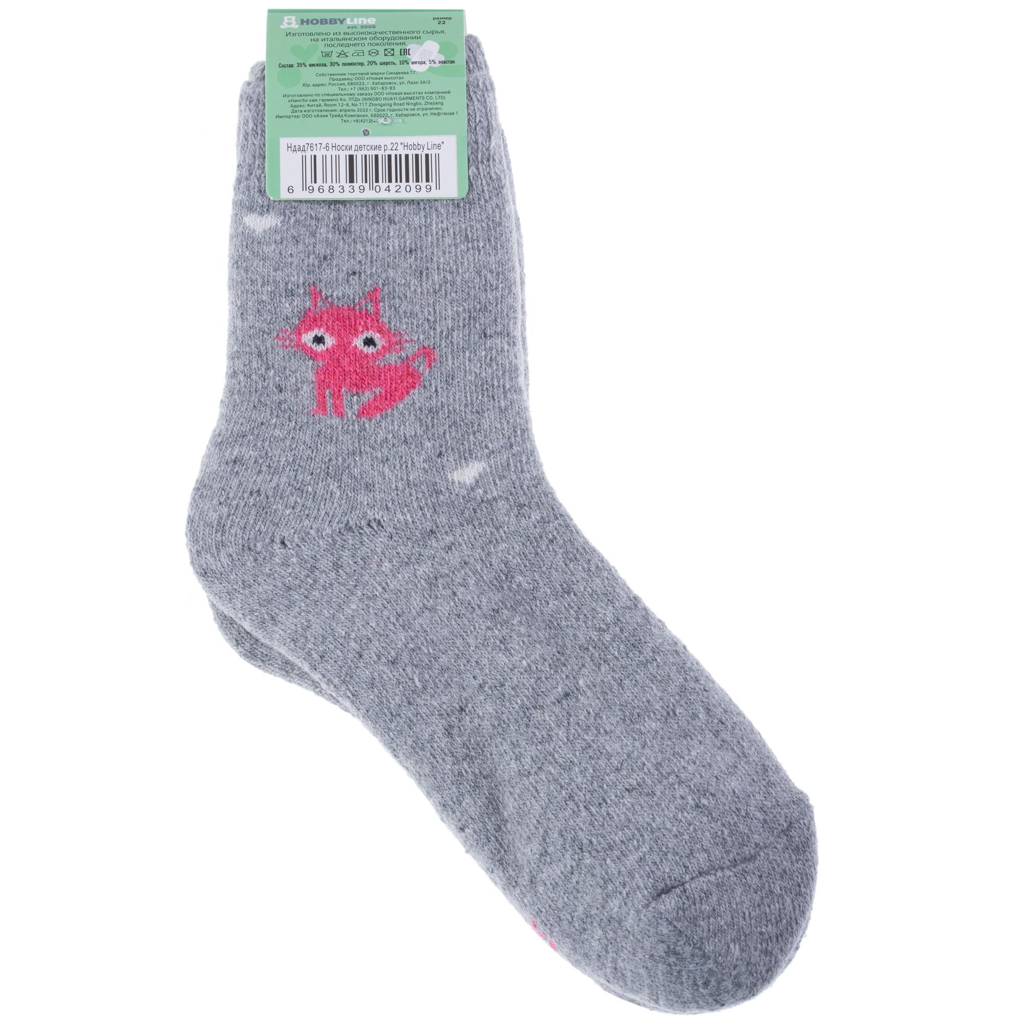 Зимние укороченные детские носки, цвет светло-серый, теплые, махровые, повседневные, шов обычный (не бесшовные), принт (рисунок): животные, с узором, состав: 35% вискоза, 30% полиэстер, 20% шерсть, 10% ангора, 5% эластан, арт. 7617-6. Производитель «Китай, страна бренда - Россия» под брендом «Hobby line».