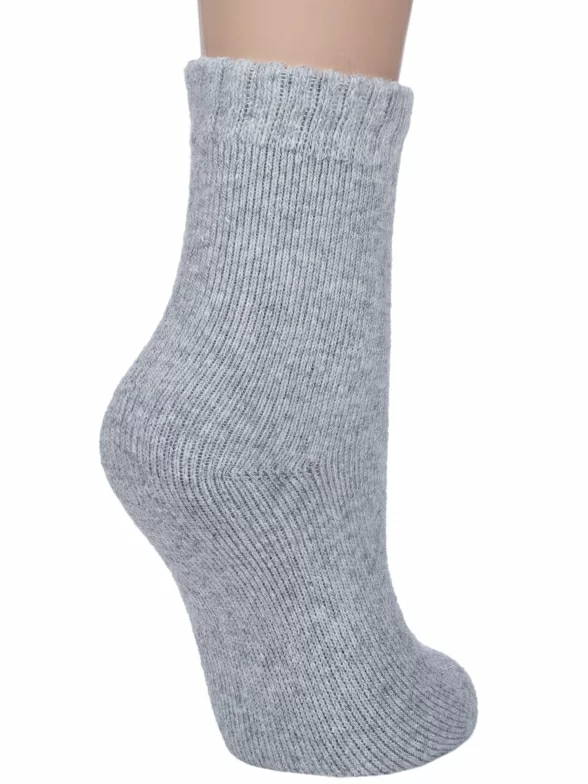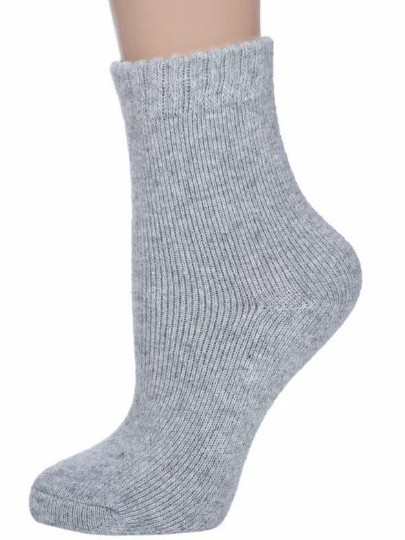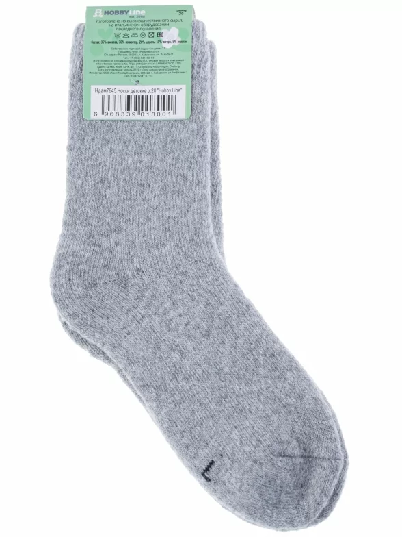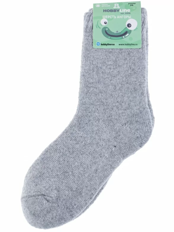 Зимние укороченные детские носки, цвет светло-серый, теплые, махровые, классические, шов обычный (не бесшовные), принт (рисунок): однотонный, без рисунков/узоров, состав: 35% вискоза, 30% полиэстер, 20% шерсть, 10% ангора, 5% эластан, арт. 7645. Производитель «Китай, страна бренда - Россия» под брендом «Hobby line».