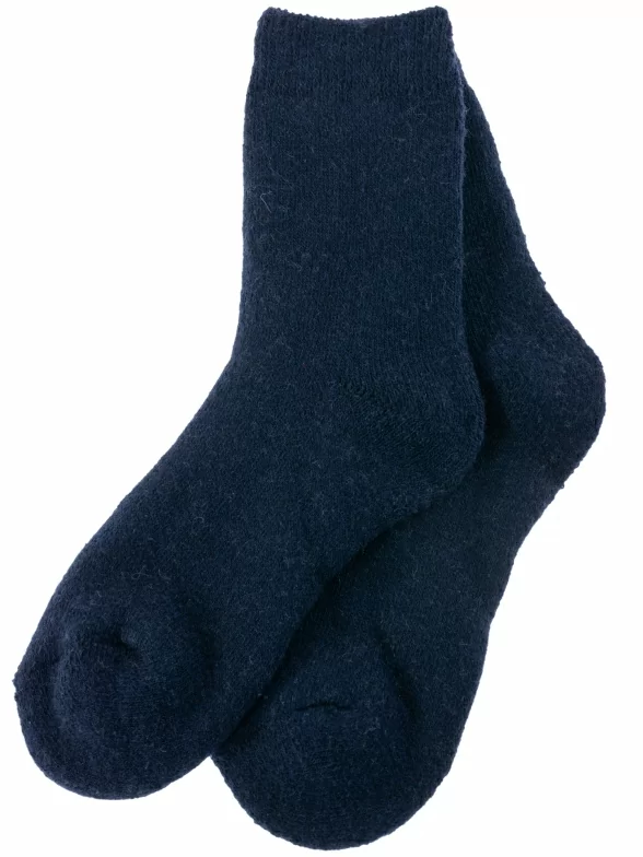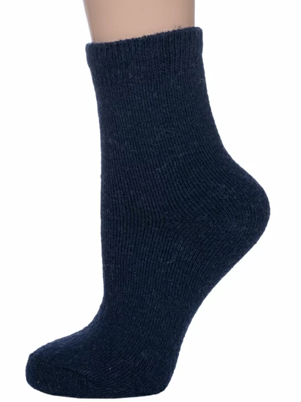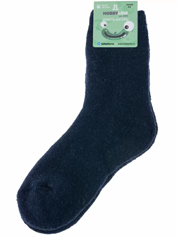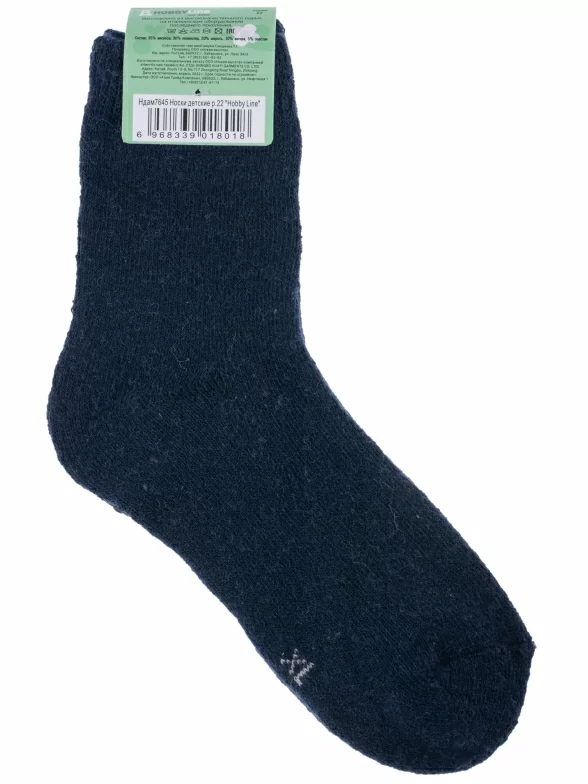 Зимние укороченные детские носки, цвет темно-синий, теплые, махровые, классические, шов обычный (не бесшовные), принт (рисунок): однотонный, без рисунков/узоров, состав: 35% вискоза, 30% полиэстер, 20% шерсть, 10% ангора, 5% эластан, арт. 7645. Производитель «Китай, страна бренда - Россия» под брендом «Hobby line».