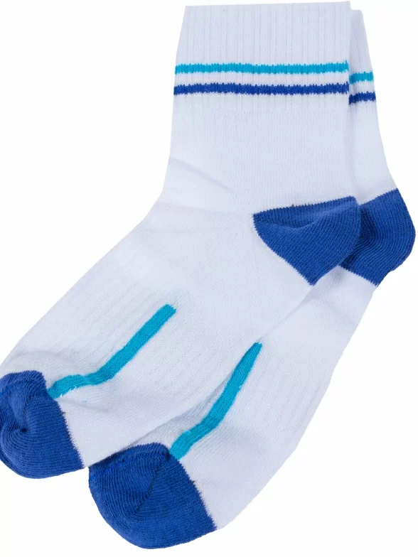 Летние укороченные детские носки, цвет белый, спортивные, в сеточку, возможно бесшовные, принт (рисунок): спортивные, контрастные пятка / мысок / резинка, с узором, состав: 60% хлопок, 33% полиэстер, 7% эластан, арт. 8С805. Производитель «АО Борисоглебский трикотаж, Воронежская обл, Россия» под брендом «Борисоглебский трикотаж».