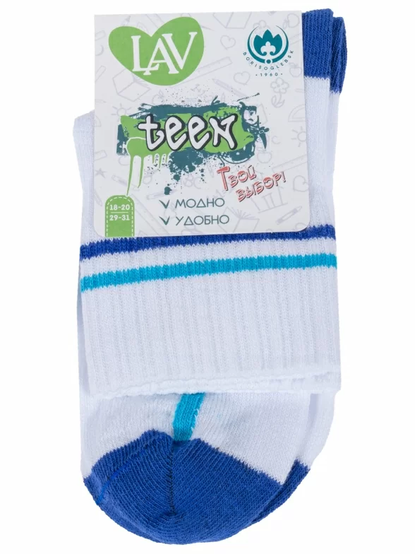 Детские спортивные носки "Борисоглебский трикотаж", 8С805, БЕЛЫЕ с синим