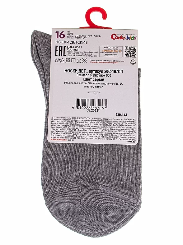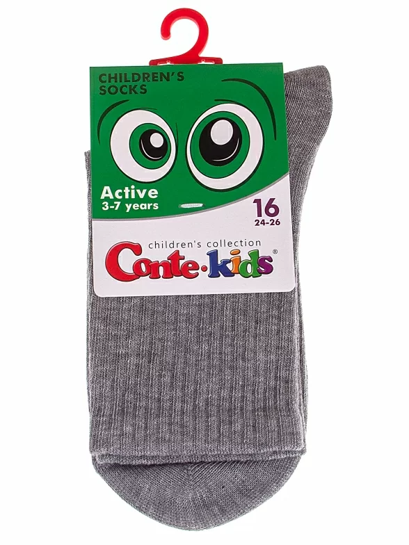 Круглогодичные средней длины детские носки, цвет серый, спортивные, состав: 60% хлопок, 38% полиамид, 2% эластан, фабричный артикул 20С-167СП. Производитель «Conte, Беларусь» под брендом «Conte».