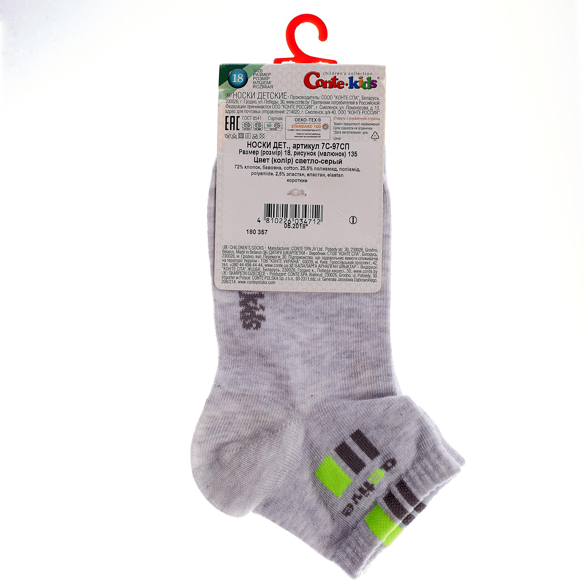 Круглогодичные укороченные детские носки, цвет светло-серый, спортивные, состав: 72% хлопок, 25.5% полиамид, 2.5% эластан, фабричный артикул 7С-97СП. Производитель «Conte, Беларусь» под брендом «Conte».