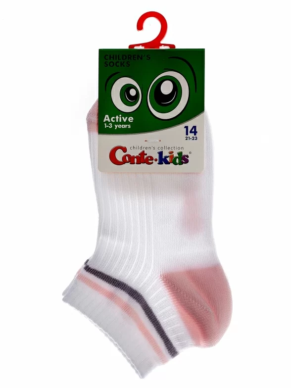 Круглогодичные укороченные детские носки, цвет белый, спортивные, состав: 72% хлопок, 25.5% полиамид, 2.5% эластан, фабричный артикул 7С-97СП. Производитель «Conte, Беларусь» под брендом «Conte».