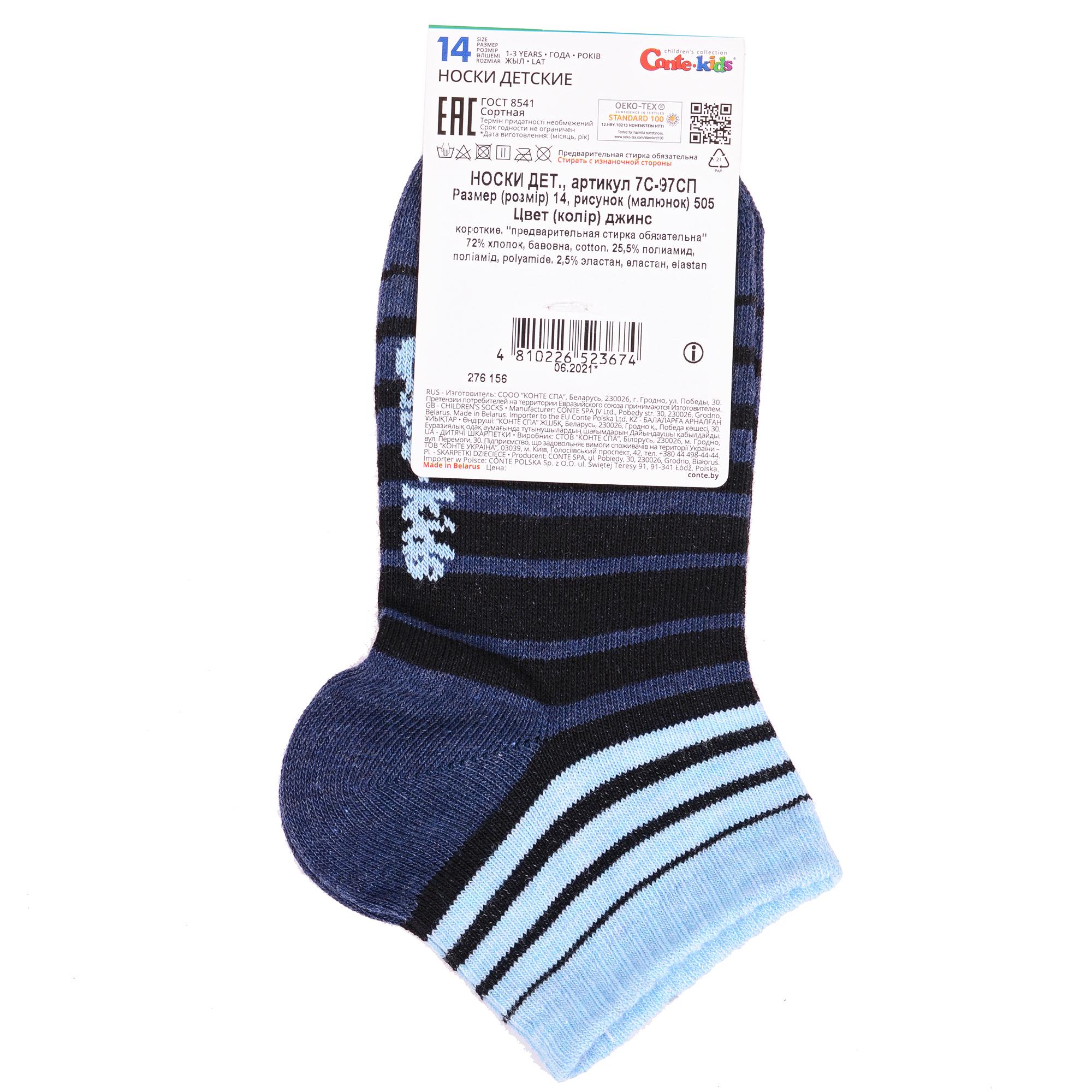 Круглогодичные укороченные детские носки, цвет джинс, спортивные, состав: 72% хлопок, 25.5% полиамид, 2.5% эластан, фабричный артикул 7С-97СП. Производитель «Conte, Беларусь» под брендом «Conte».