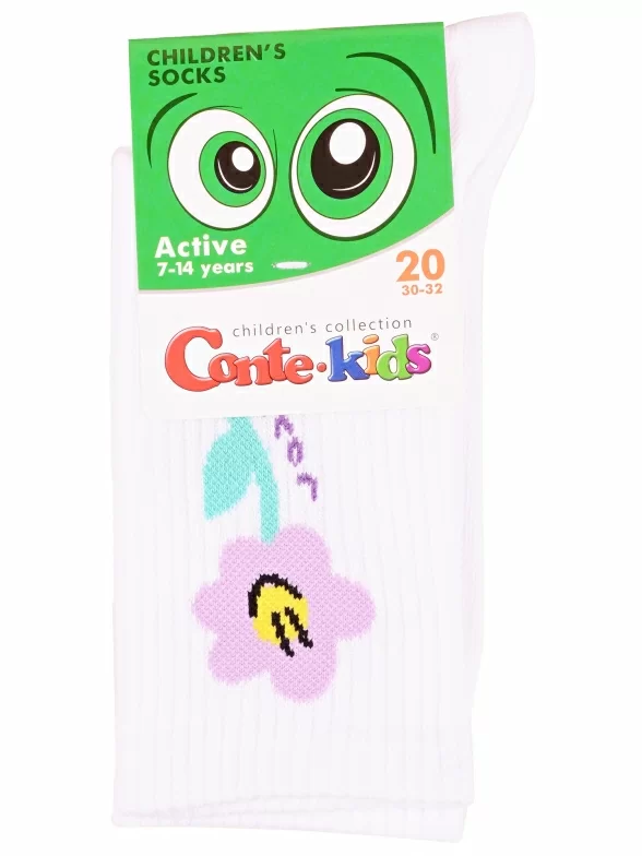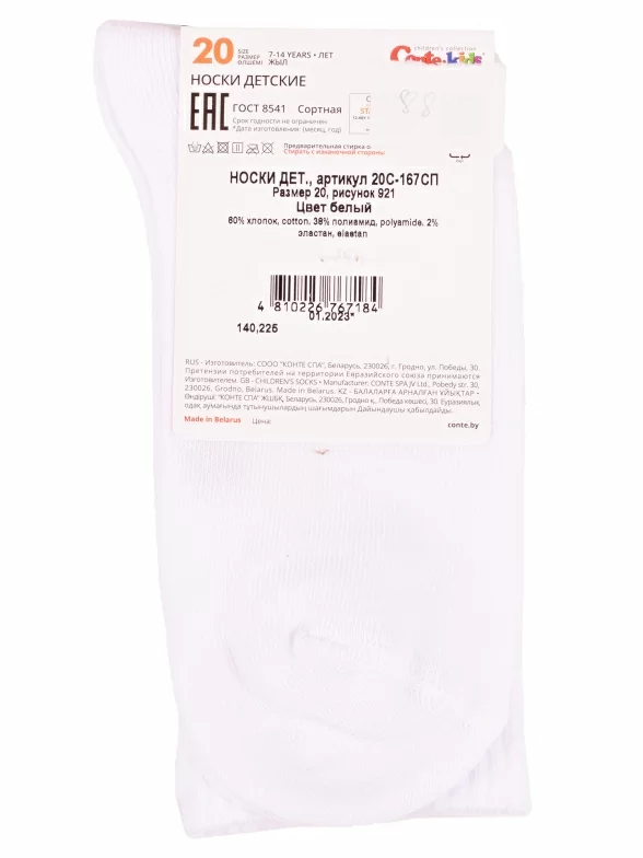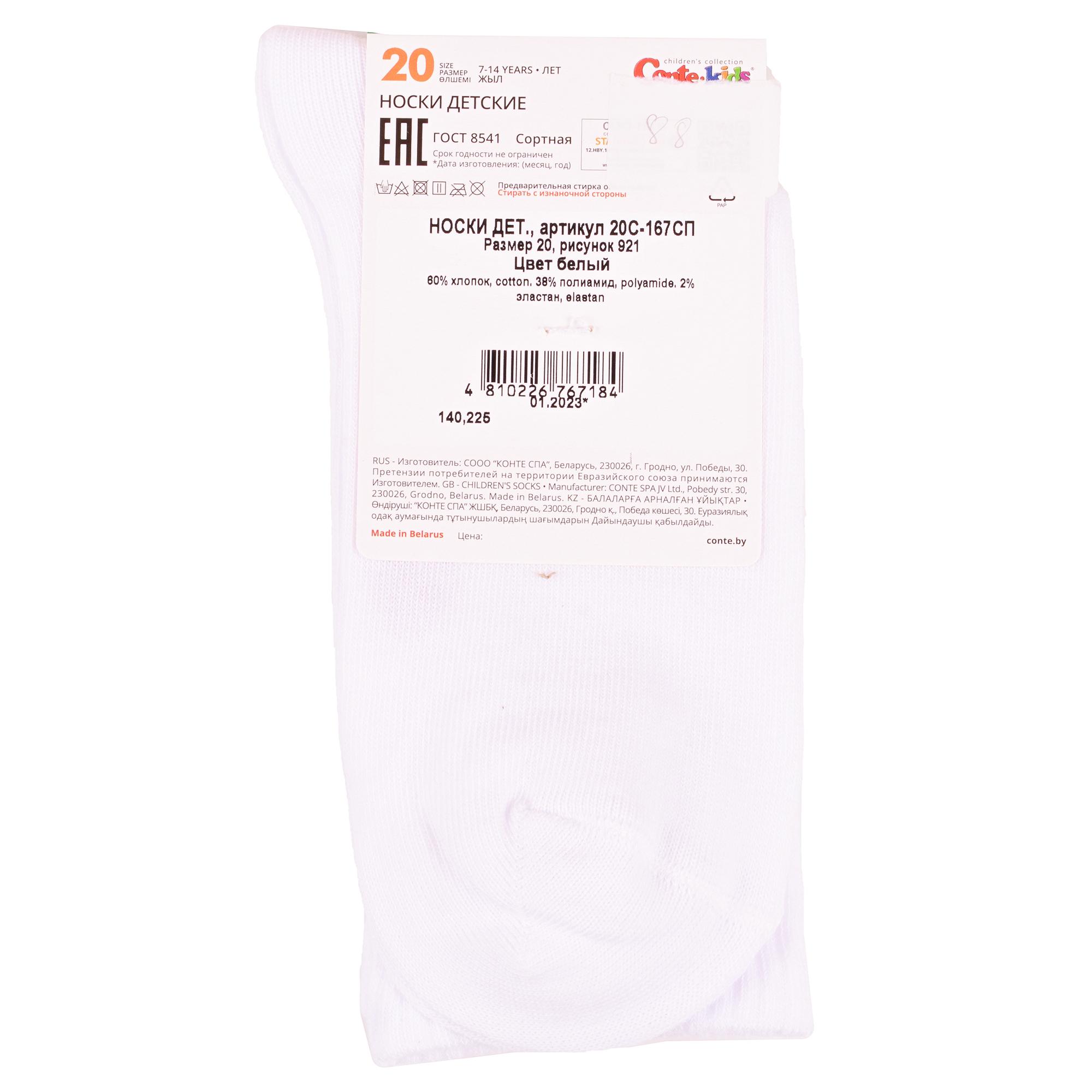 Круглогодичные средней длины детские носки, цвет белый, спортивные, состав: 60% хлопок, 38% полиамид, 2% эластан, фабричный артикул 20С-167СП. Производитель «Conte, Беларусь» под брендом «Conte».