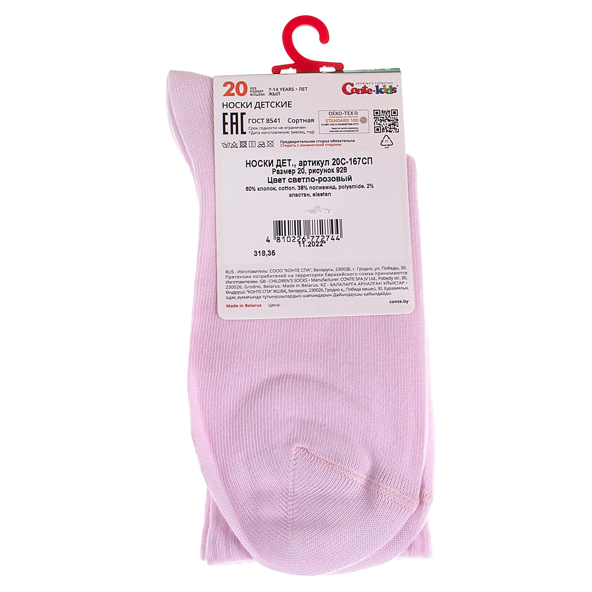 Круглогодичные средней длины детские носки, цвет розовый, спортивные, состав: 60% хлопок, 38% полиамид, 2% эластан, фабричный артикул 20С-167СП. Производитель «Conte, Беларусь» под брендом «Conte».