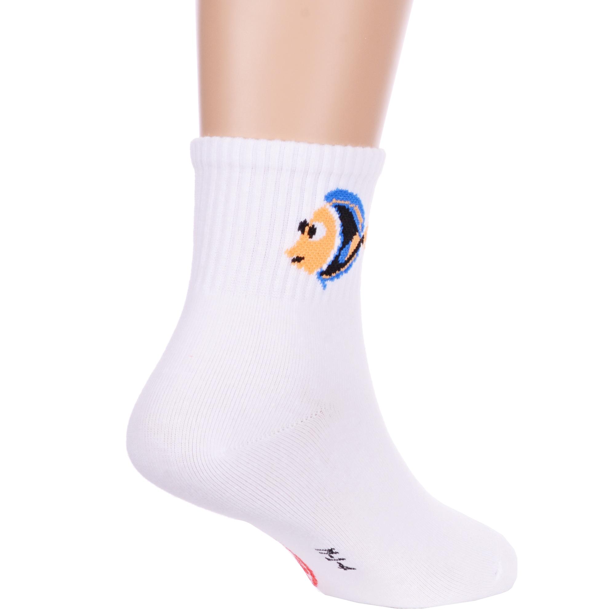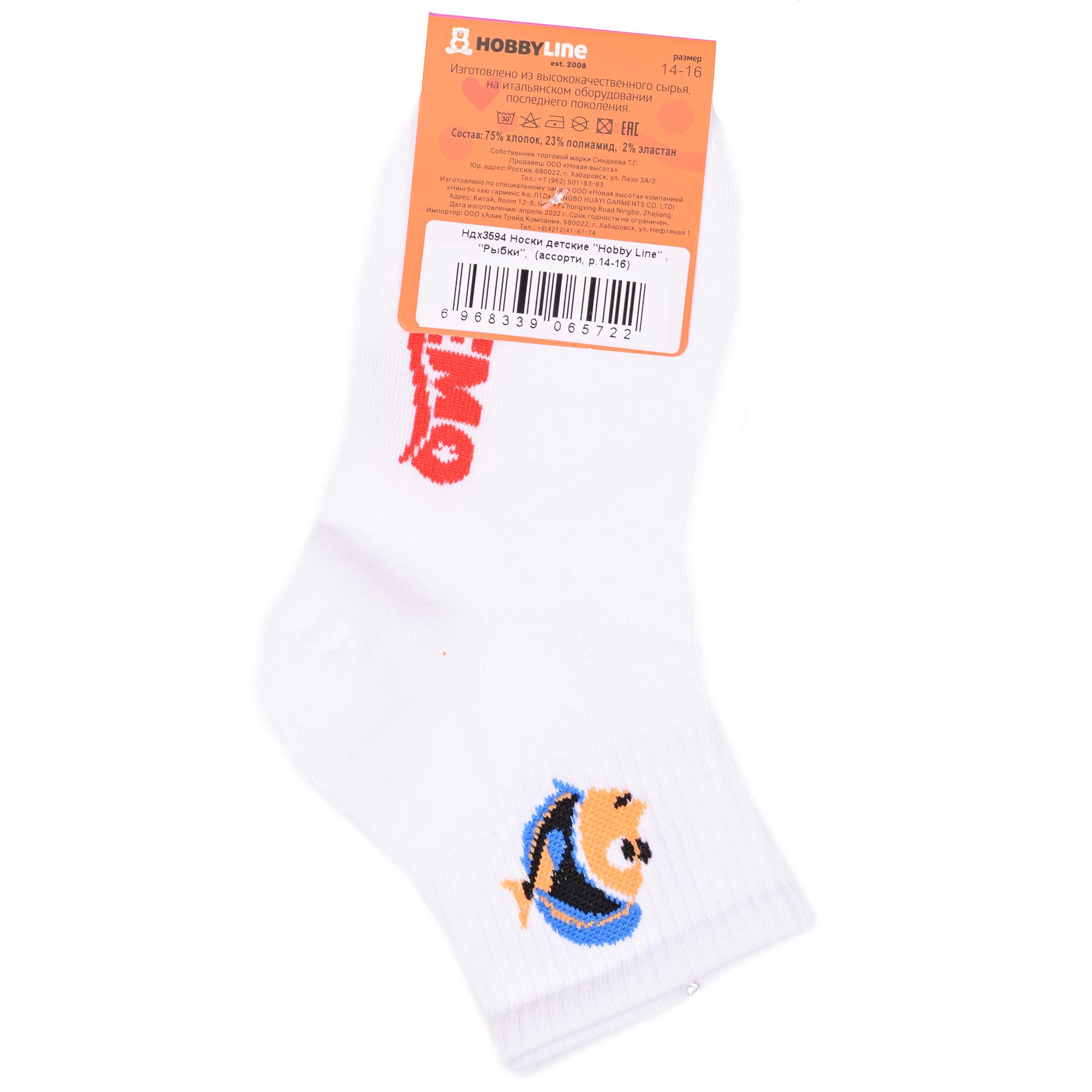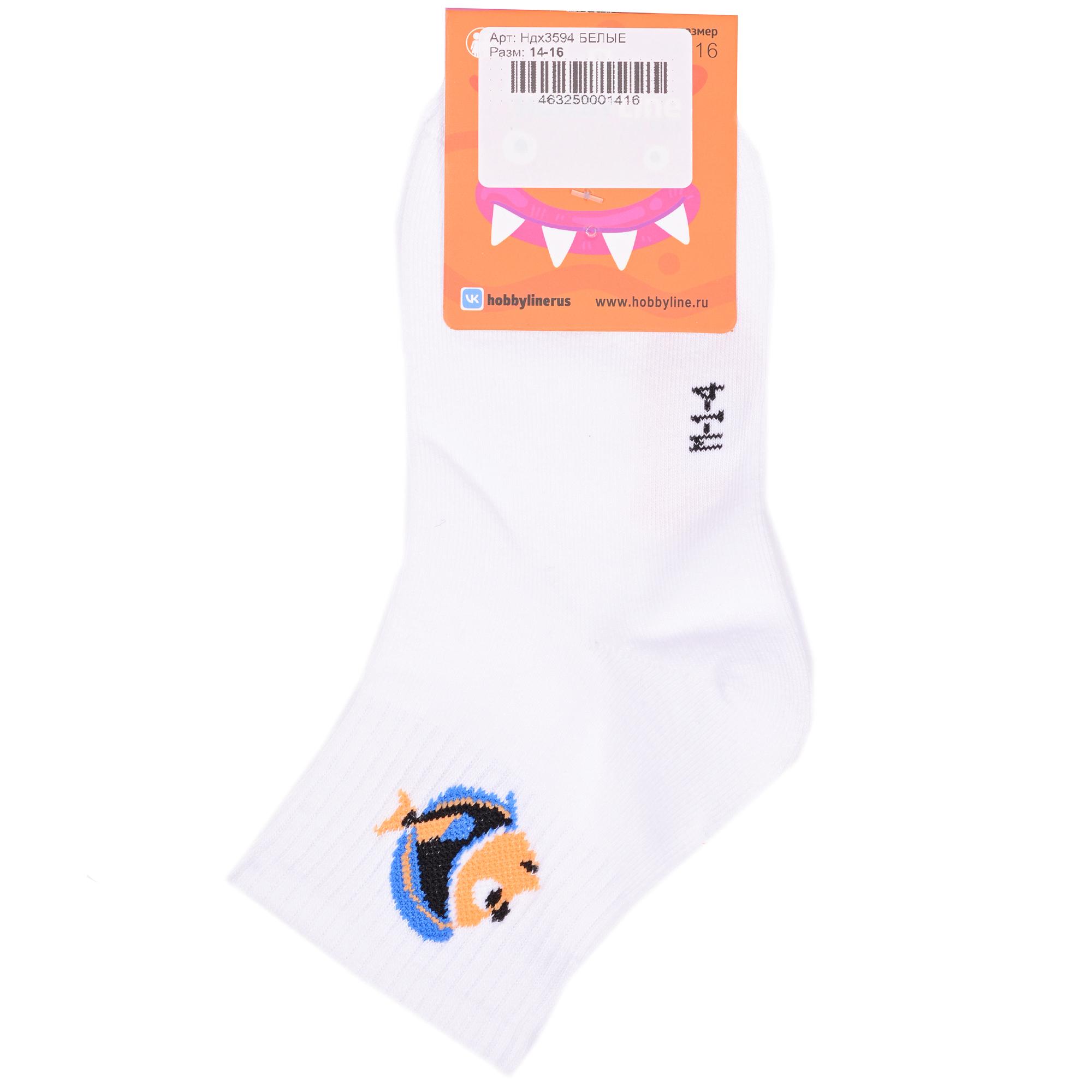 Круглогодичные укороченные детские носки, цвет белый, спортивные, с вышивкой, шов обычный (не бесшовные), принт (рисунок): фильмы / сериалы / мультики, надписи, животные, с узором, состав: 75% хлопок, 23% полиамид, 2% эластан, арт. Ндх3594. Производитель «Китай, страна бренда - Россия» под брендом «Hobby line».