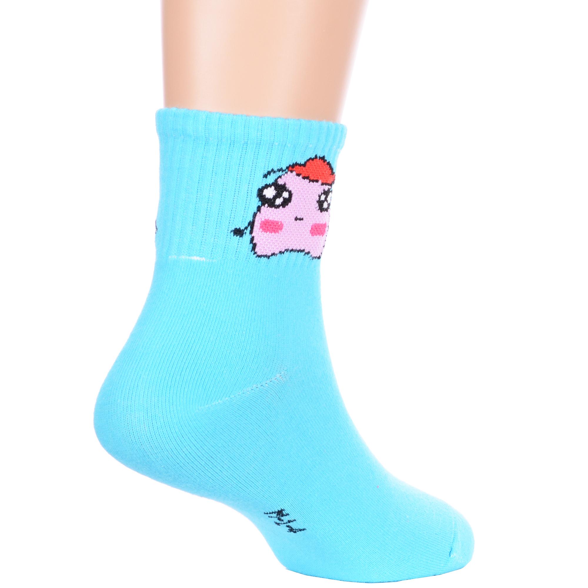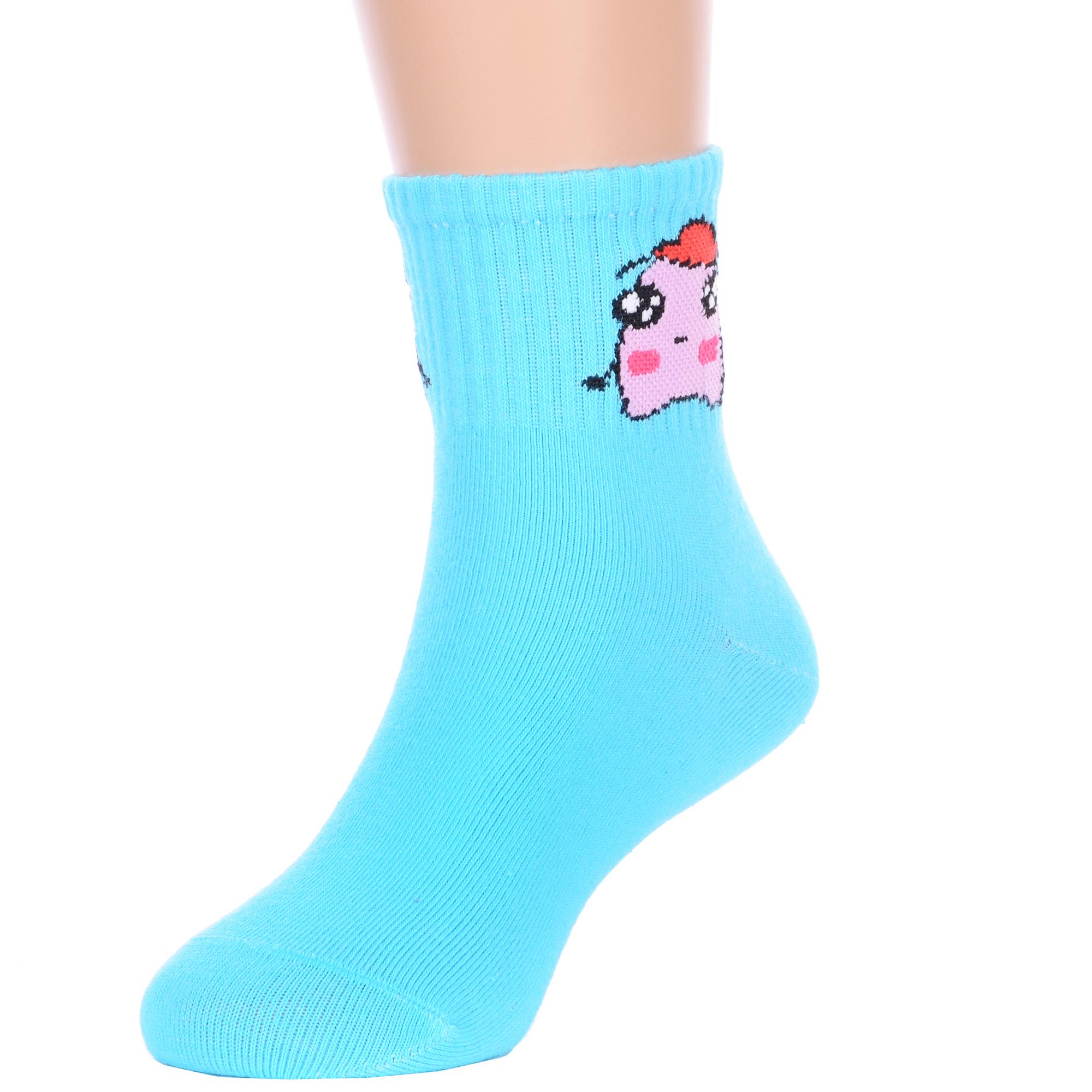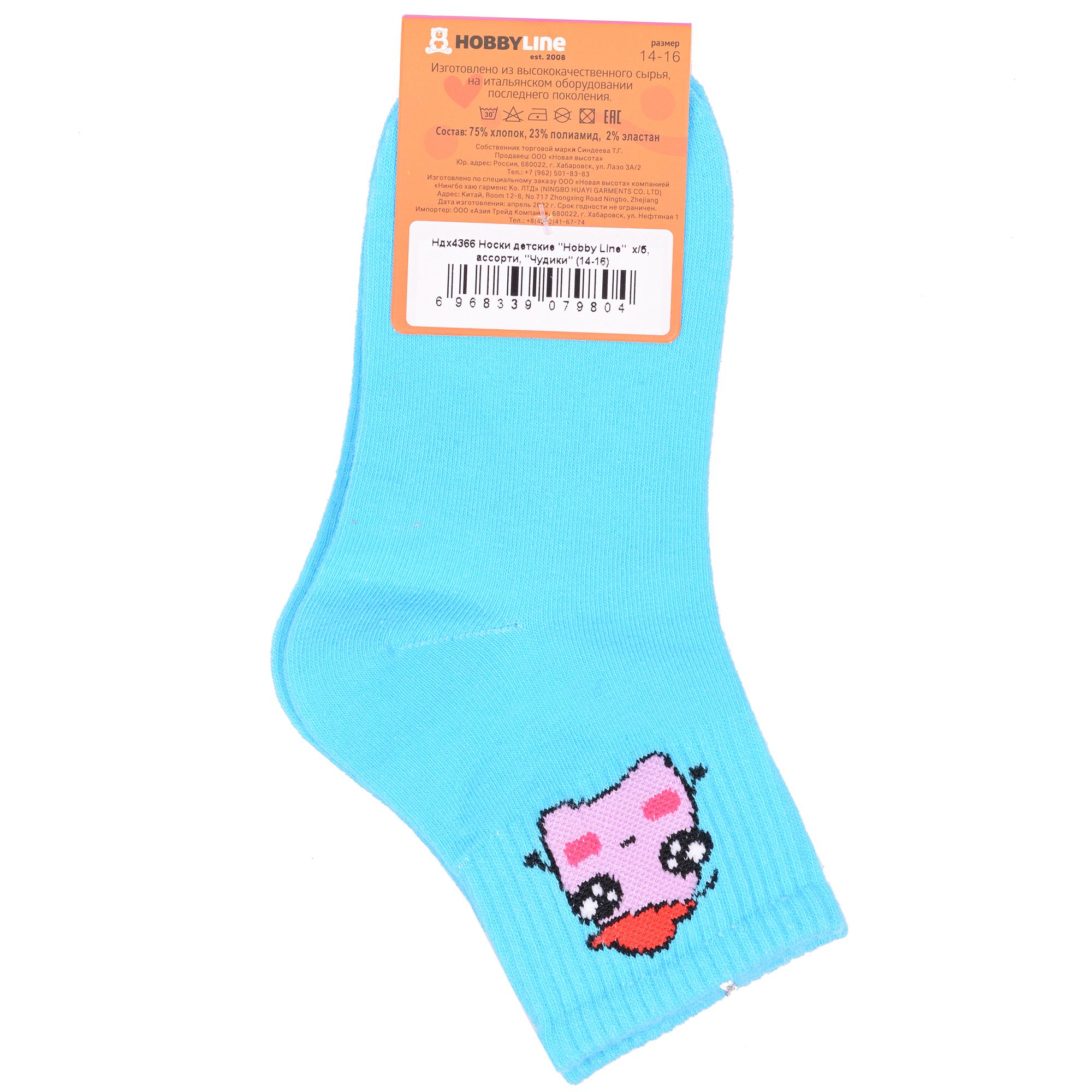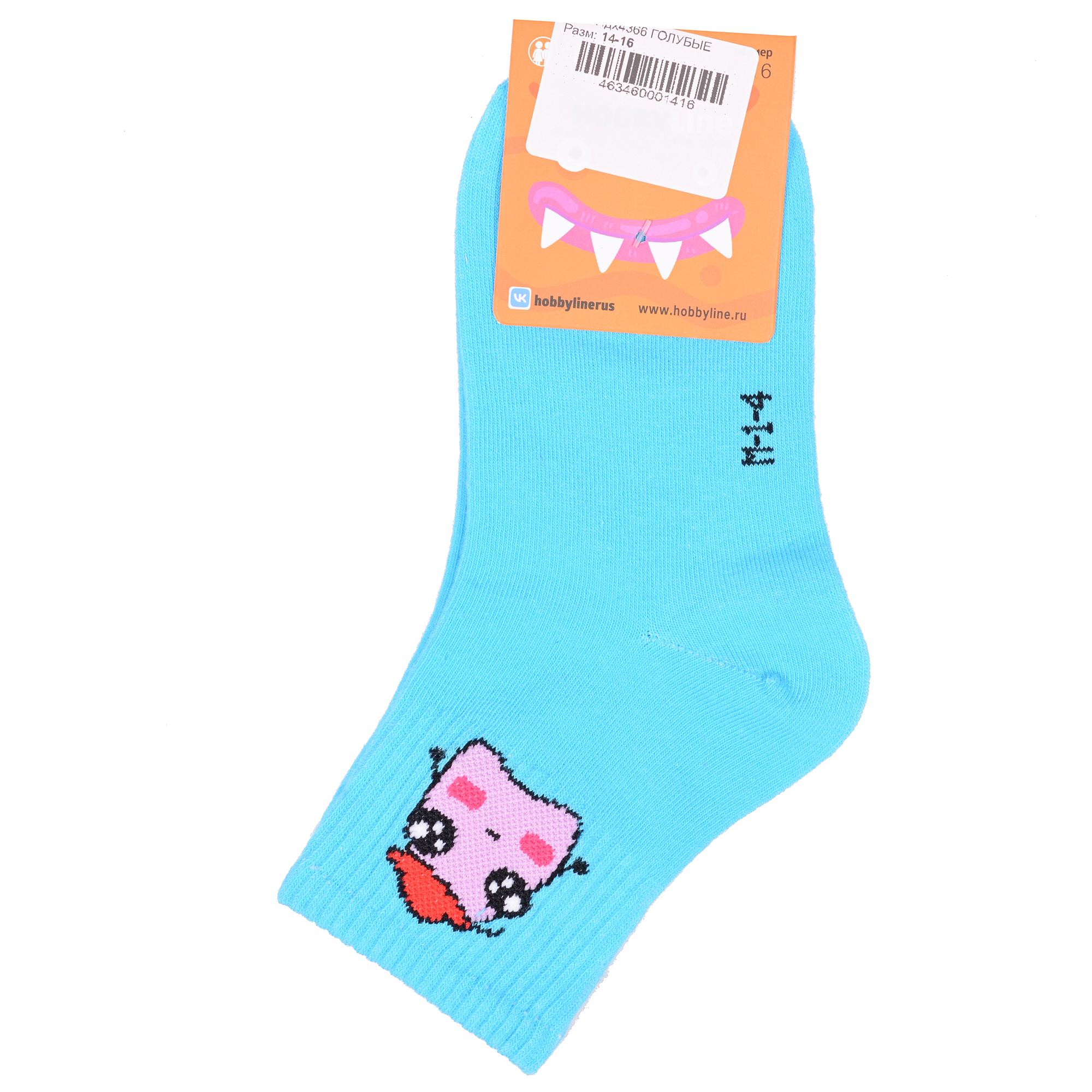 Круглогодичные укороченные детские носки, цвет голубой, спортивные, с вышивкой, шов обычный (не бесшовные), принт (рисунок): животные, с узором, состав: 75% хлопок, 23% полиамид, 2% эластан, арт. Ндх4366. Производитель «Китай, страна бренда - Россия» под брендом «Hobby line».