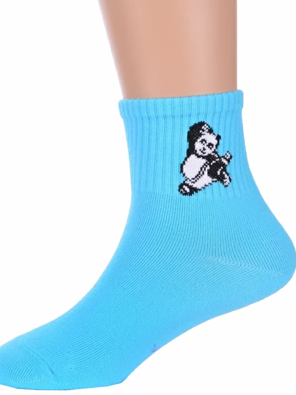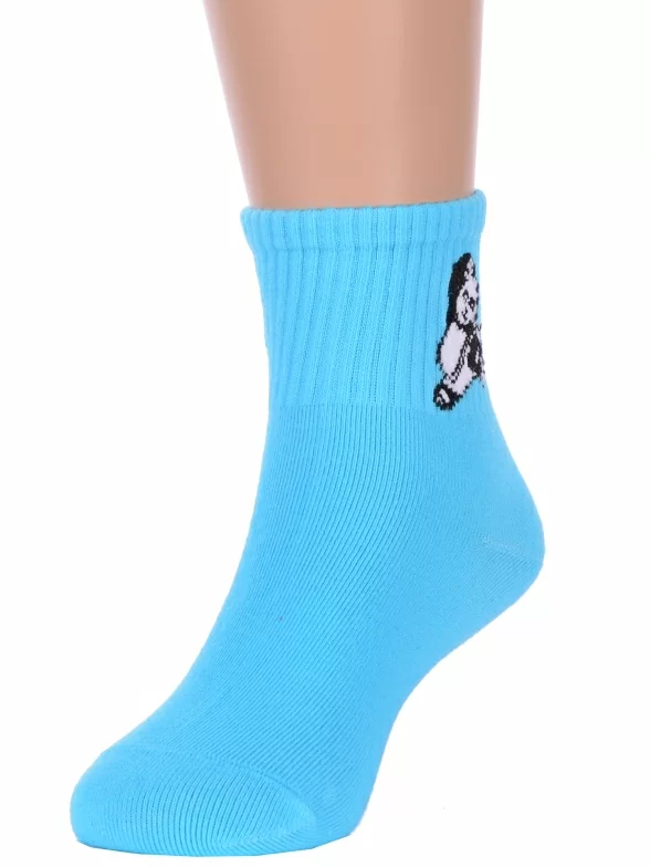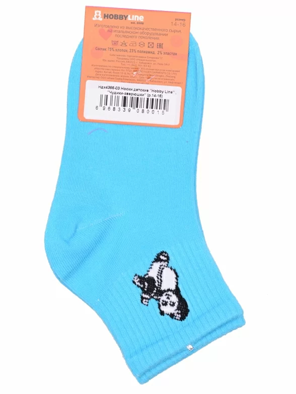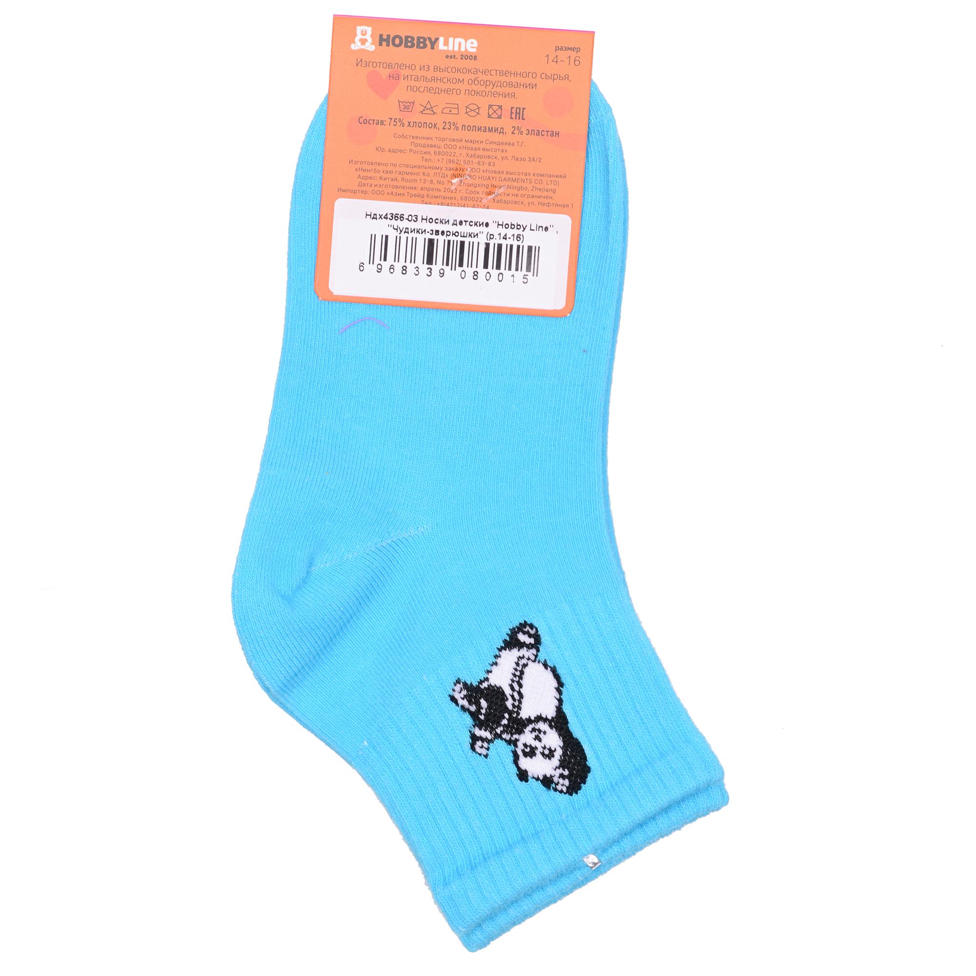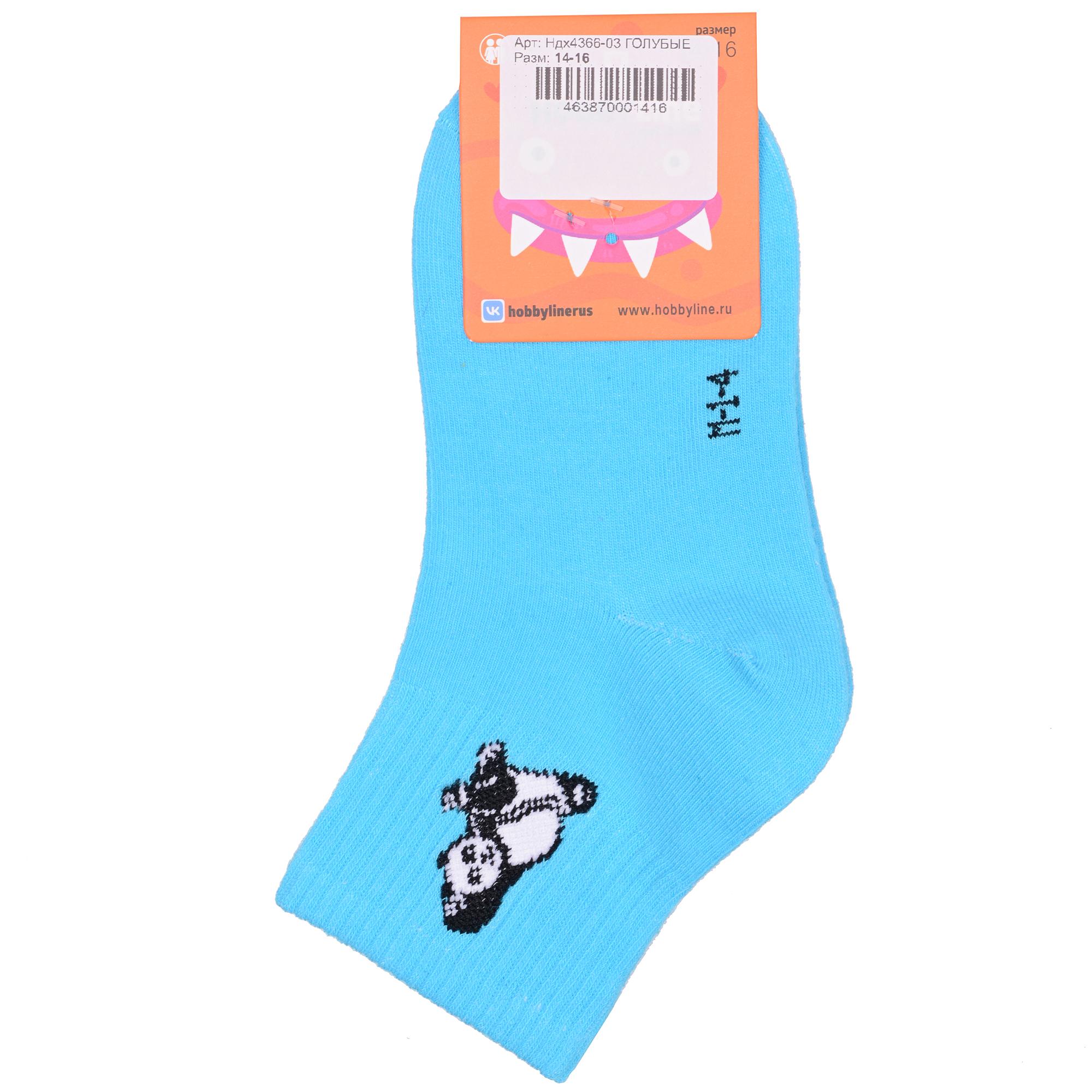 Круглогодичные укороченные детские носки, цвет голубой, спортивные, с вышивкой, шов обычный (не бесшовные), принт (рисунок): животные, с узором, состав: 75% хлопок, 23% полиамид, 2% эластан, арт. Ндх4366-03. Производитель «Китай, страна бренда - Россия» под брендом «Hobby line».