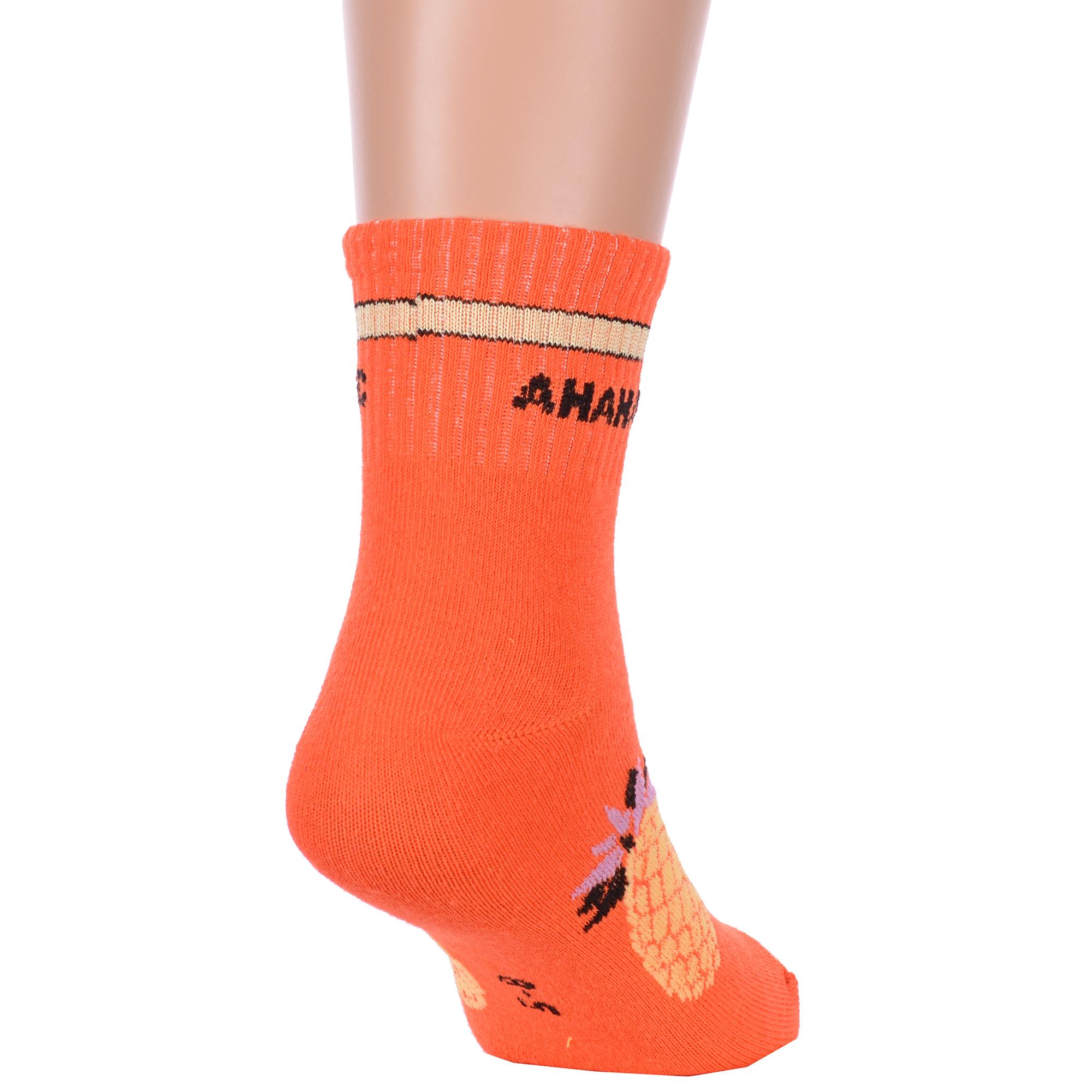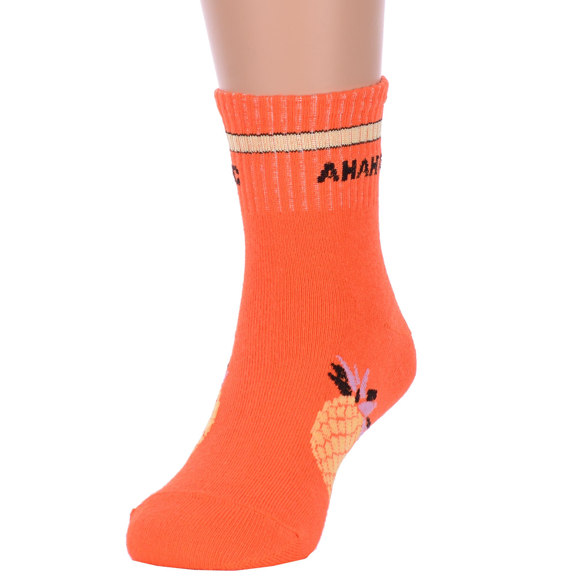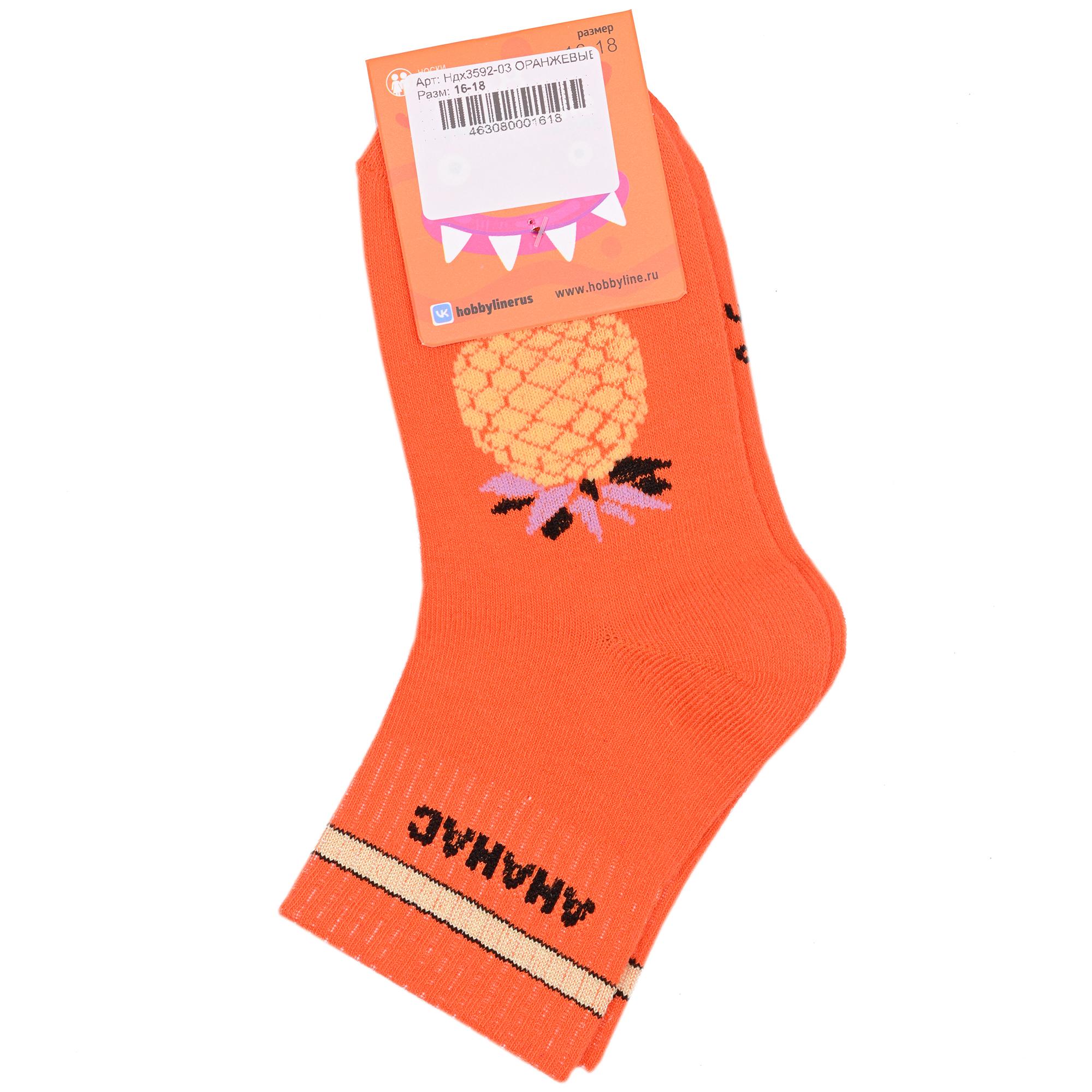Круглогодичные укороченные детские носки, цвет оранжевый, спортивные, повседневные, необычные, шов обычный (не бесшовные), принт (рисунок): овощи / фрукты / ягоды, надписи, еда и напитки, с узором, состав: 75% хлопок, 23% полиамид, 2% эластан, арт. Ндх3592-03. Производитель «Китай, страна бренда - Россия» под брендом «Hobby line».