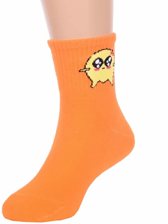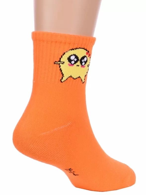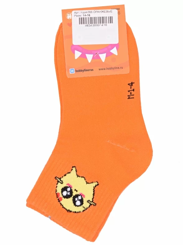 Круглогодичные укороченные детские носки, цвет оранжевый, спортивные, с вышивкой, шов обычный (не бесшовные), принт (рисунок): животные, с узором, состав: 75% хлопок, 23% полиамид, 2% эластан, арт. Ндх4366. Производитель «Китай, страна бренда - Россия» под брендом «Hobby line».