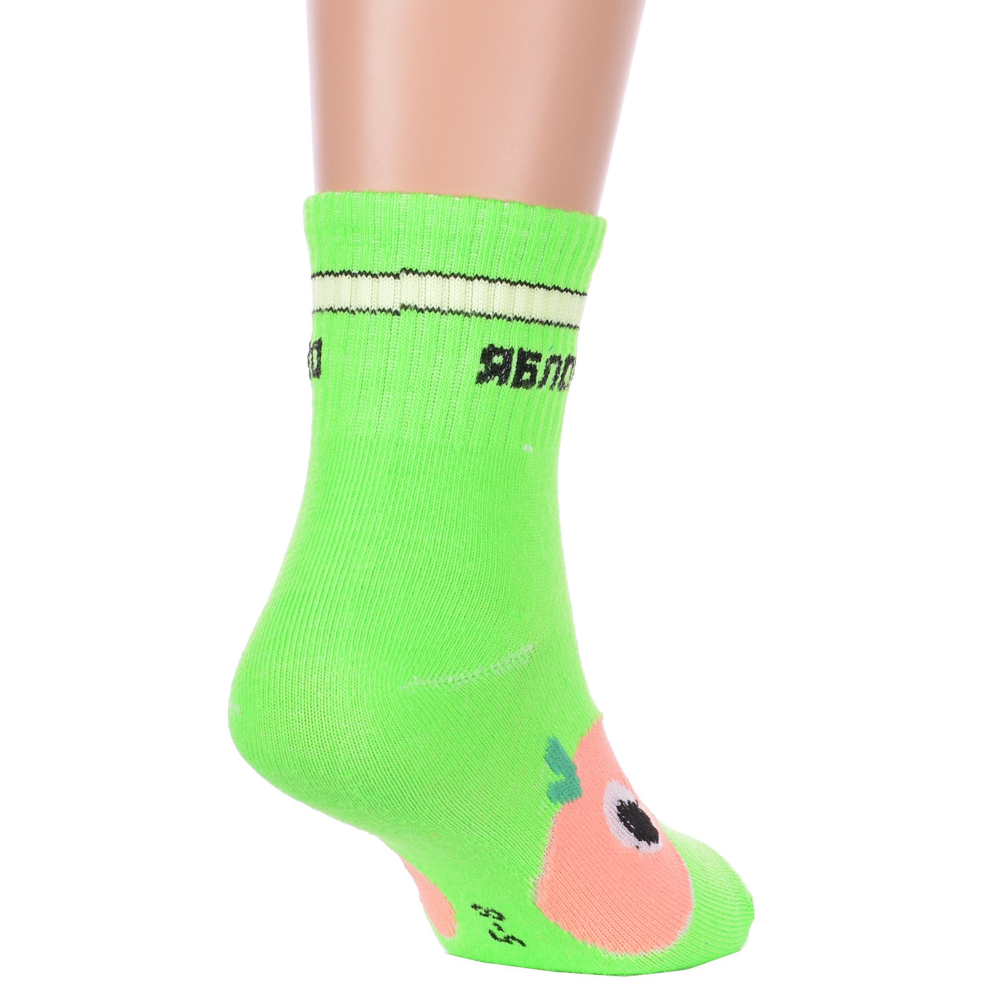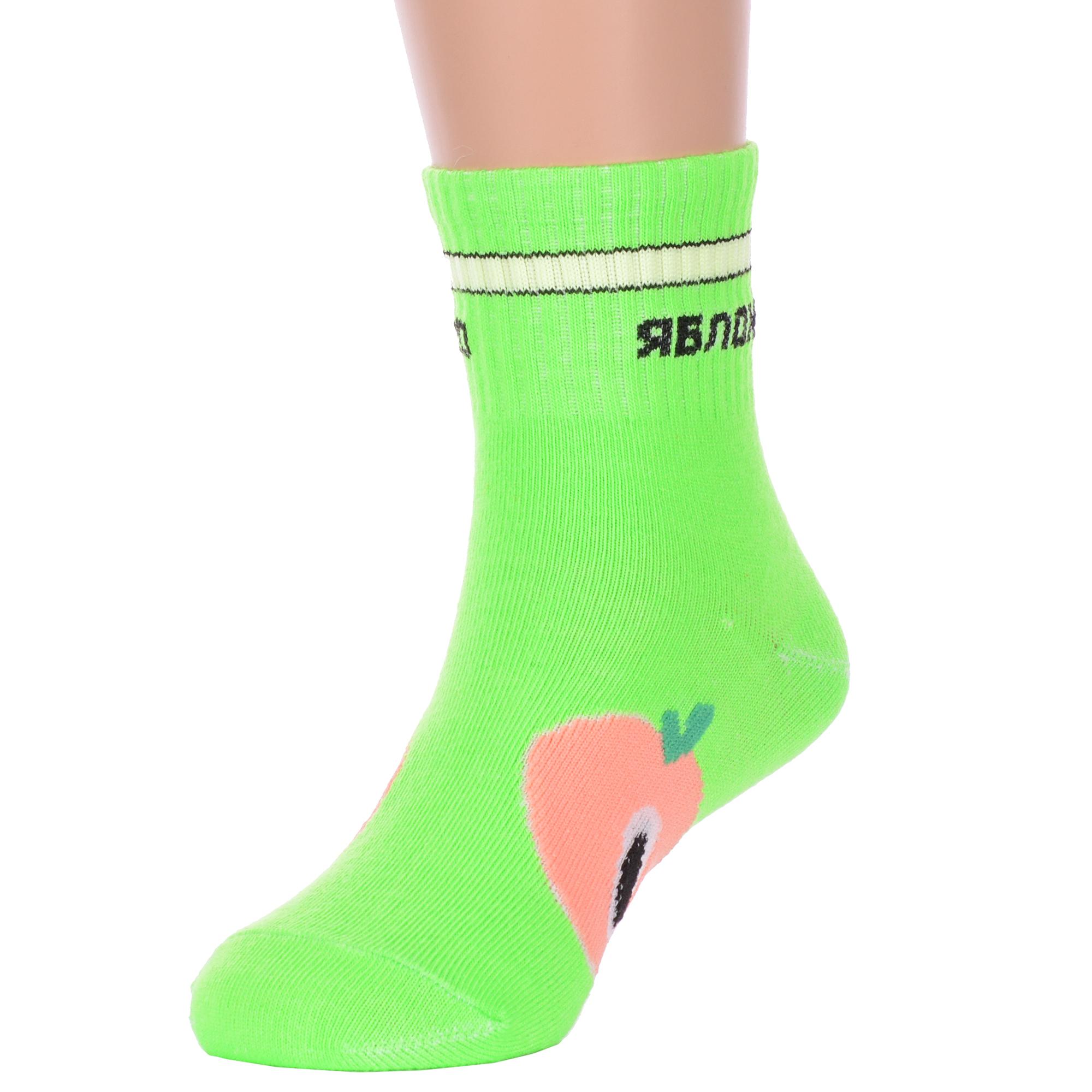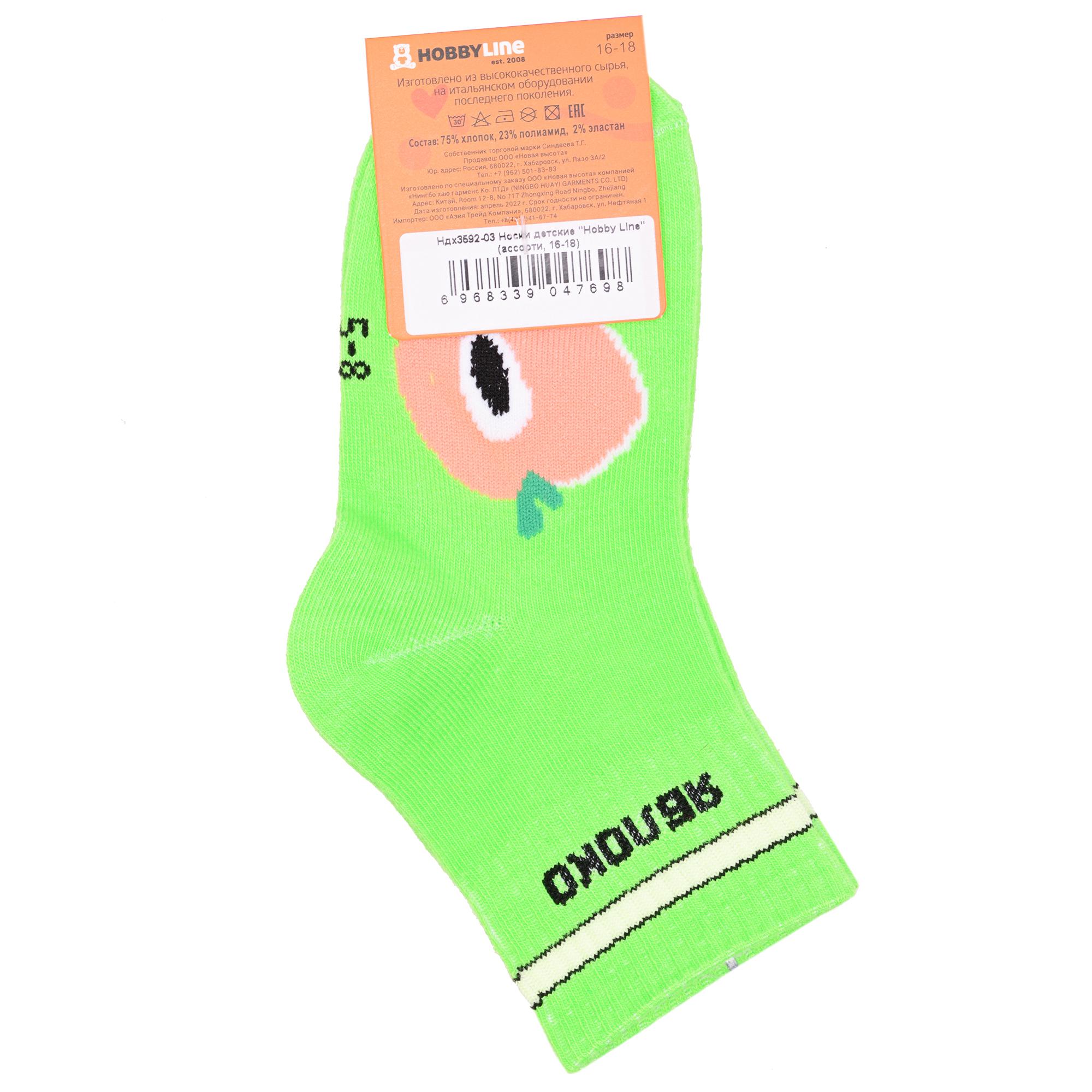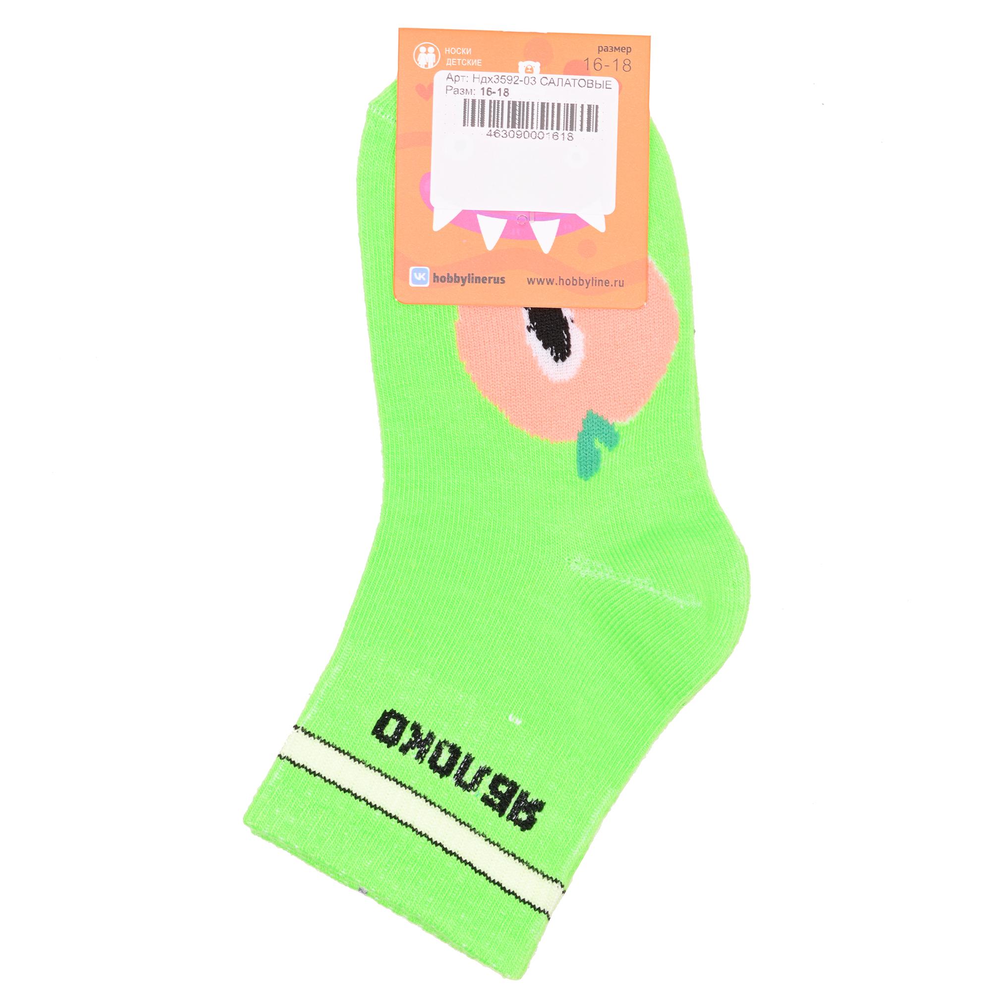 Круглогодичные укороченные детские носки, цвет салатовый, спортивные, повседневные, необычные, шов обычный (не бесшовные), принт (рисунок): овощи / фрукты / ягоды, надписи, еда и напитки, с узором, состав: 75% хлопок, 23% полиамид, 2% эластан, арт. Ндх3592-03. Производитель «Китай, страна бренда - Россия» под брендом «Hobby line».
