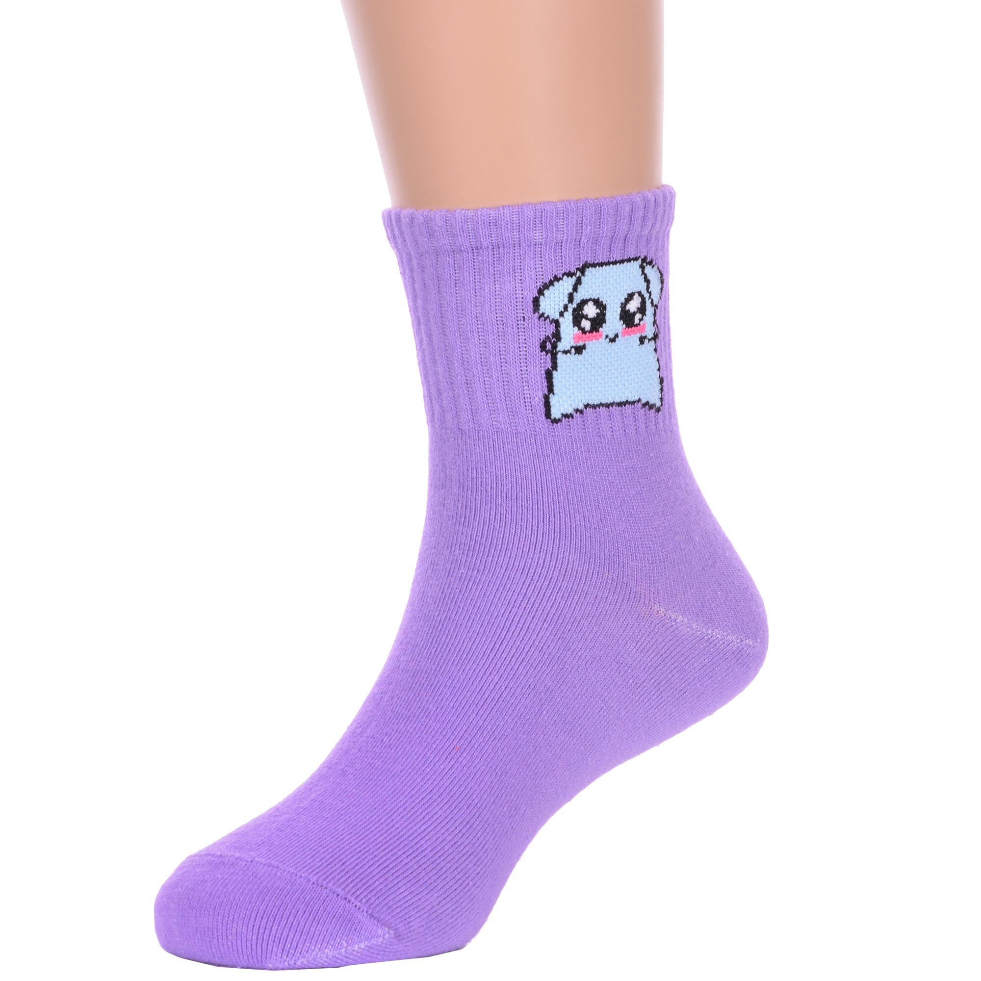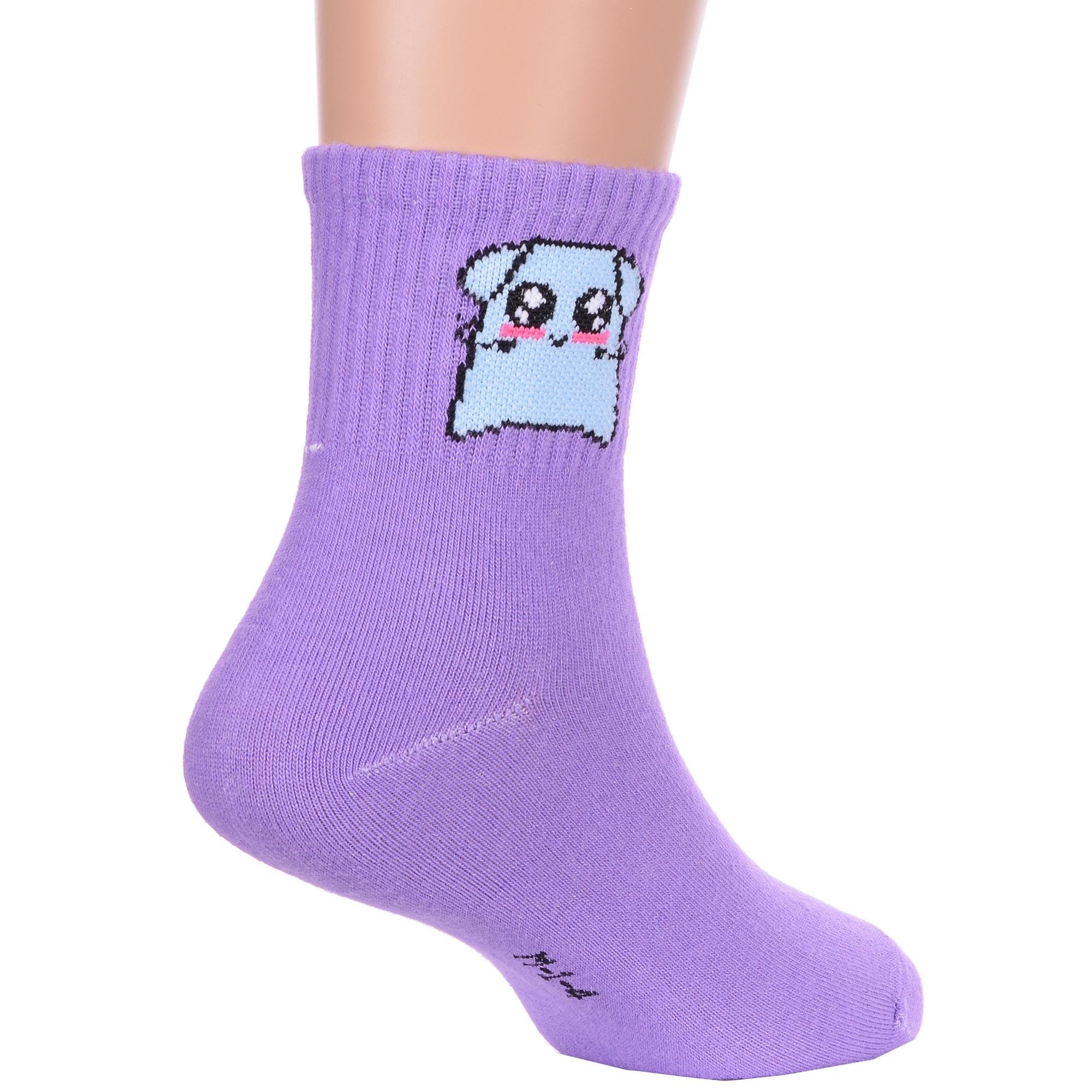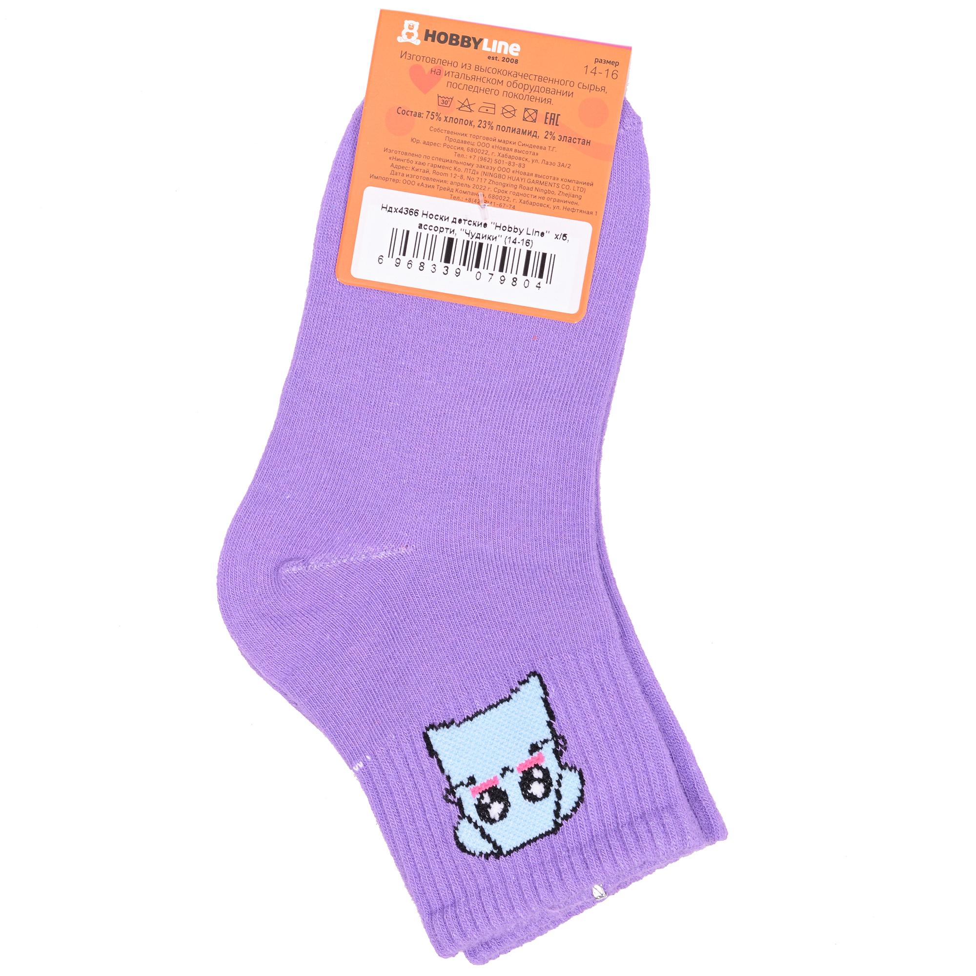 Круглогодичные укороченные детские носки, цвет сиреневый, спортивные, с вышивкой, шов обычный (не бесшовные), принт (рисунок): животные, с узором, состав: 75% хлопок, 23% полиамид, 2% эластан, арт. Ндх4366. Производитель «Китай, страна бренда - Россия» под брендом «Hobby line».