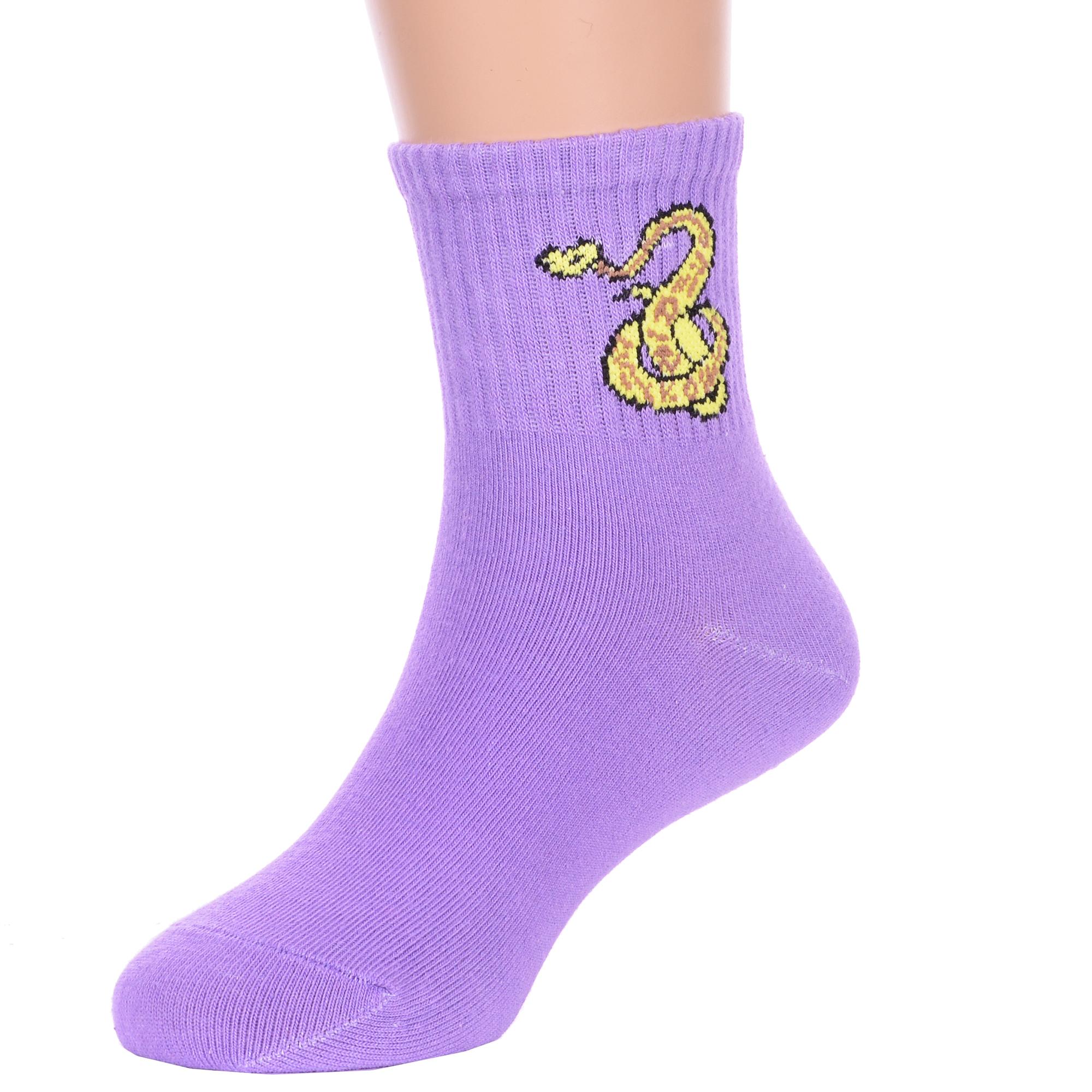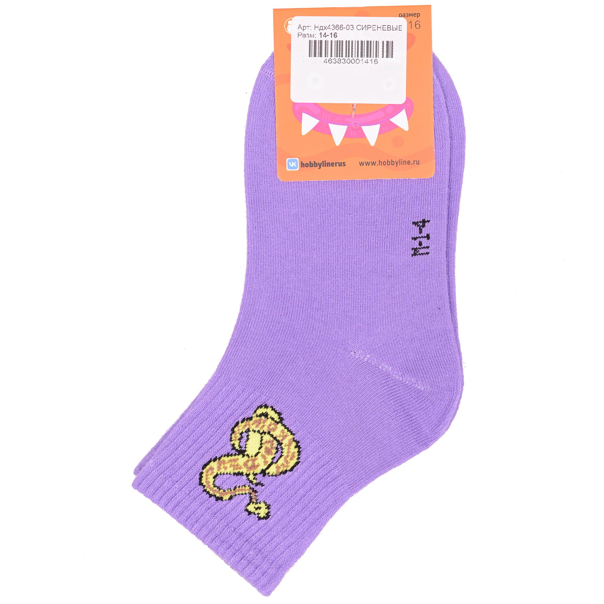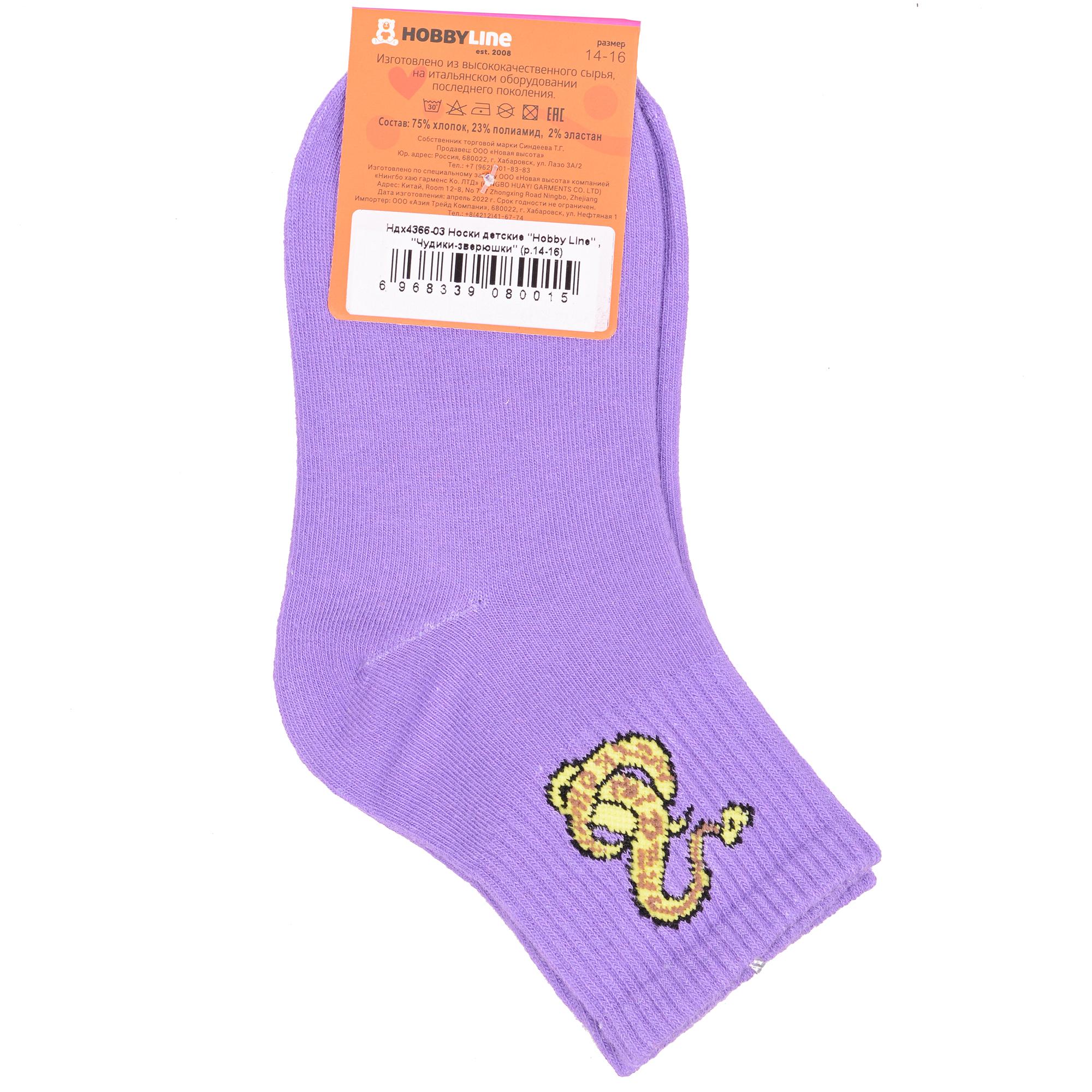 Круглогодичные укороченные детские носки, цвет сиреневый, спортивные, с вышивкой, шов обычный (не бесшовные), принт (рисунок): животные, с узором, состав: 75% хлопок, 23% полиамид, 2% эластан, арт. Ндх4366-03. Производитель «Китай, страна бренда - Россия» под брендом «Hobby line».