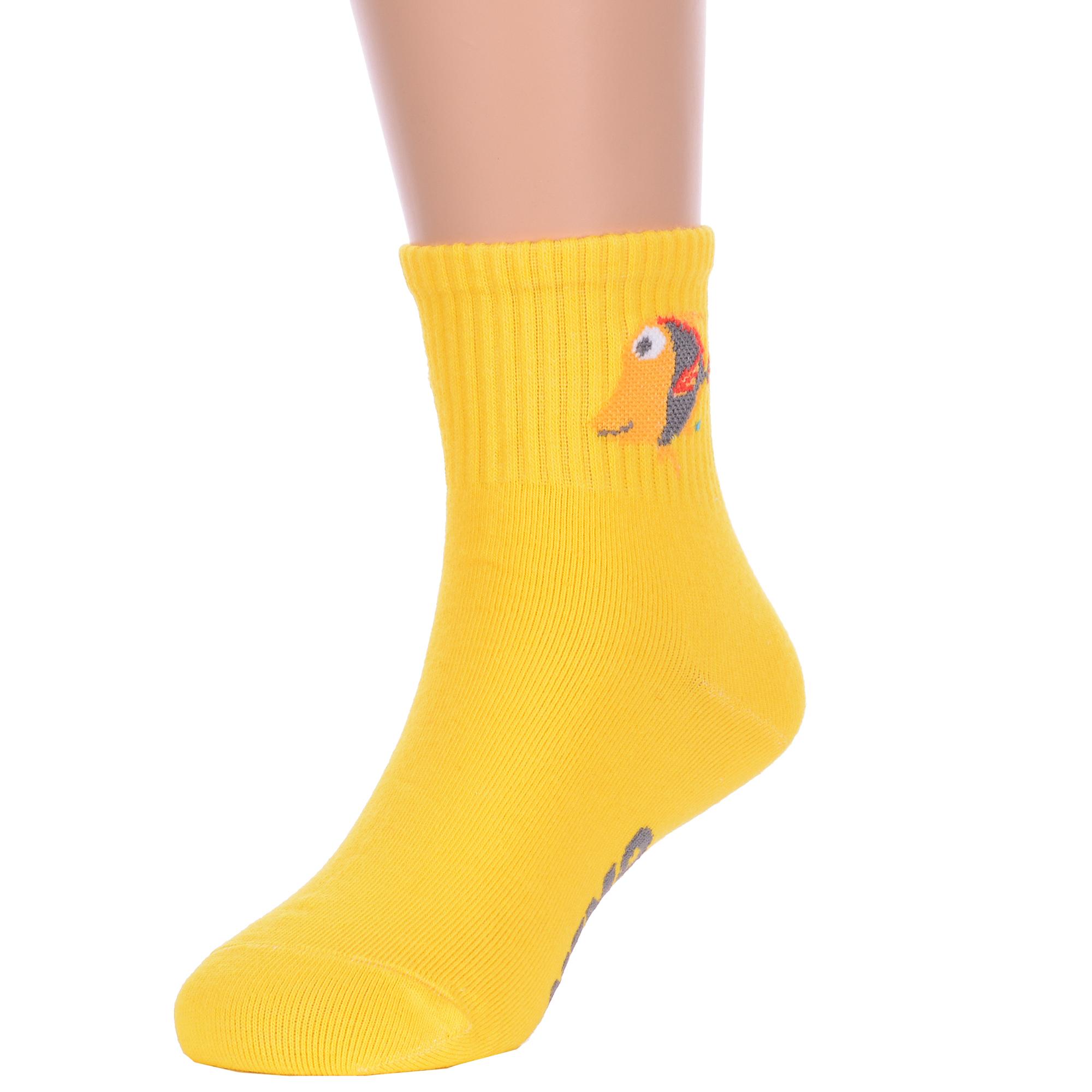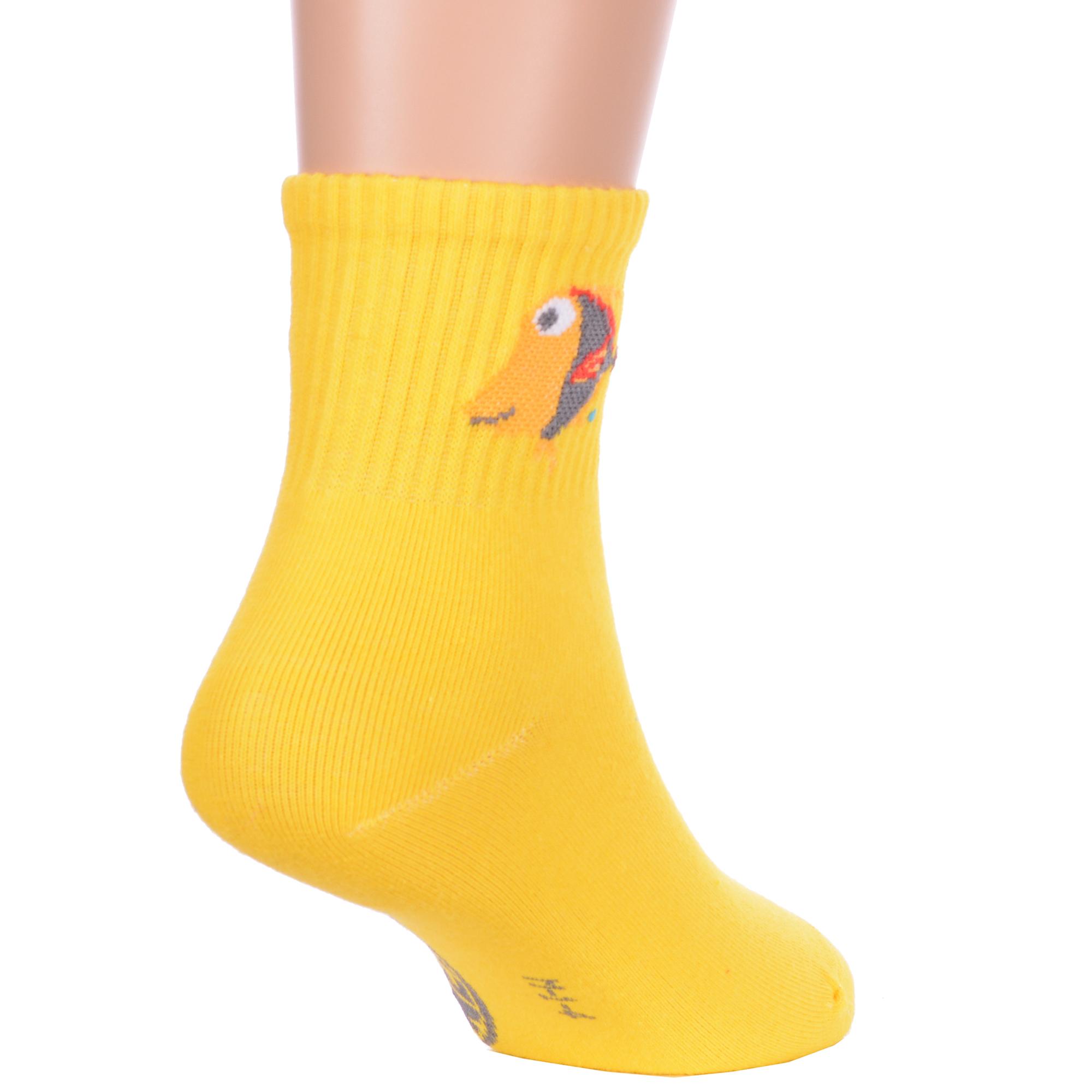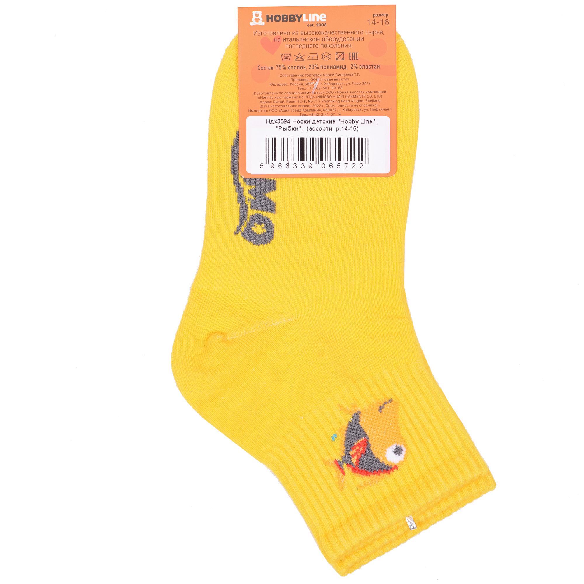 Круглогодичные укороченные детские носки, цвет желтый, спортивные, с вышивкой, шов обычный (не бесшовные), принт (рисунок): фильмы / сериалы / мультики, надписи, животные, с узором, состав: 75% хлопок, 23% полиамид, 2% эластан, арт. Ндх3594. Производитель «Китай, страна бренда - Россия» под брендом «Hobby line».