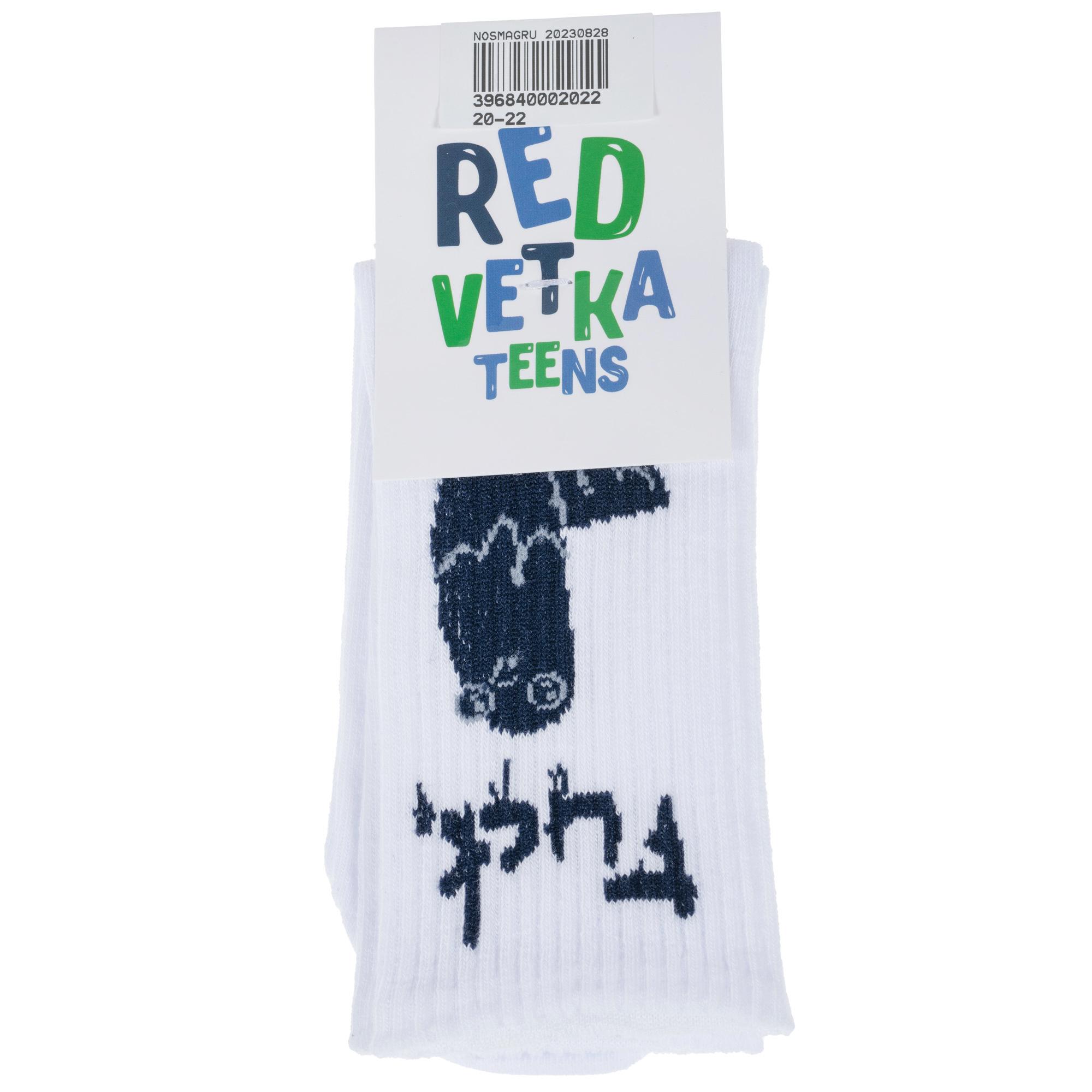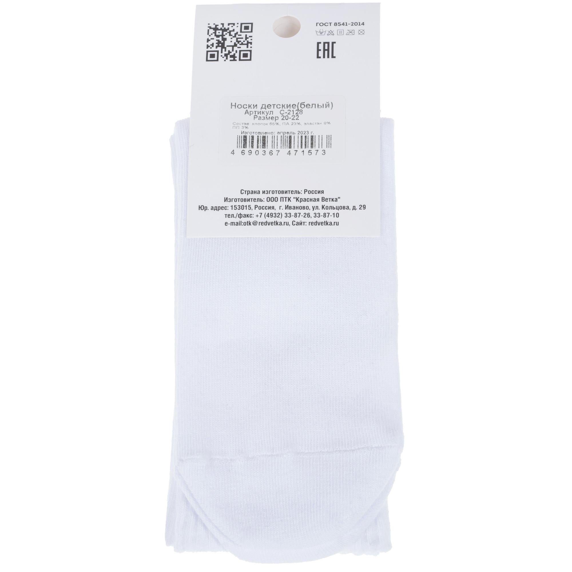 Круглогодичные средней длины детские носки, цвет белый, спортивные, повседневные, возможно бесшовные, принт (рисунок): надписи, животные, в рубчик, с узором, состав: 66% хлопок, 23% полиамид, 9% эластан, 2% полипропилен, арт. С-2128. Производитель «КРАСНАЯ ВЕТКА» Россия под брендом «Красная ветка».