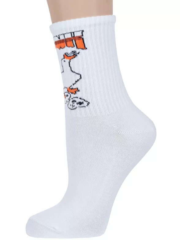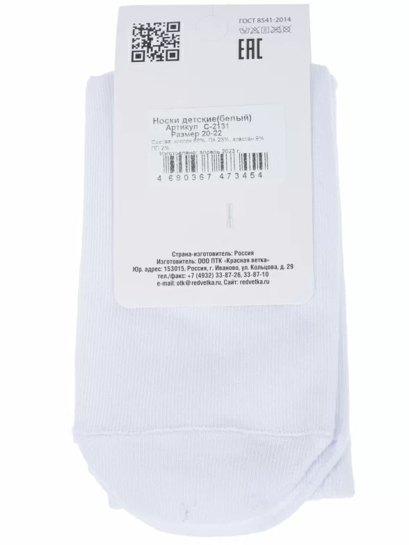 Круглогодичные укороченные детские носки, цвет белый, спортивные, повседневные, шов обычный (не бесшовные), принт (рисунок): хоррор / ужасы, надписи, животные, в рубчик, с узором, состав: 66% хлопок, 23% полиамид, 9% эластан, 2% полипропилен, арт. С-2131. Производитель «КРАСНАЯ ВЕТКА» Россия под брендом «Красная ветка».