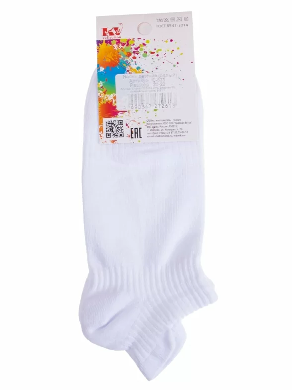 Круглогодичные короткие детские носки, цвет белый, спортивные, состав: 73% хлопок, 21% полиамид, 6% эластан, фабричный артикул С-533. Производитель «КРАСНАЯ ВЕТКА» Россия под брендом «Красная ветка».