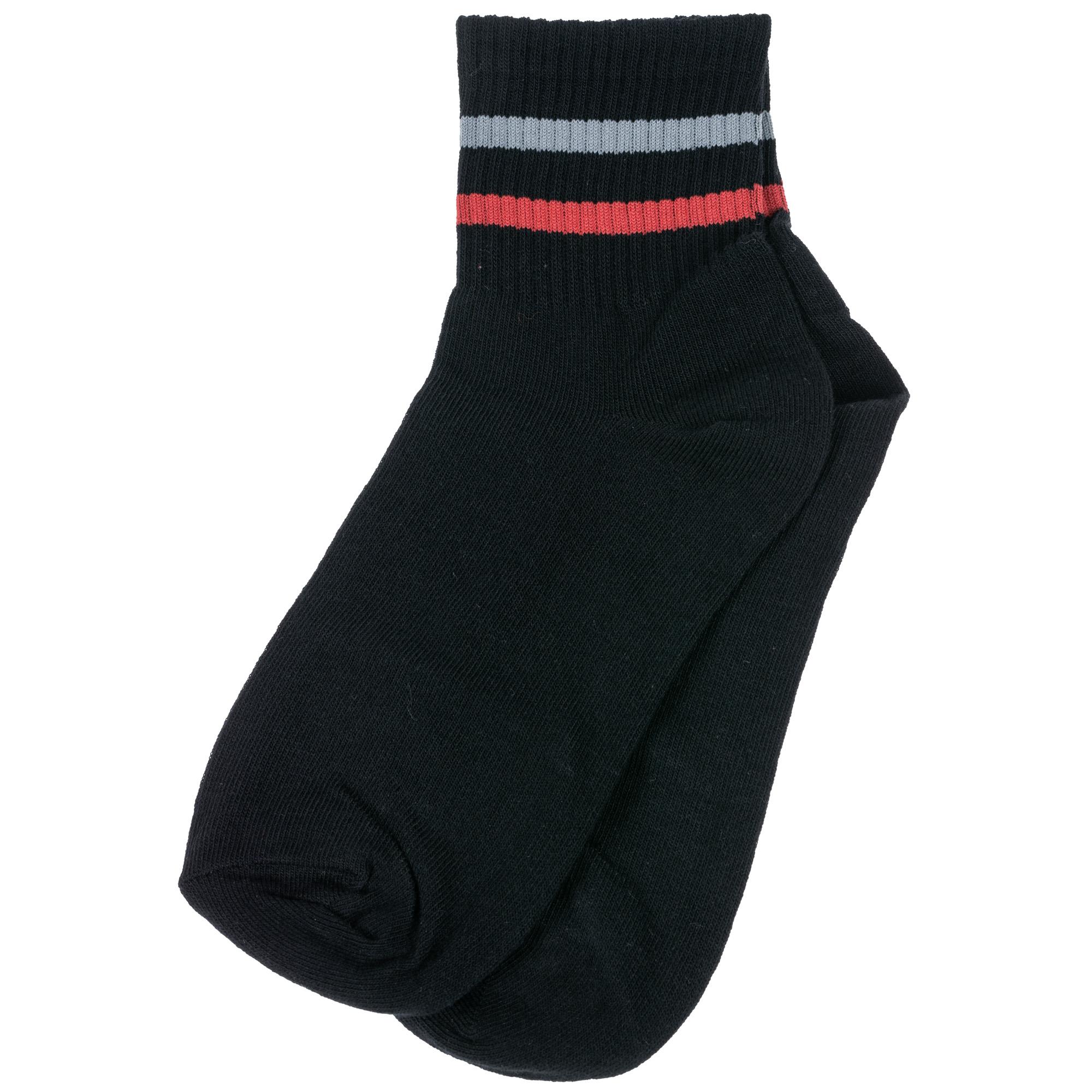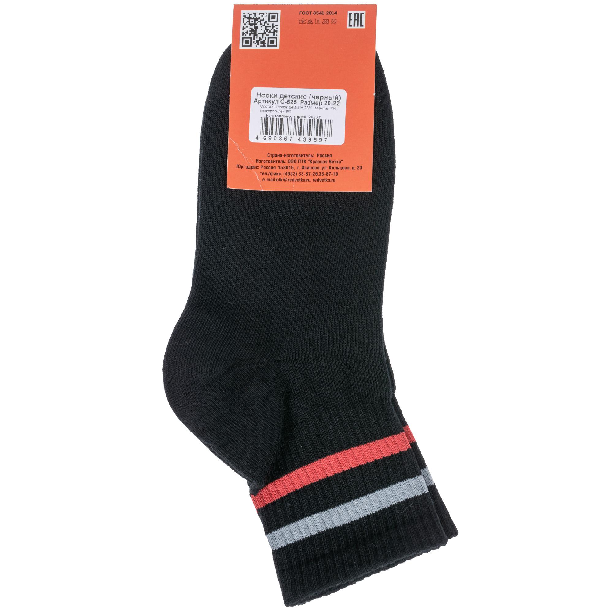 Круглогодичные укороченные детские носки, цвет черный, спортивные, возможно бесшовные, принт (рисунок): полоски, в рубчик, с узором, состав: 64% хлопок, 23% полиамид, 7% эластан, 6% полипропилен, арт. С-525. Производитель «КРАСНАЯ ВЕТКА» Россия под брендом «Красная ветка».