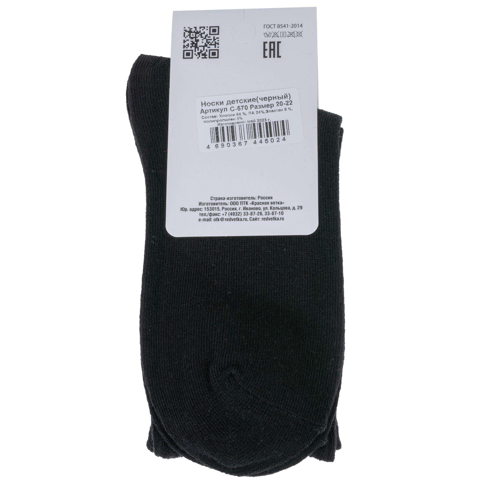 Детские спортивные носки "Красная ветка" С-570, ЧЕРНЫЕ