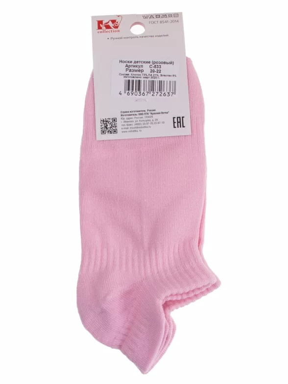 Круглогодичные короткие детские носки, цвет розовый, спортивные, состав: 73% хлопок, 21% полиамид, 6% эластан, фабричный артикул С-533. Производитель «КРАСНАЯ ВЕТКА» Россия под брендом «Красная ветка».