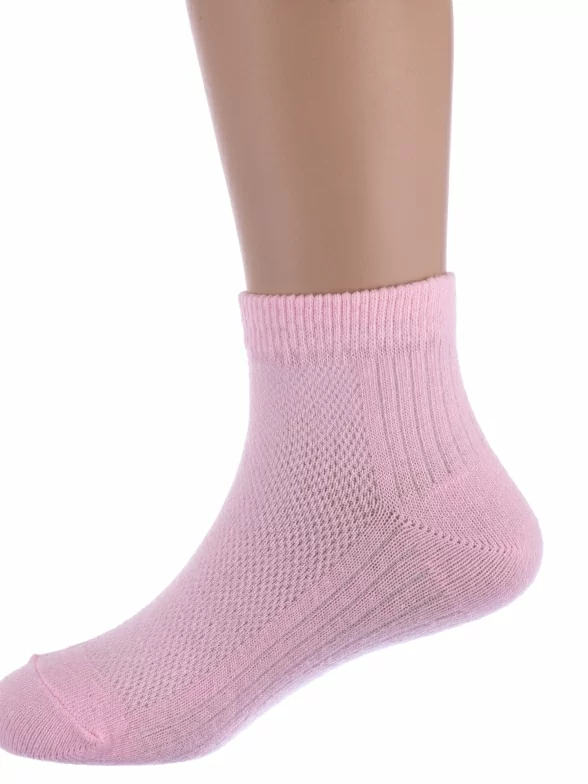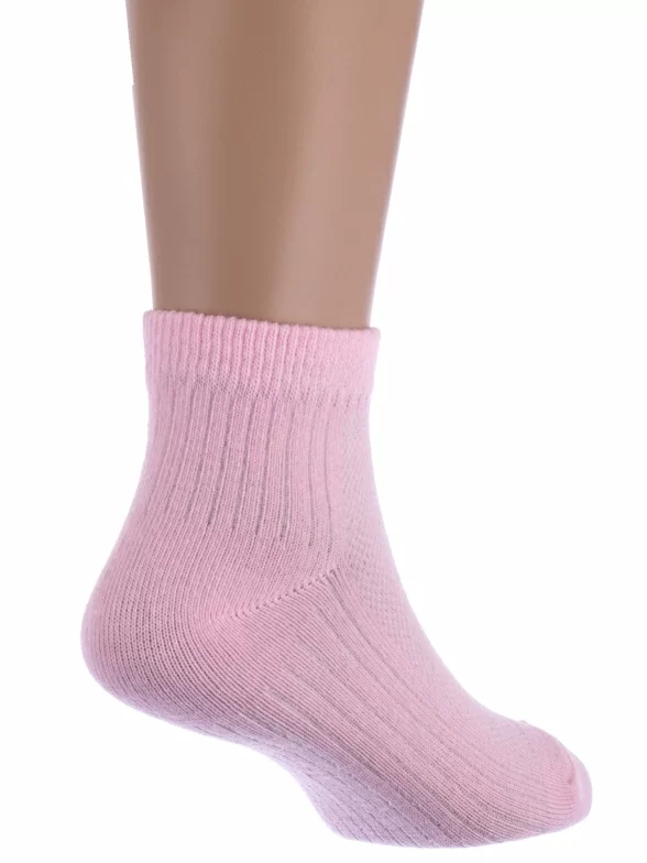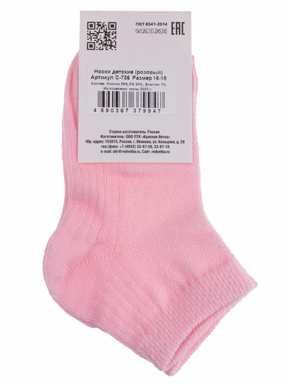 Круглогодичные укороченные детские носки, цвет розовый, спортивные, состав: 69% хлопок, 24% полиамид, 7% эластан, фабричный артикул С-736. Производитель «КРАСНАЯ ВЕТКА» Россия под брендом «Красная ветка».