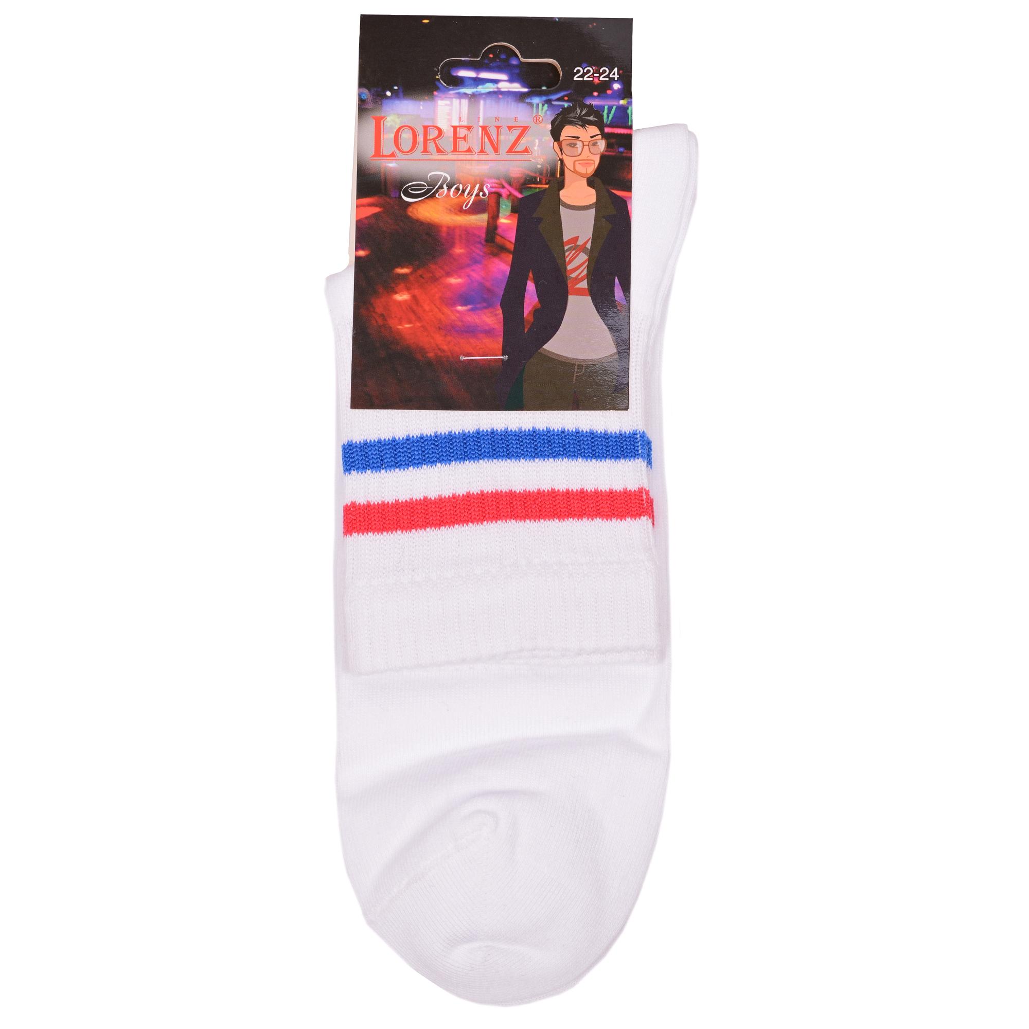 Круглогодичные укороченные детские носки, цвет белый, спортивные, повседневные, возможно бесшовные, принт (рисунок): полоски, в рубчик, с узором, состав: 90% хлопок, 7% полиамид, 3% эластан (лайкра), арт. П19. Производитель «ИП Мурзаков В.А., Ставропольский край, Россия» под брендом «Lorenzline».