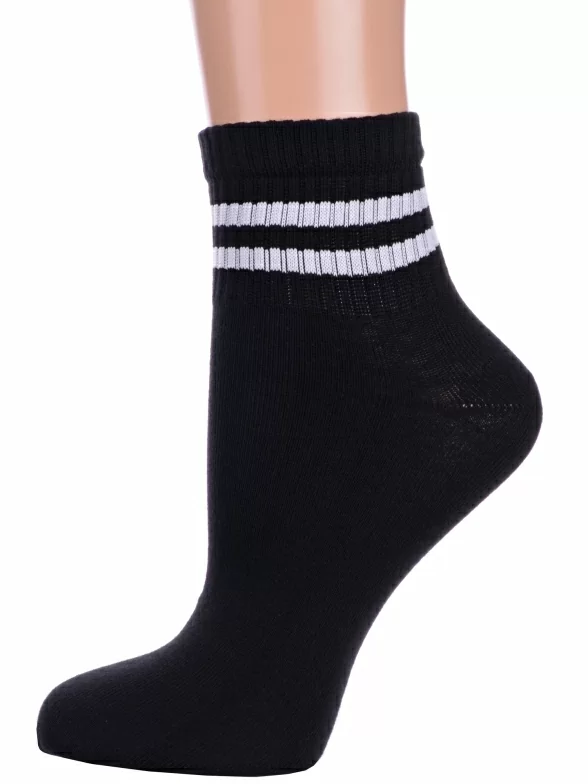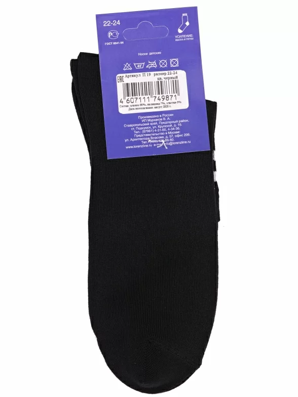 Круглогодичные укороченные детские носки, цвет черный-белый, спортивные, повседневные, возможно бесшовные, принт (рисунок): полоски, в рубчик, с узором, состав: 90% хлопок, 7% полиамид, 3% эластан (лайкра), арт. П19. Производитель «ИП Мурзаков В.А., Ставропольский край, Россия» под брендом «Lorenzline».
