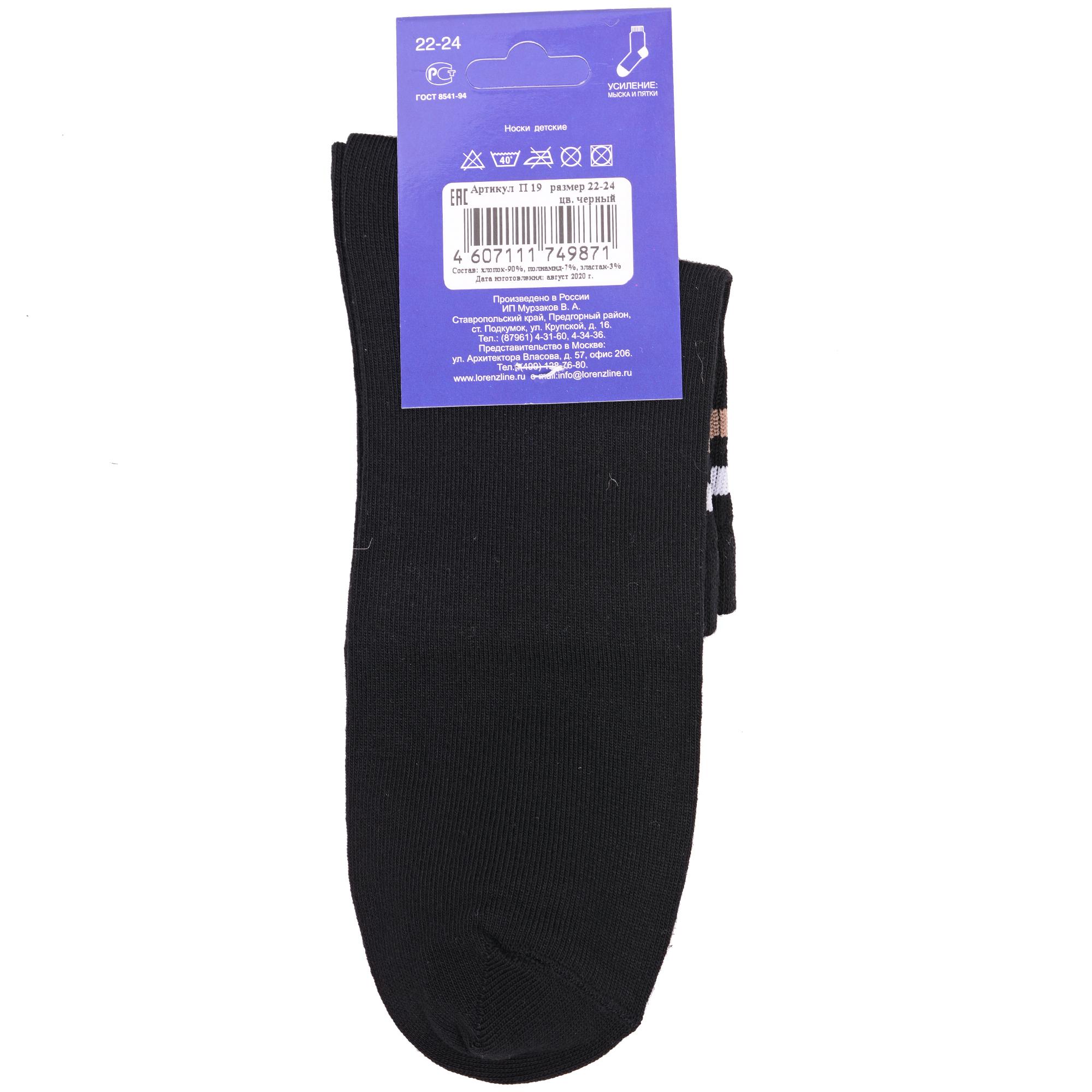 Круглогодичные укороченные детские носки, цвет черный, спортивные, повседневные, возможно бесшовные, принт (рисунок): полоски, в рубчик, с узором, состав: 90% хлопок, 7% полиамид, 3% эластан (лайкра), арт. П19. Производитель «ИП Мурзаков В.А., Ставропольский край, Россия» под брендом «Lorenzline».