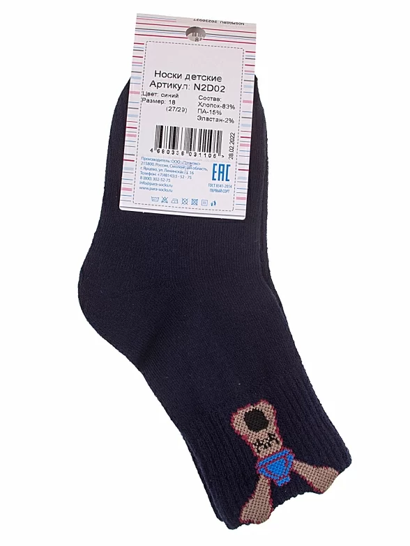 Круглогодичные укороченные детские носки, цвет синий, спортивные, состав: 83% хлопок, 15% полиамид, 2% эластан, фабричный артикул N2D02. Производитель «ПРОМЭКС ООО, Смоленская область, Россия» под брендом «Para socks».