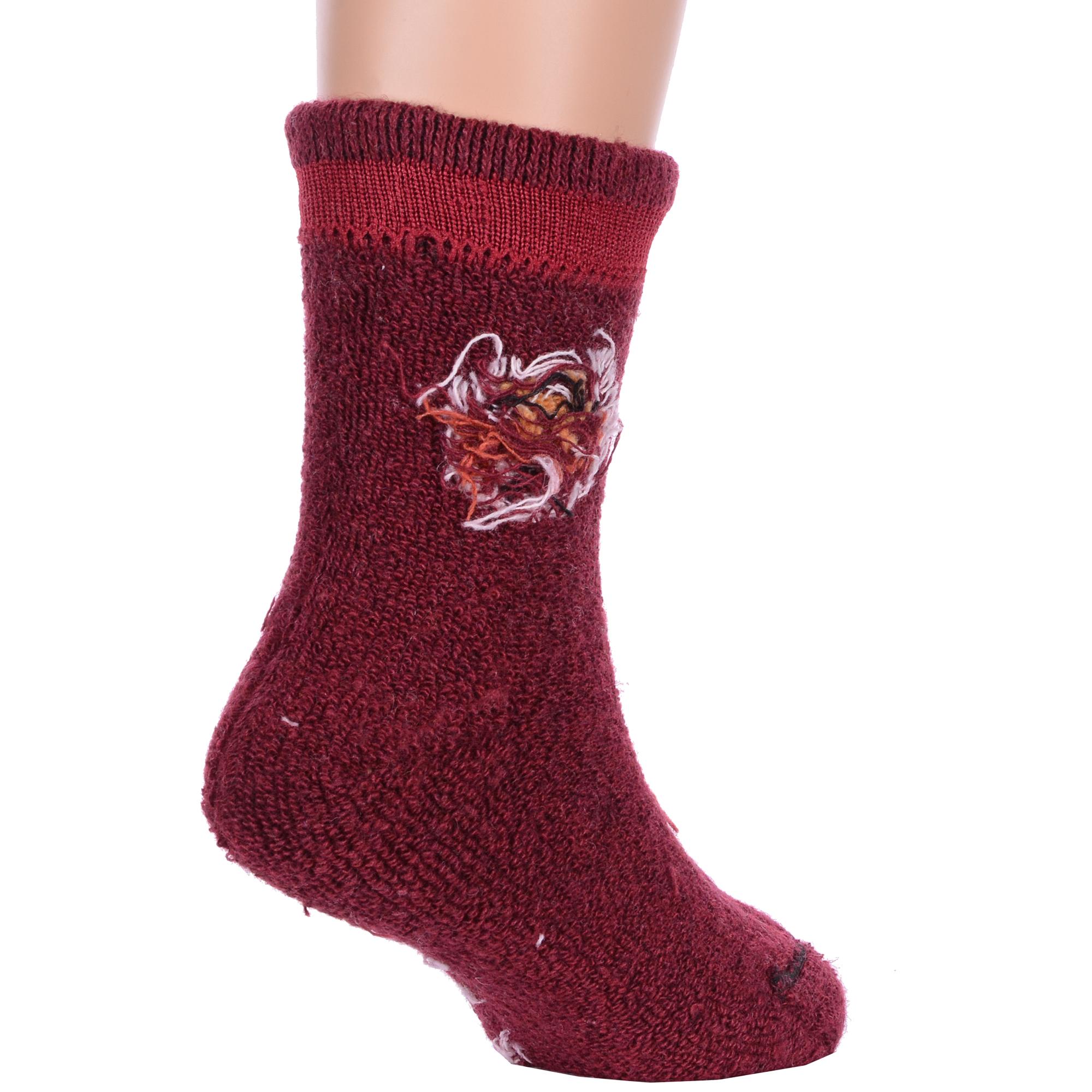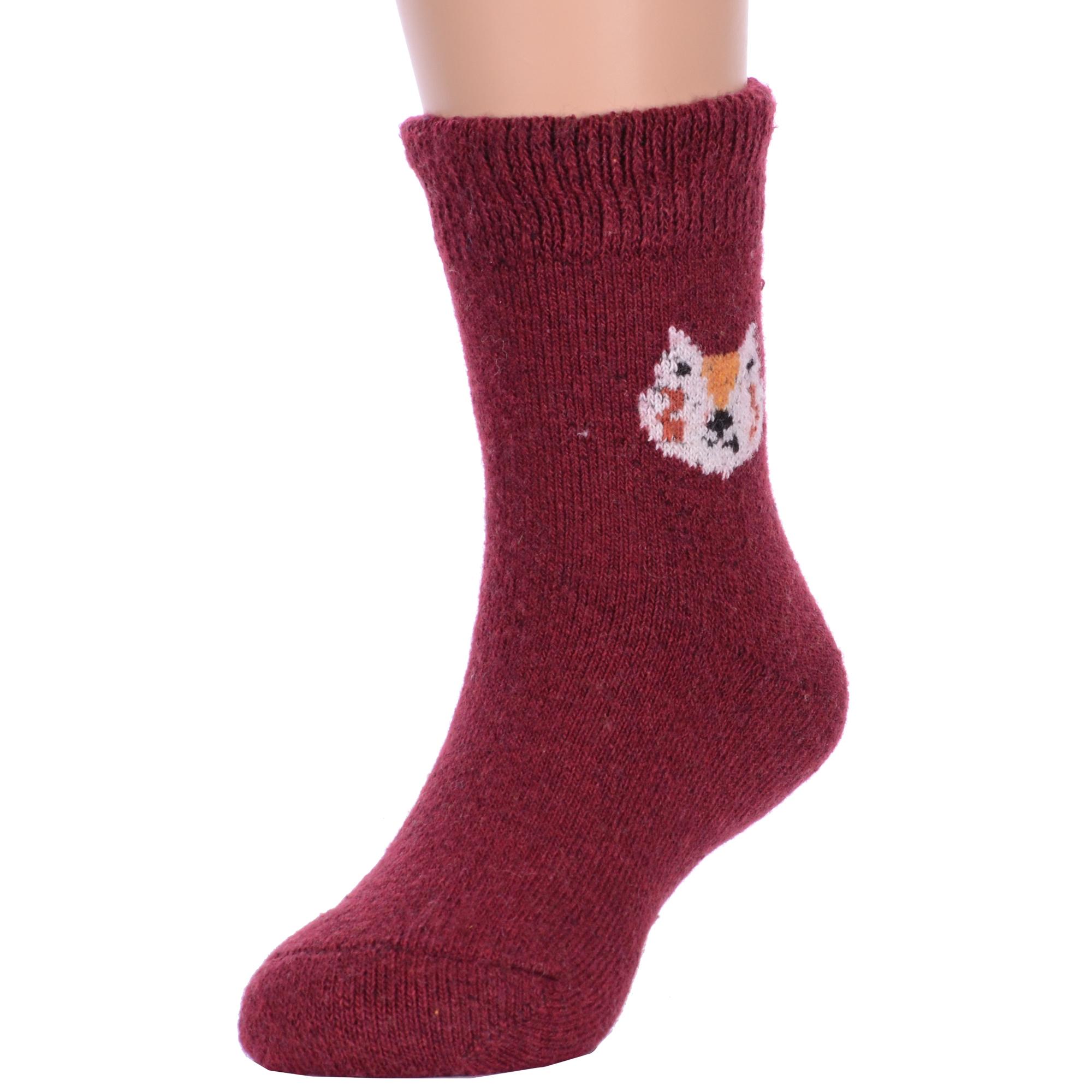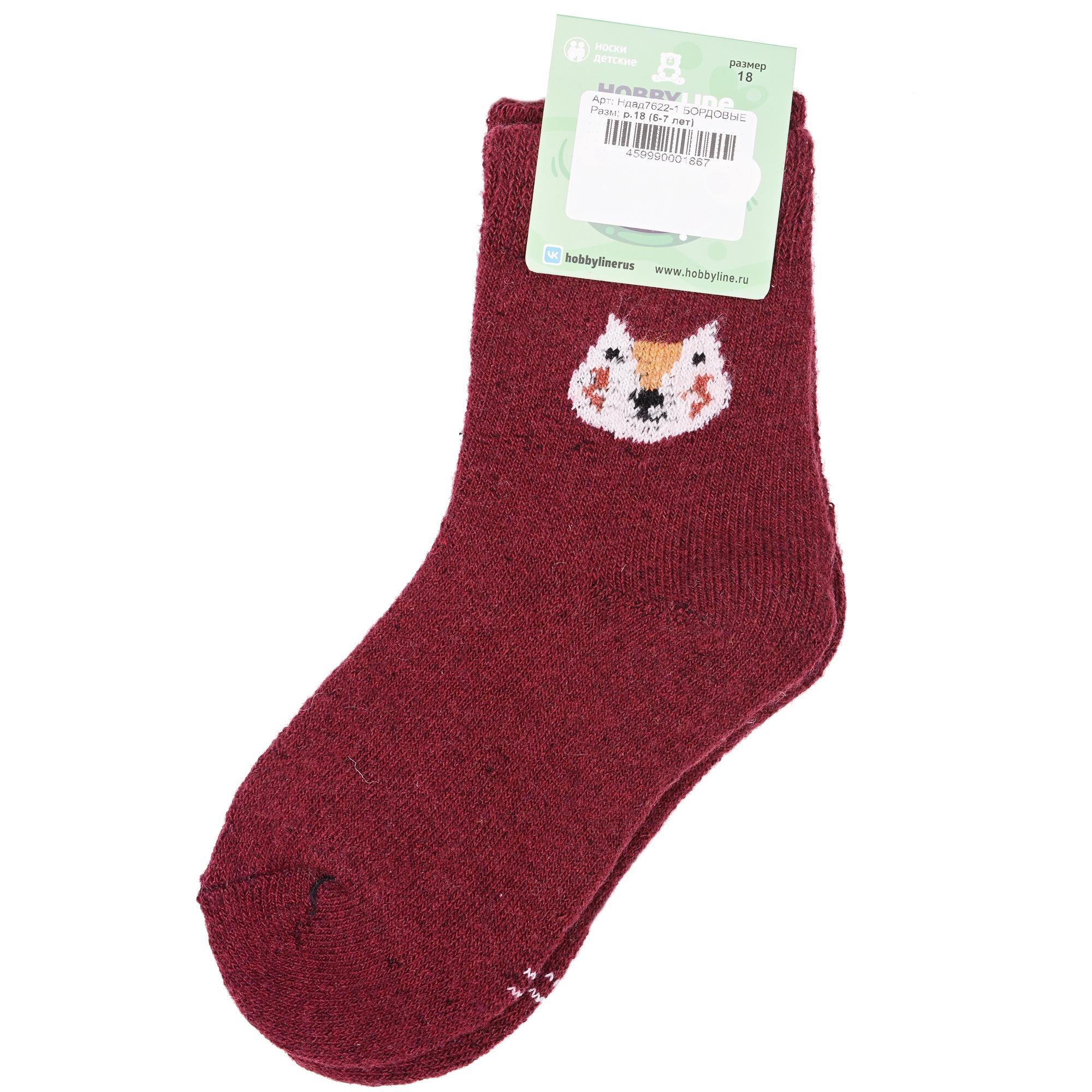 Зимние укороченные детские носки, цвет бордовый, теплые, повседневные, махровые, шов обычный (не бесшовные), принт (рисунок): животные, с узором, состав: 35% вискоза, 20% шерсть, 10% ангора, 30% полиэстер, 5% эластан, арт. Ндад7622-1. Производитель «Китай, страна бренда - Россия» под брендом «Hobby line».