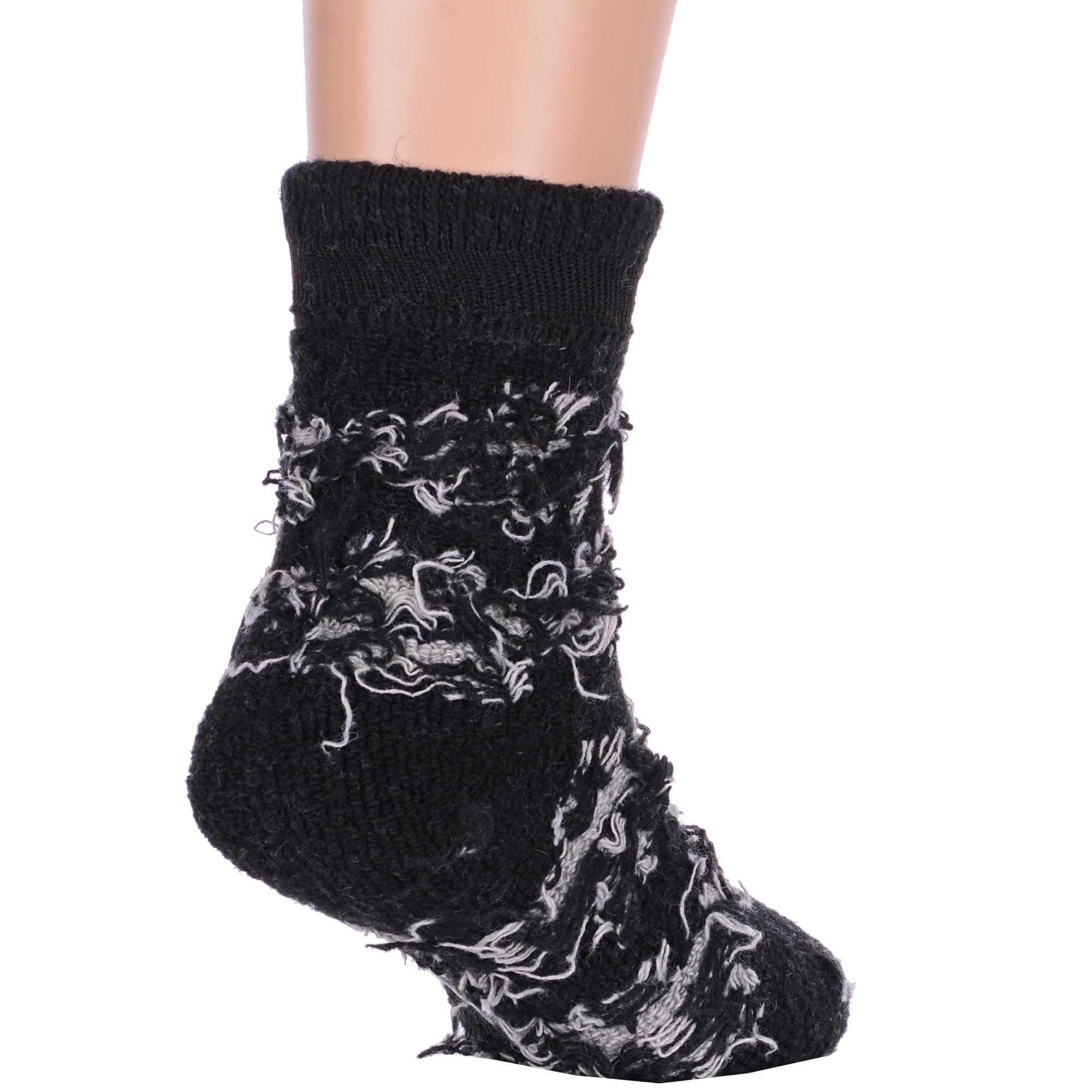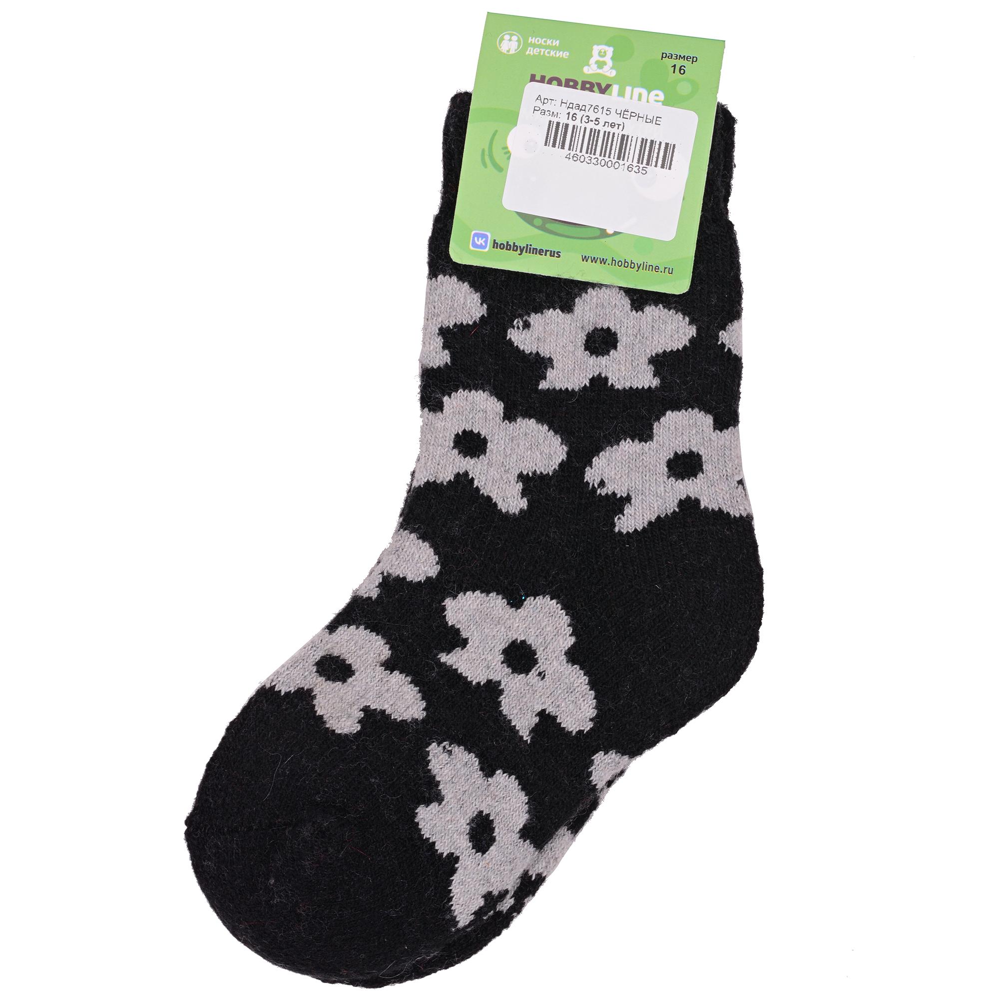 Зимние укороченные детские носки, цвет черный, теплые, повседневные, махровые, шов обычный (не бесшовные), принт (рисунок): цветы / растения, с узором, состав: 35% вискоза, 20% шерсть, 10% ангора, 30% полиэстер, 5% эластан, арт. Ндад7615. Производитель «Китай, страна бренда - Россия» под брендом «Hobby line».