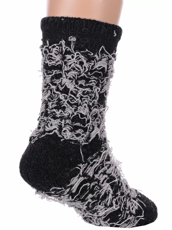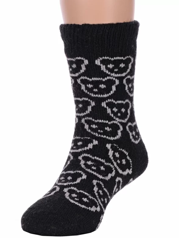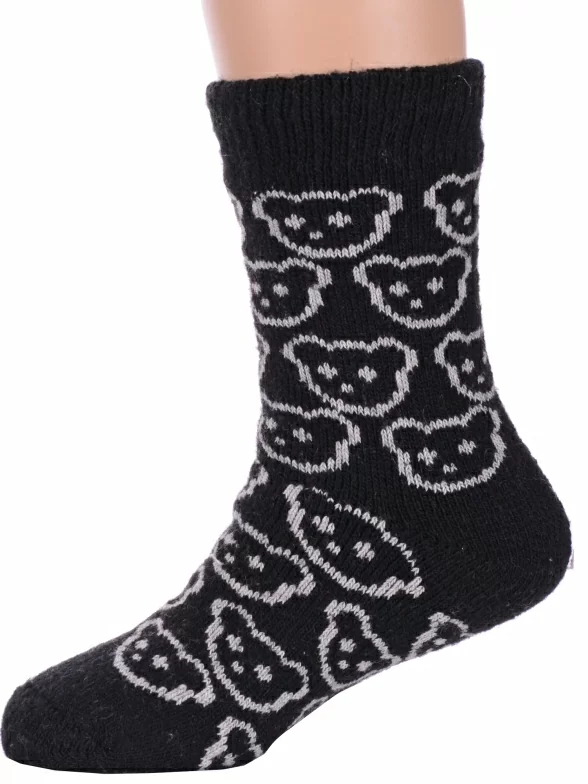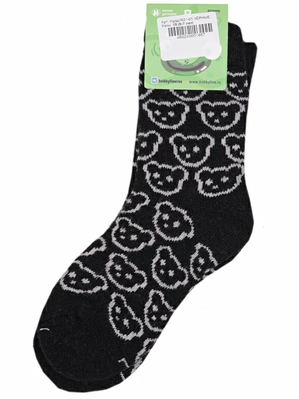Зимние укороченные детские носки, цвет черный, теплые, с принтом, махровые, состав: 35% вискоза, 20% шерсть, 10% ангора, 30% полиэстер, 5% эластан (состав на этикетке может отличаться), арт. Ндад7621-01. Производитель «Китай, страна бренда - Россия» под брендом «Hobby line».