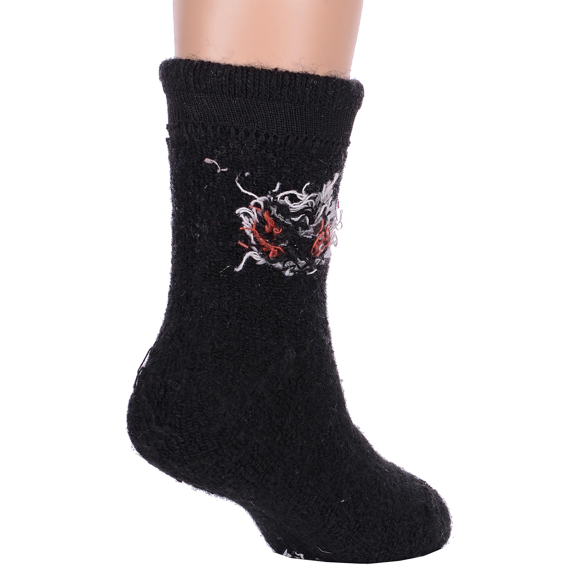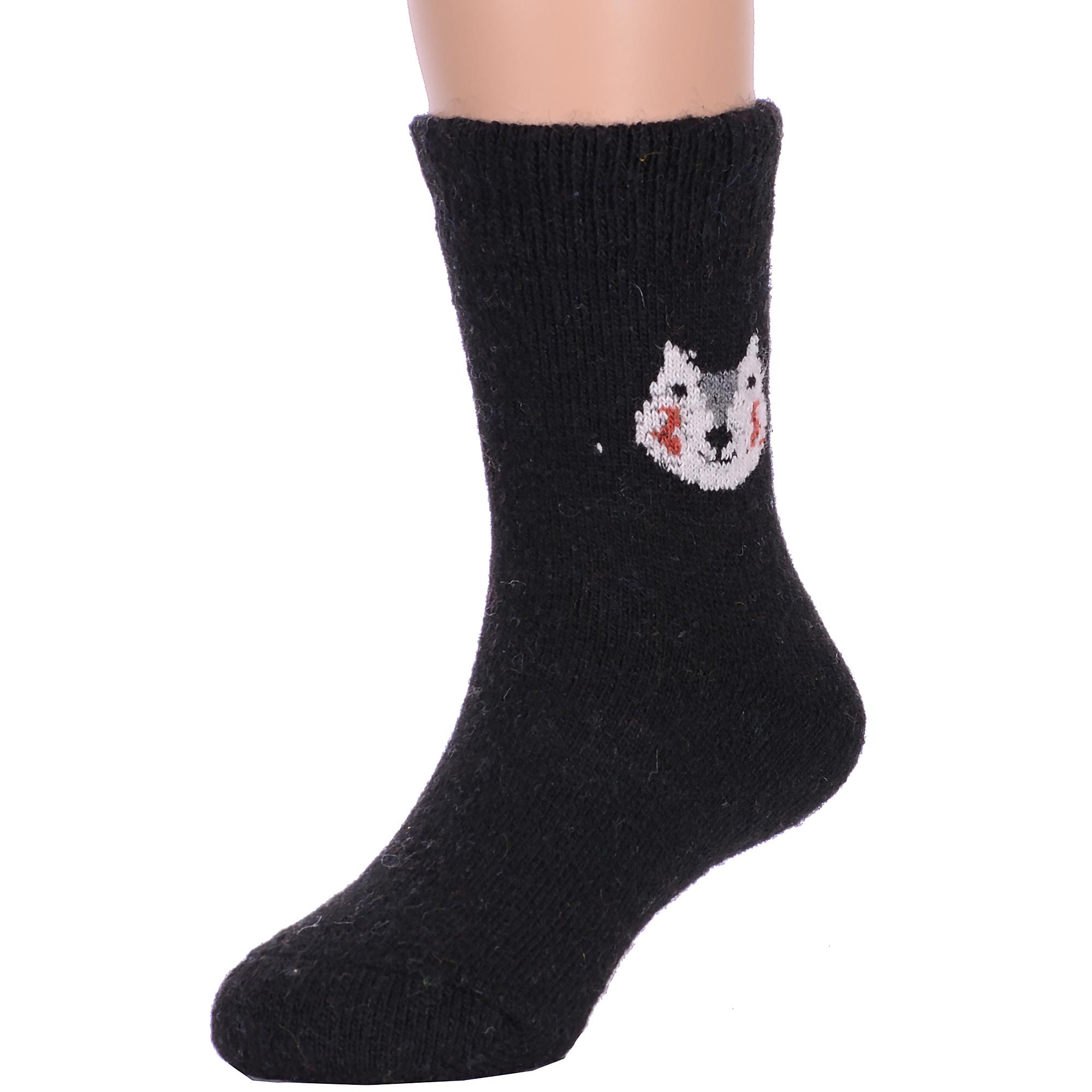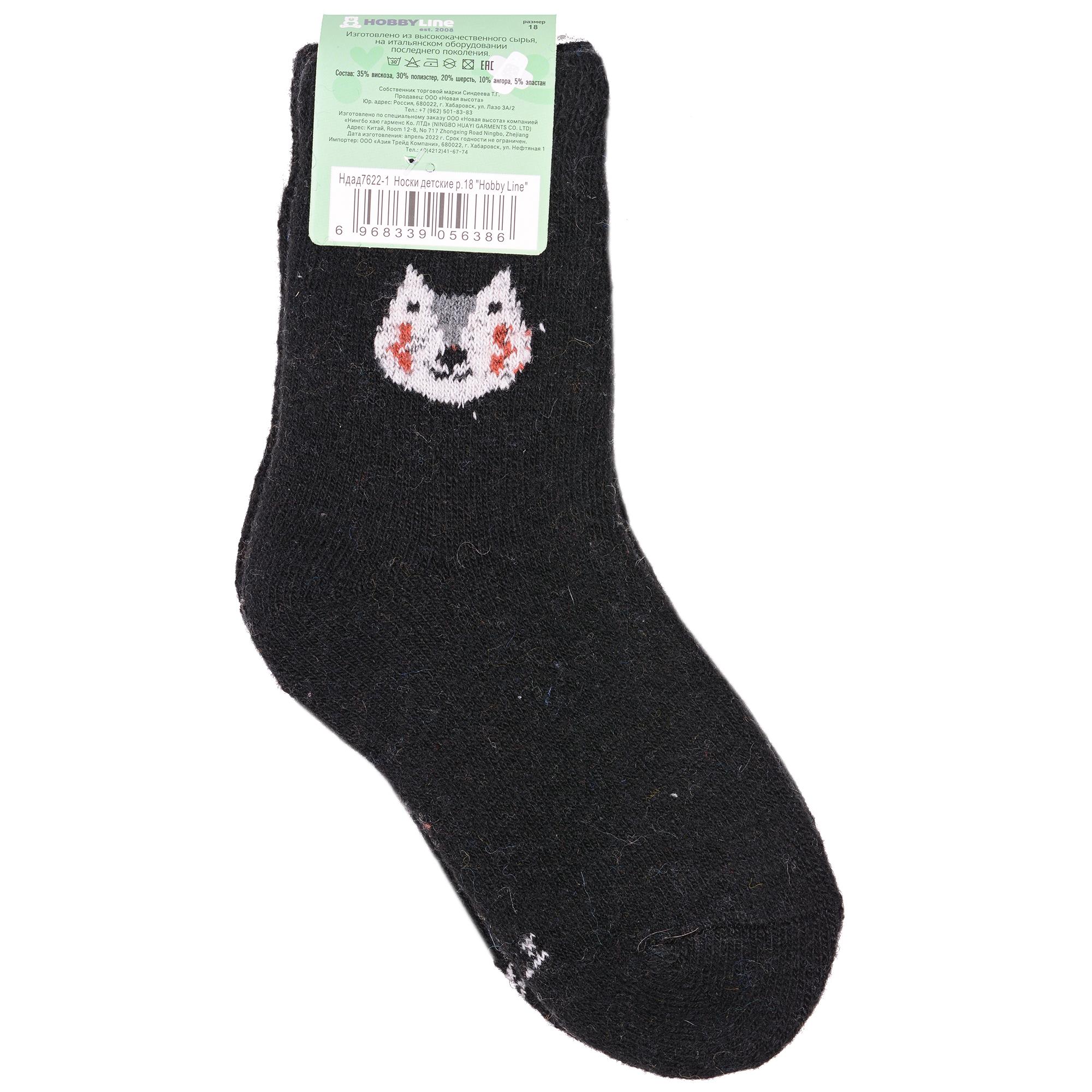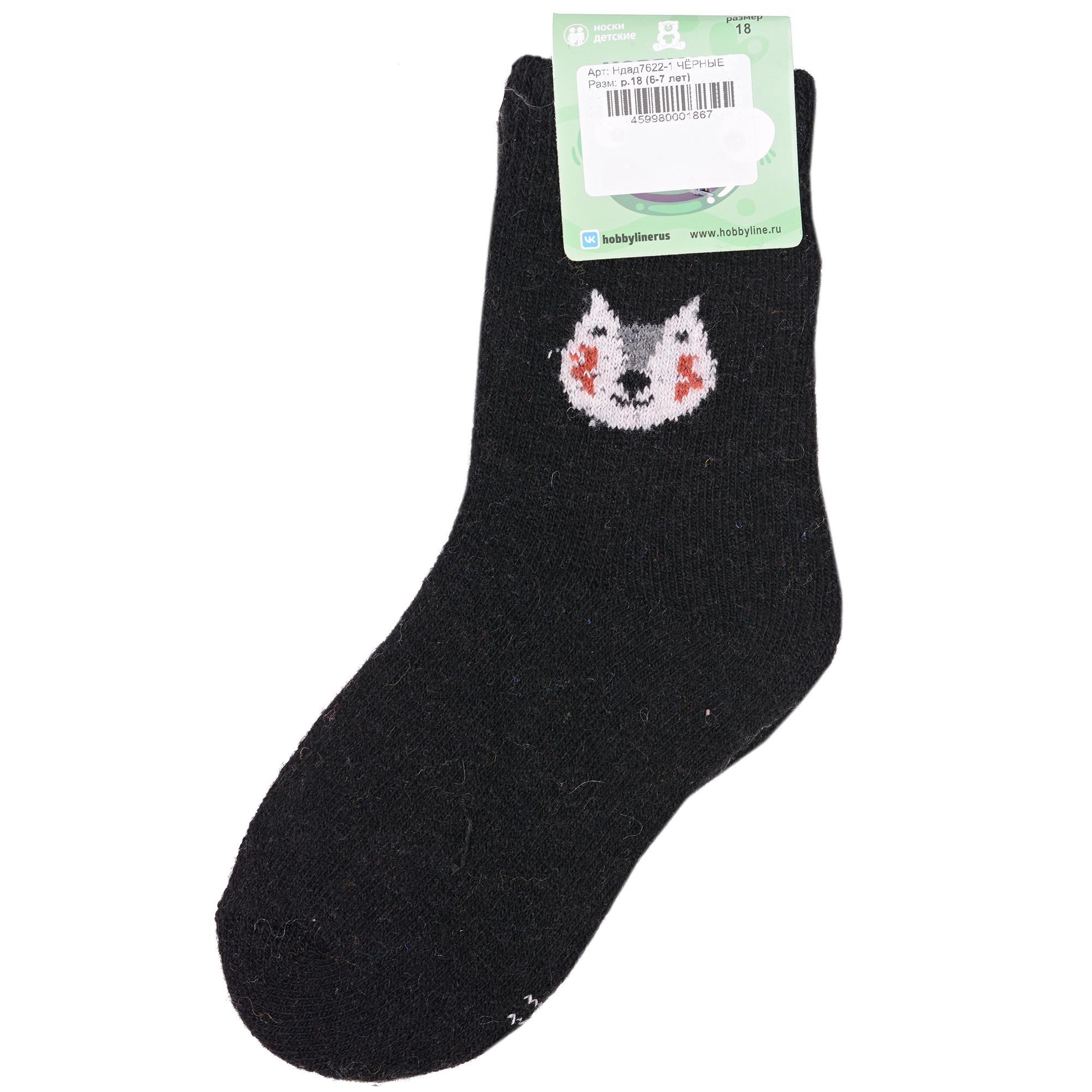 Зимние укороченные детские носки, цвет черный, теплые, повседневные, махровые, шов обычный (не бесшовные), принт (рисунок): животные, с узором, состав: 35% вискоза, 20% шерсть, 10% ангора, 30% полиэстер, 5% эластан, арт. Ндад7622-1. Производитель «Китай, страна бренда - Россия» под брендом «Hobby line».