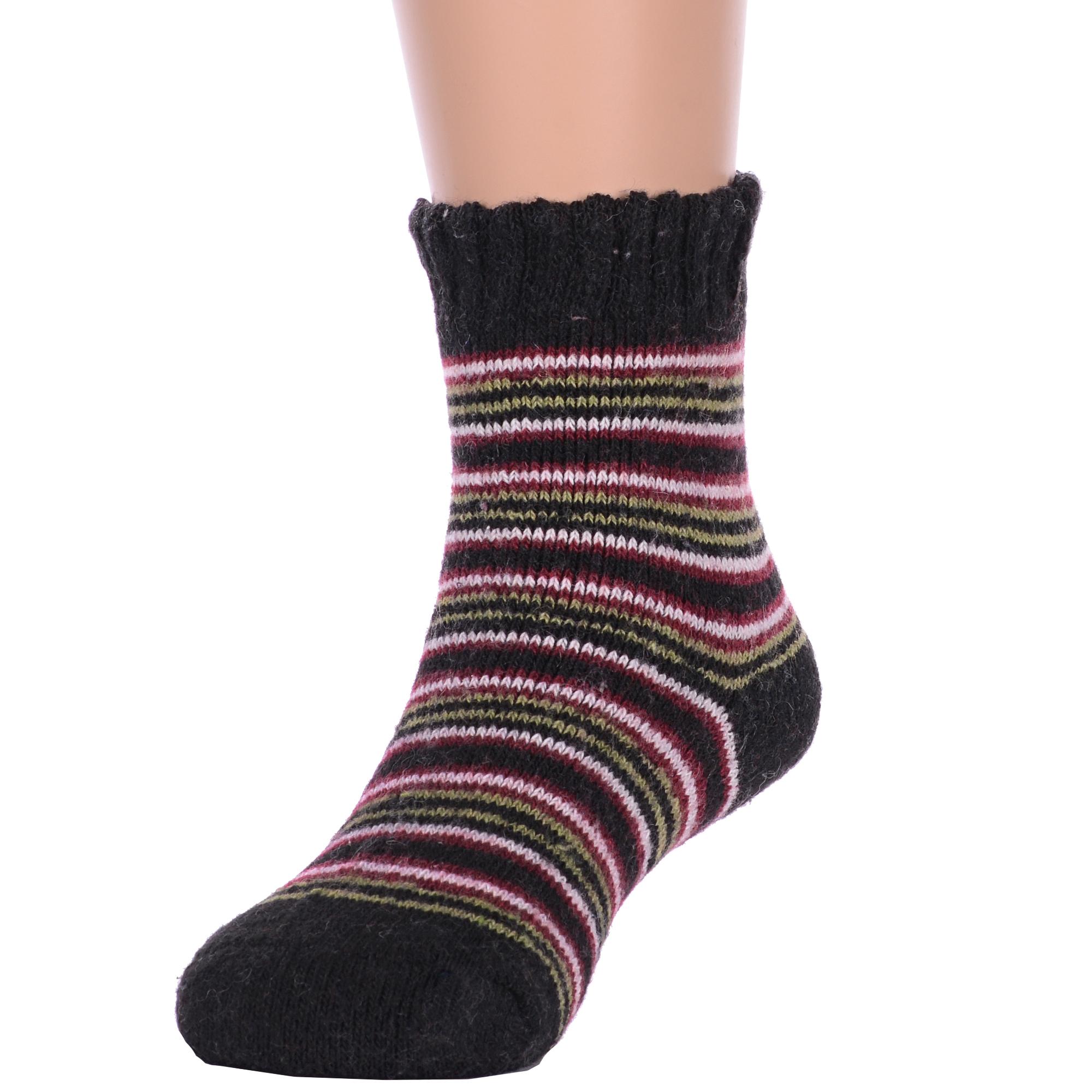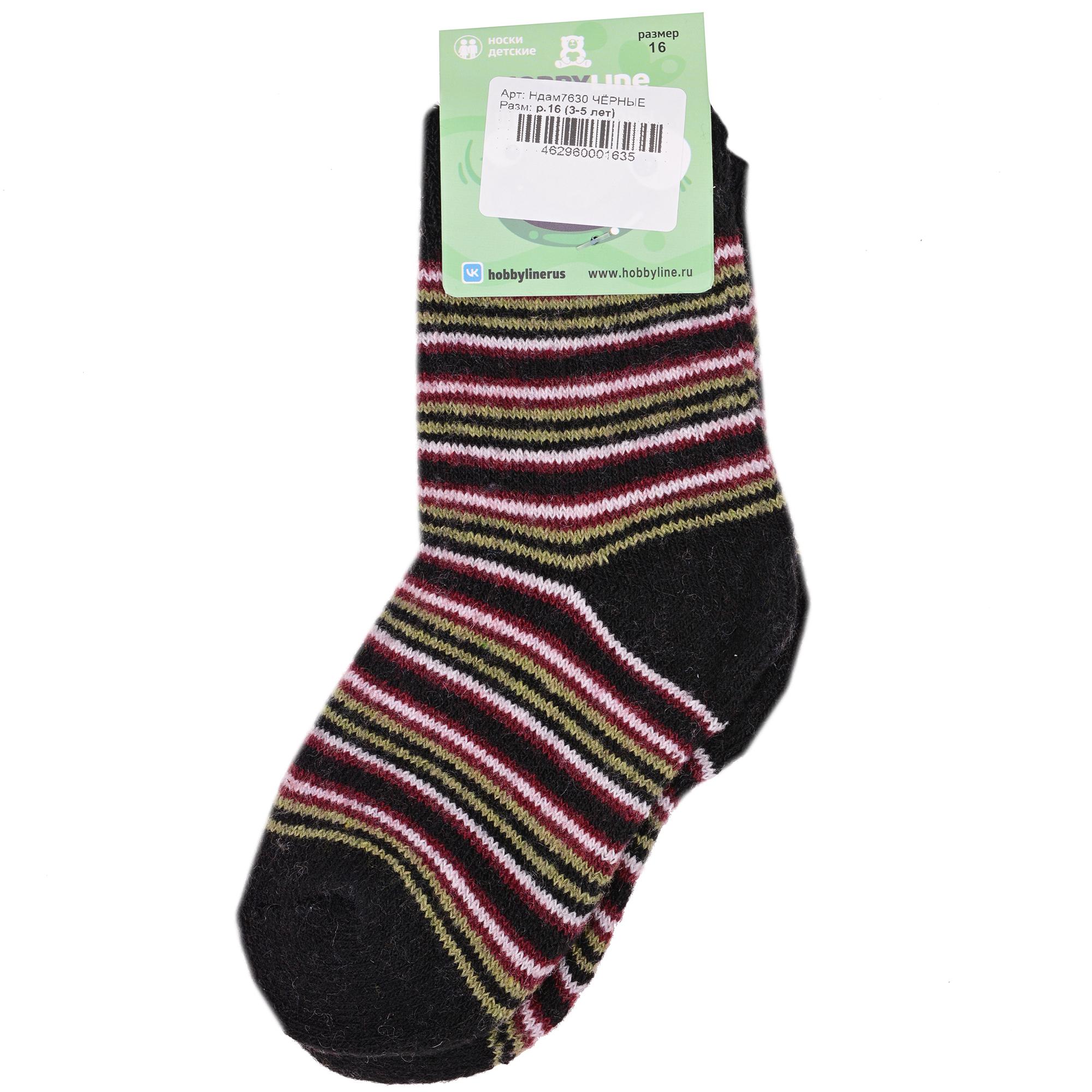 Зимние укороченные детские носки, цвет черный, теплые, повседневные, махровые, шов обычный (не бесшовные), принт (рисунок): полоски, с узором, состав: 35% вискоза, 20% шерсть, 10% ангора, 30% полиэстер, 5% эластан, арт. Ндам7630. Производитель «Китай, страна бренда - Россия» под брендом «Hobby line».