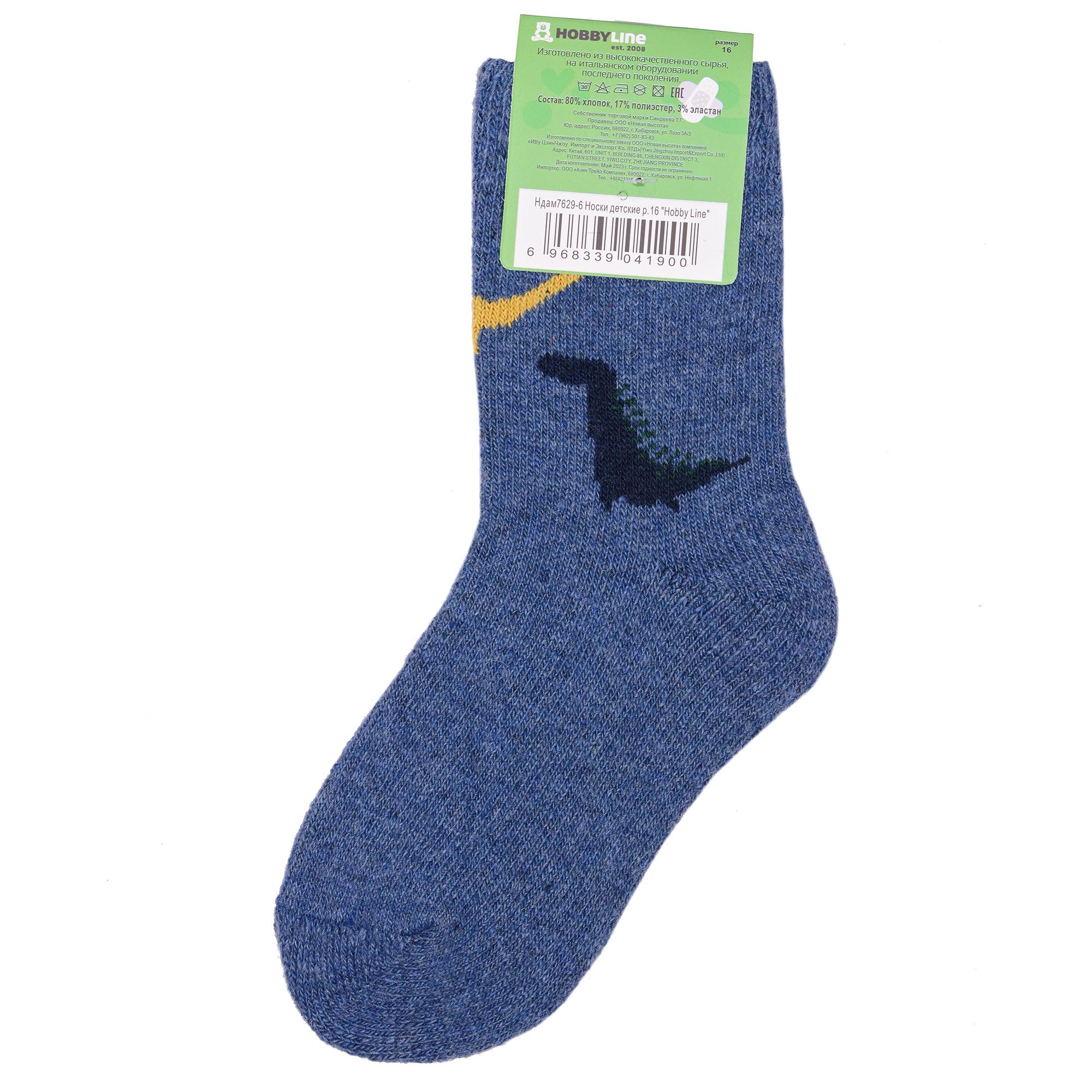 Зимние укороченные детские носки, цвет джинс, теплые, махровые, шов обычный (не бесшовные), принт (рисунок): животные, с узором, состав: 35% вискоза, 20% шерсть, 10% ангора, 30% полиэстер, 5% эластан, арт. 7629-6. Производитель «Китай, страна бренда - Россия» под брендом «Hobby line».