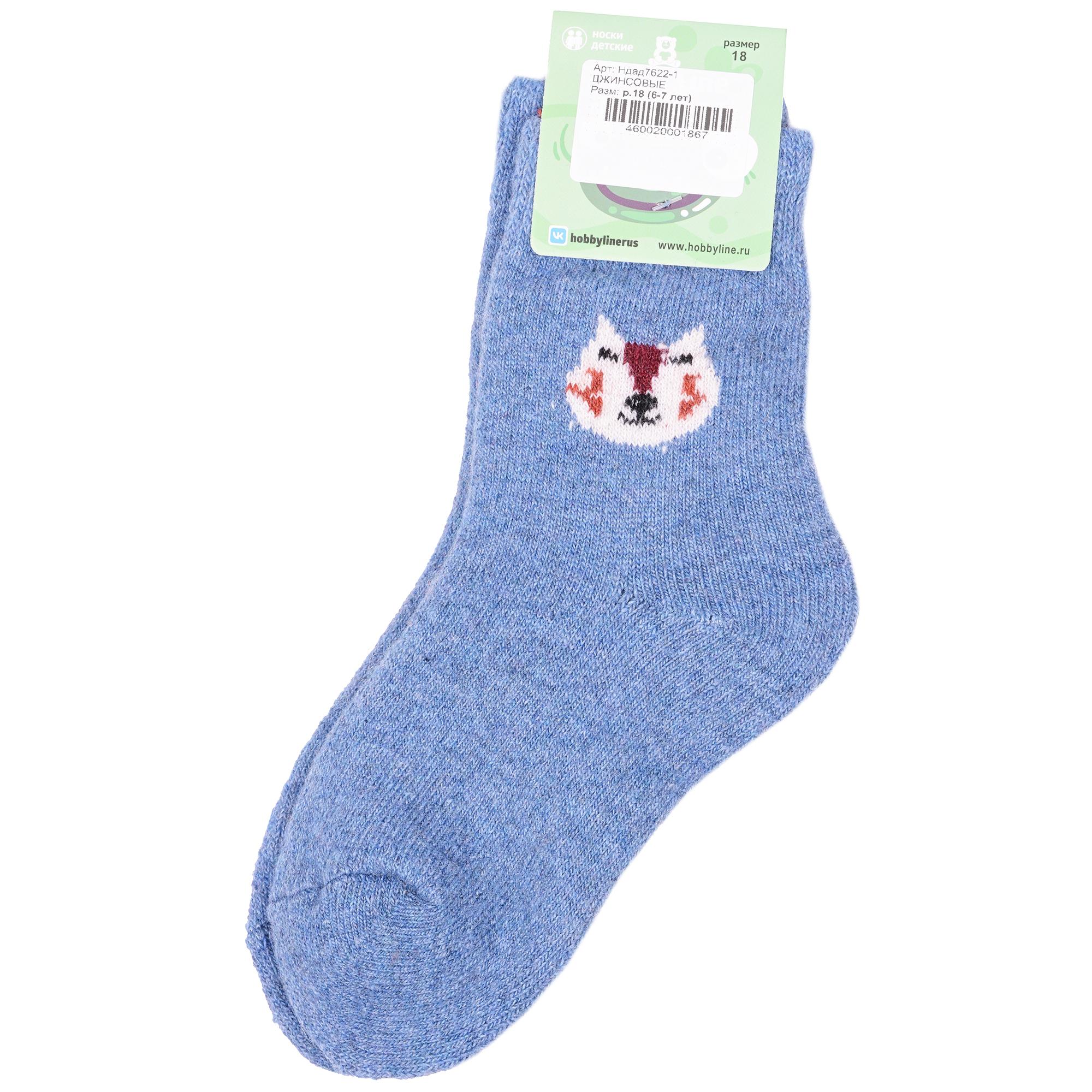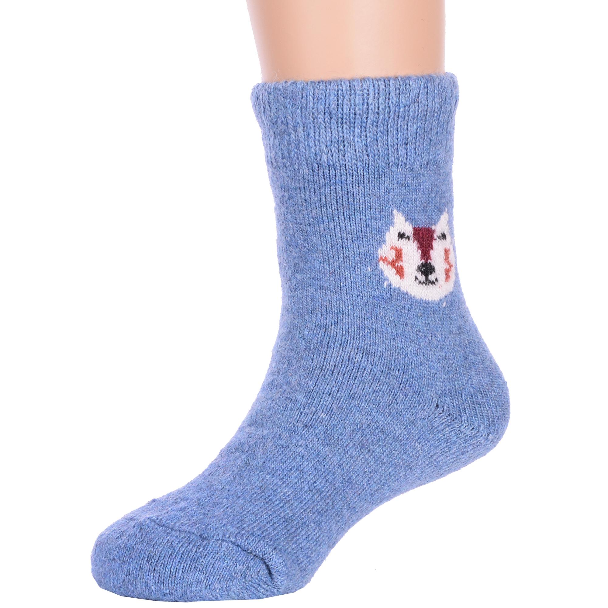 Зимние укороченные детские носки, цвет джинс, теплые, повседневные, махровые, шов обычный (не бесшовные), принт (рисунок): животные, с узором, состав: 35% вискоза, 20% шерсть, 10% ангора, 30% полиэстер, 5% эластан, арт. Ндад7622-1. Производитель «Китай, страна бренда - Россия» под брендом «Hobby line».