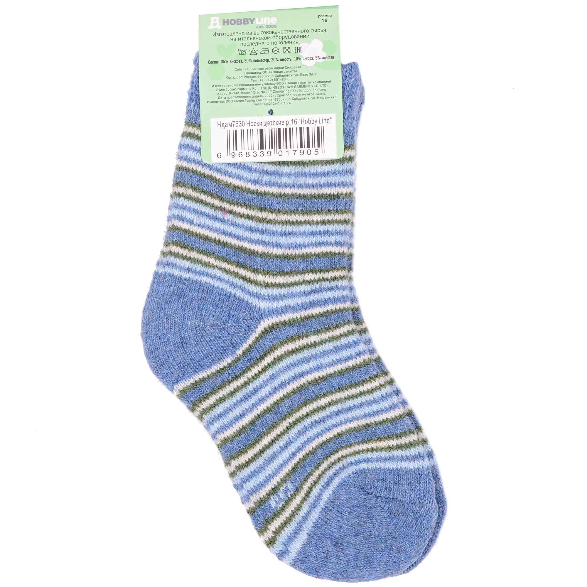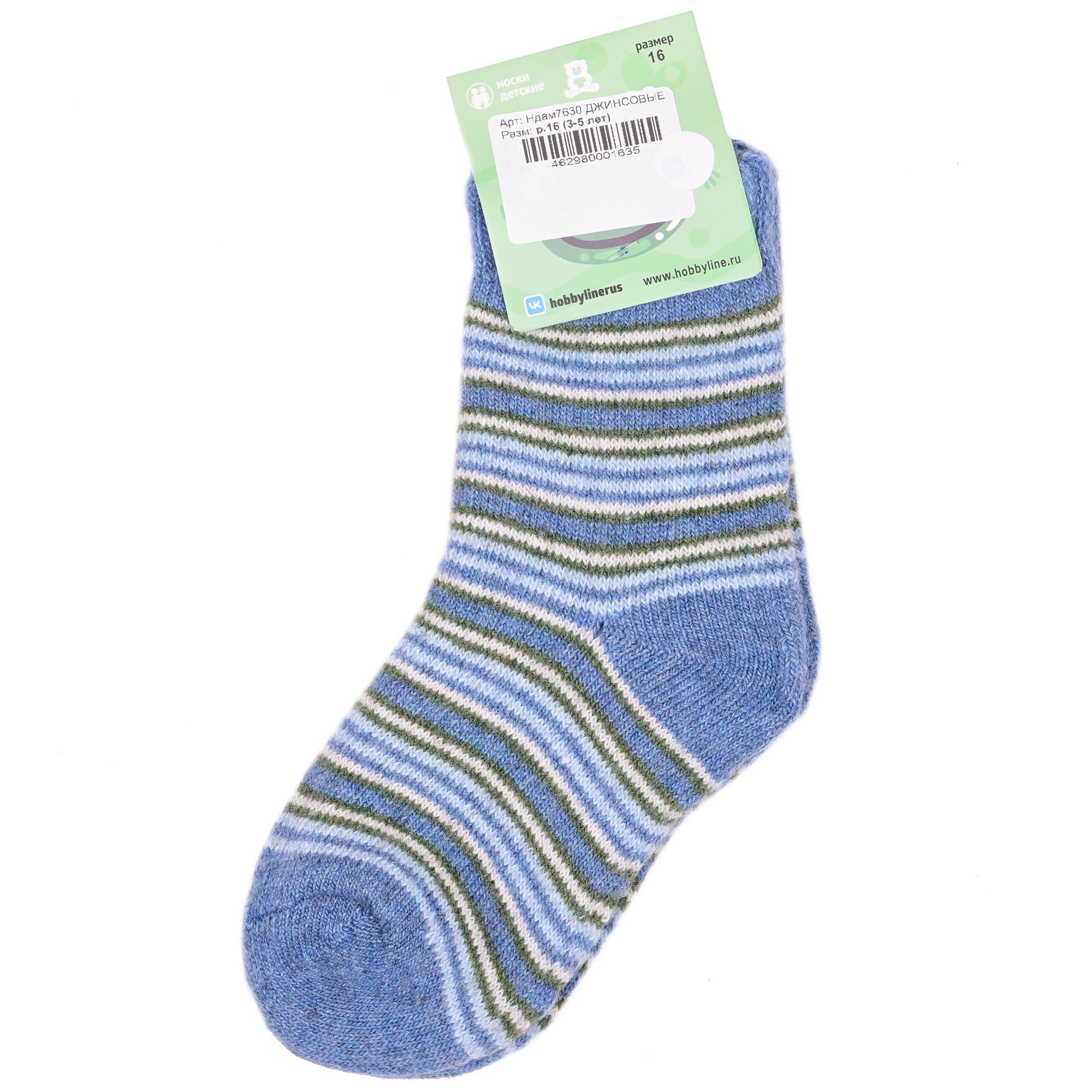 Зимние укороченные детские носки, цвет джинс, теплые, повседневные, махровые, шов обычный (не бесшовные), принт (рисунок): полоски, с узором, состав: 35% вискоза, 20% шерсть, 10% ангора, 30% полиэстер, 5% эластан, арт. Ндам7630. Производитель «Китай, страна бренда - Россия» под брендом «Hobby line».