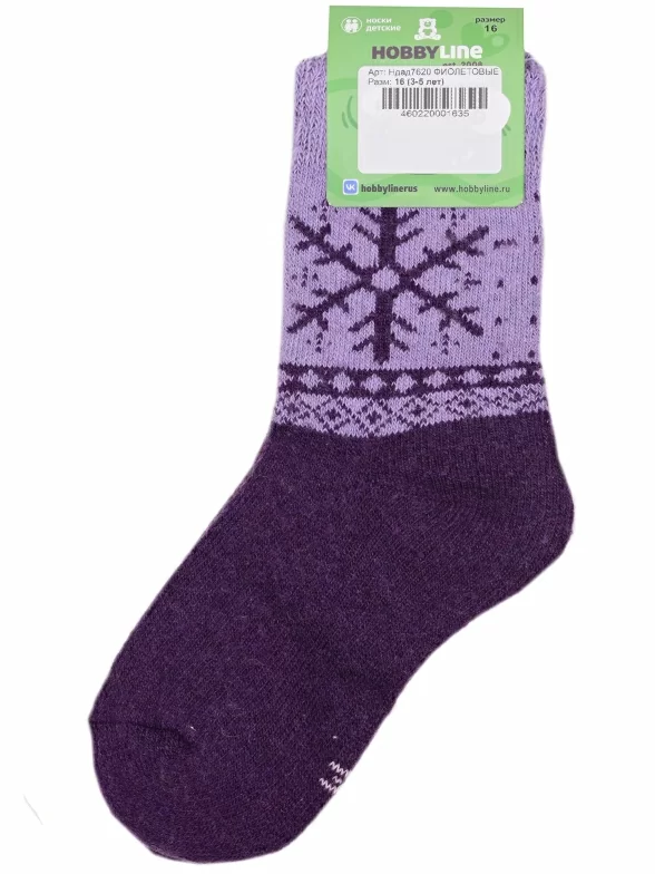 Зимние укороченные детские носки, цвет фиолетовый, махровые, теплые, с принтом, состав: 35% вискоза, 20% шерсть, 10% ангора, 30% полиэстер, 5% эластан (состав на этикетке может отличаться), арт. Ндад7620. Производитель «Китай, страна бренда - Россия» под брендом «Hobby line».