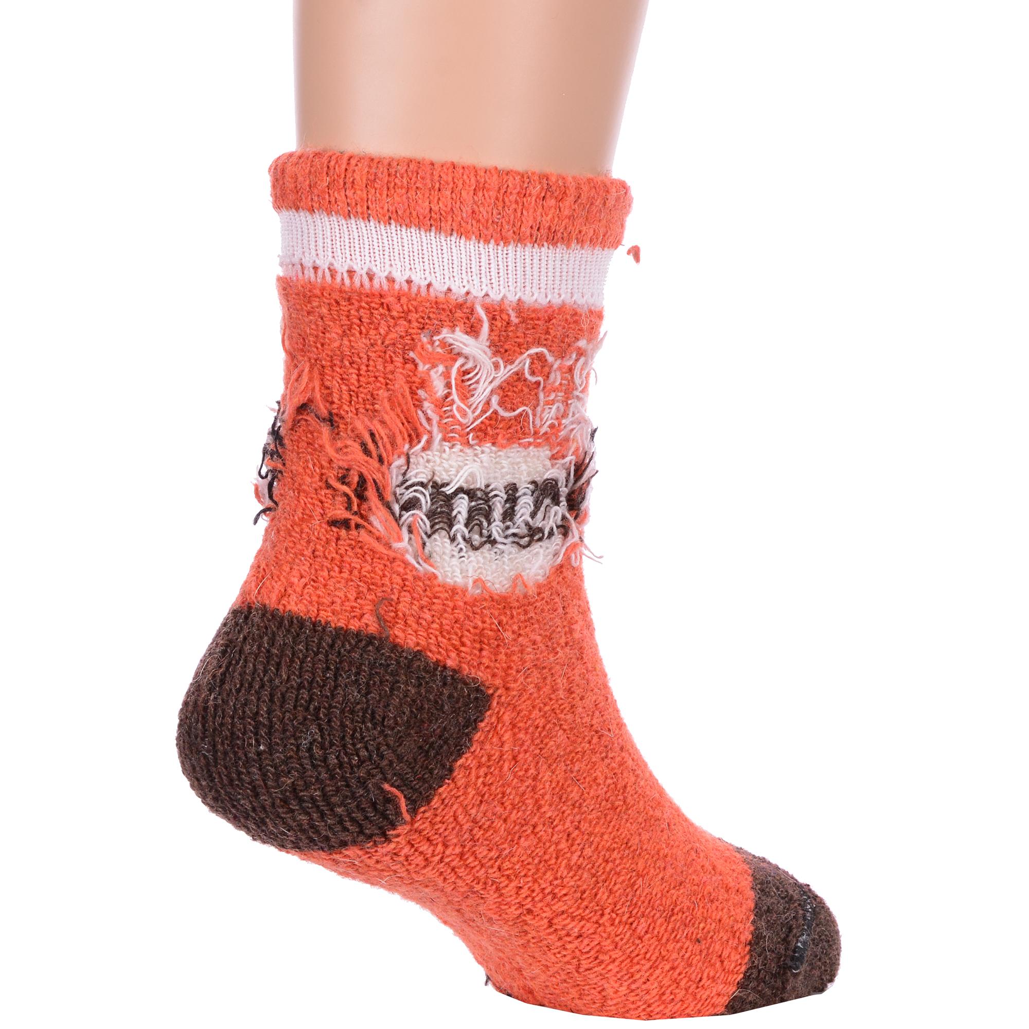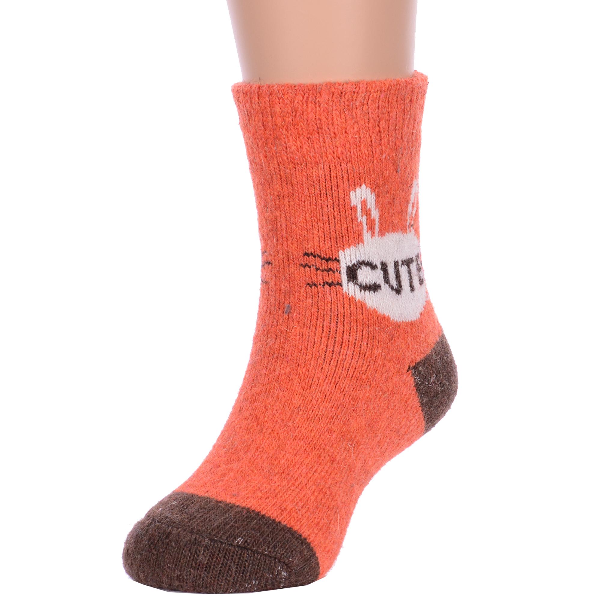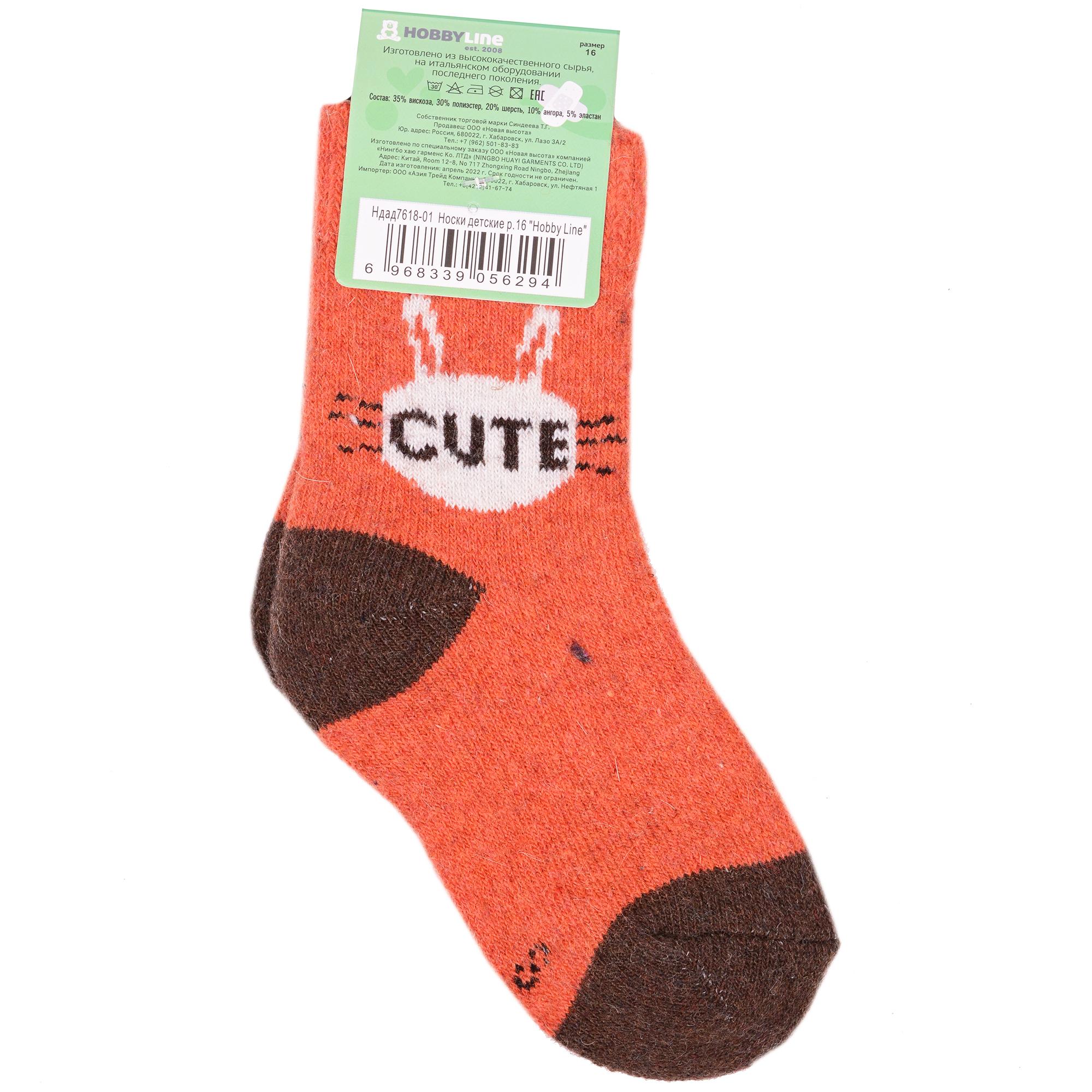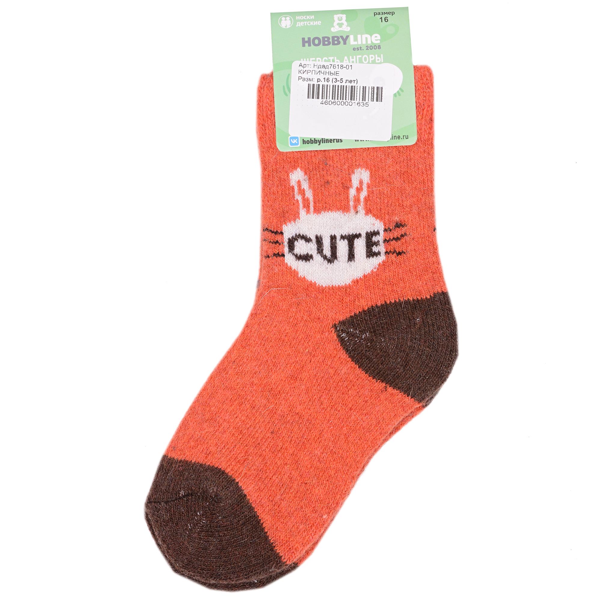 Зимние укороченные детские носки, цвет оранжевый, теплые, повседневные, махровые, шов обычный (не бесшовные), принт (рисунок): надписи, контрастные пятка / мысок / резинка, животные, с узором, состав: 35% вискоза, 20% шерсть, 10% ангора, 30% полиэстер, 5% эластан, арт. Ндад7618-01. Производитель «Китай, страна бренда - Россия» под брендом «Hobby line».