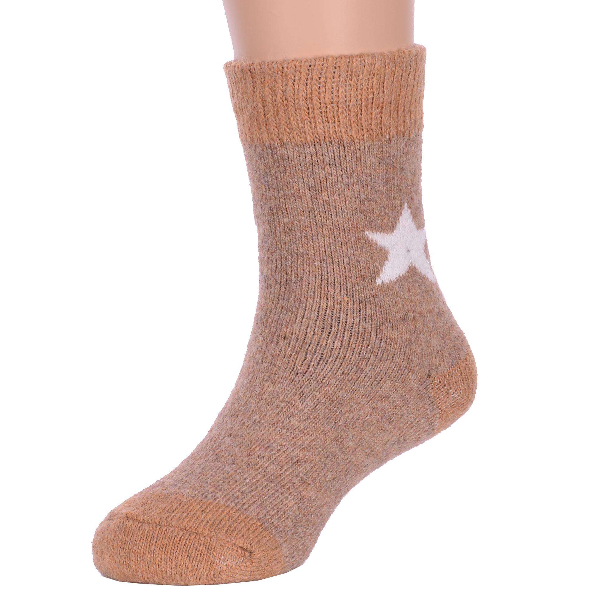 Зимние укороченные детские носки, цвет коричневый, теплые, повседневные, махровые, шов обычный (не бесшовные), принт (рисунок): контрастные пятка / мысок / резинка, звезды / небо, с узором, состав: 35% вискоза, 20% шерсть, 10% ангора, 30% полиэстер, 5% эластан, арт. Ндад7616. Производитель «Китай, страна бренда - Россия» под брендом «Hobby line».