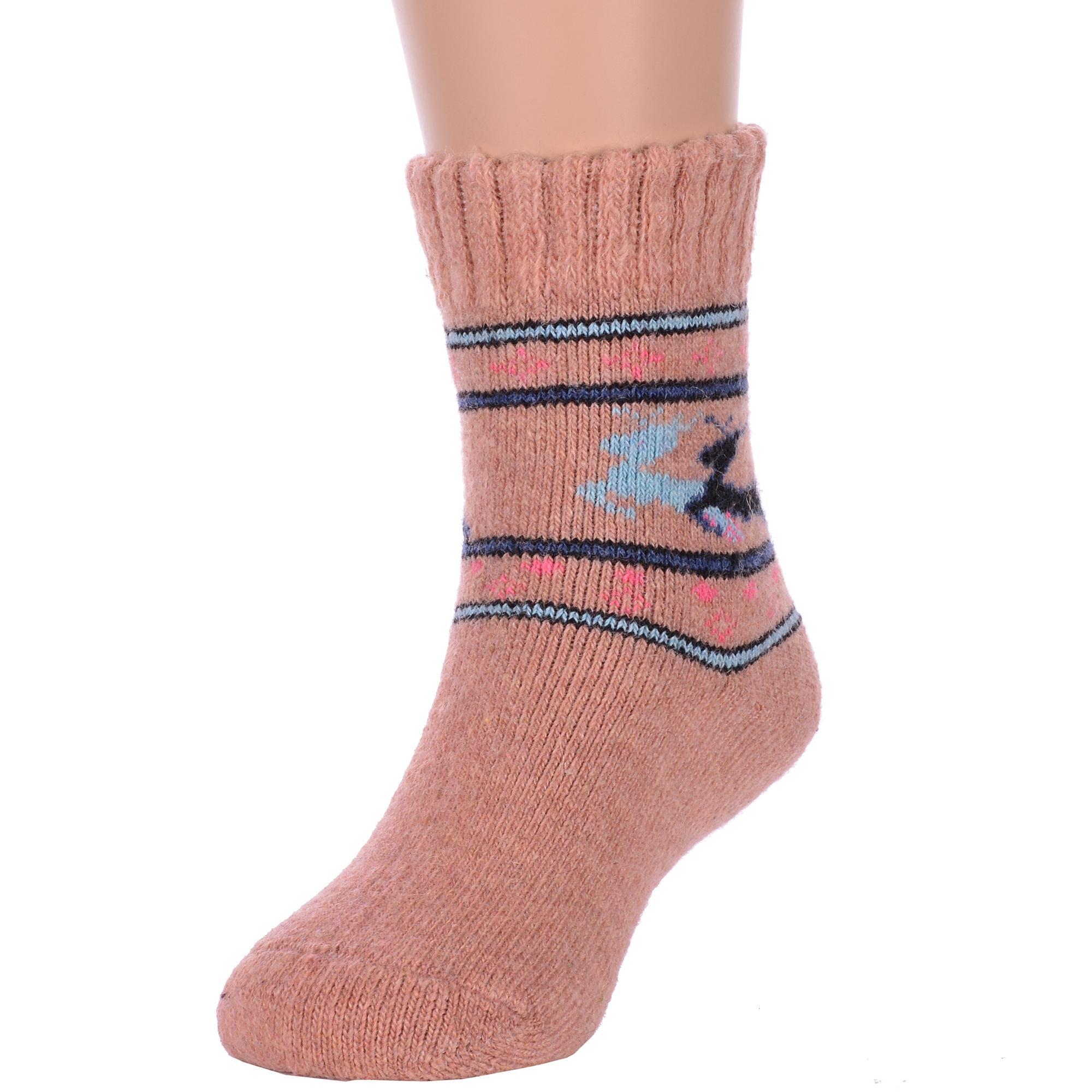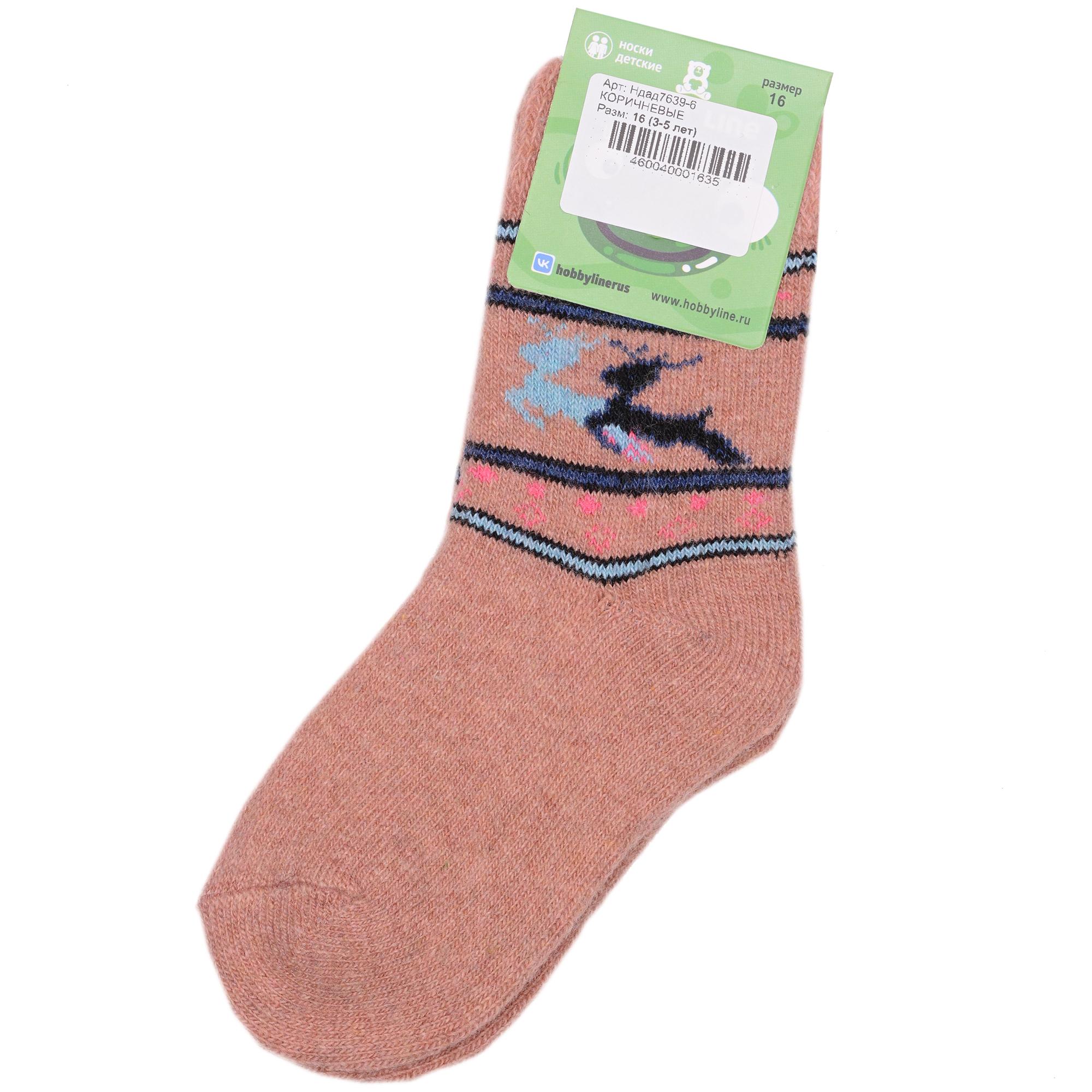 Зимние укороченные детские носки, цвет коричневый, теплые, повседневные, махровые, шов обычный (не бесшовные), принт (рисунок): новый год, животные, с узором, состав: 35% вискоза, 20% шерсть, 10% ангора, 30% полиэстер, 5% эластан, арт. Ндад7639-6. Производитель «Китай, страна бренда - Россия» под брендом «Hobby line».
