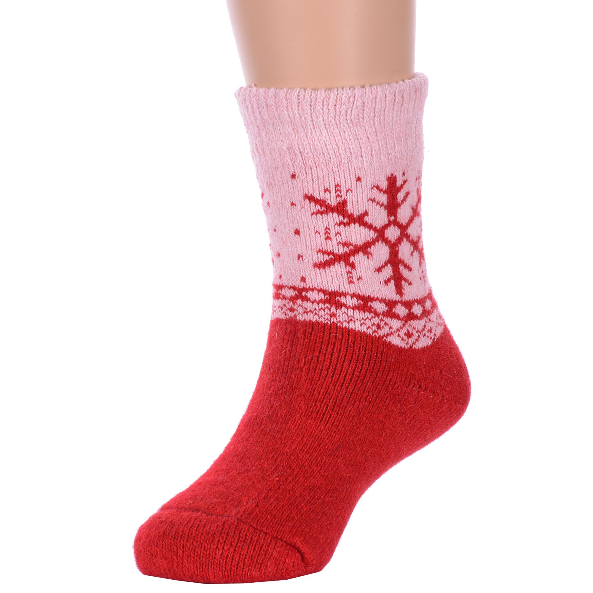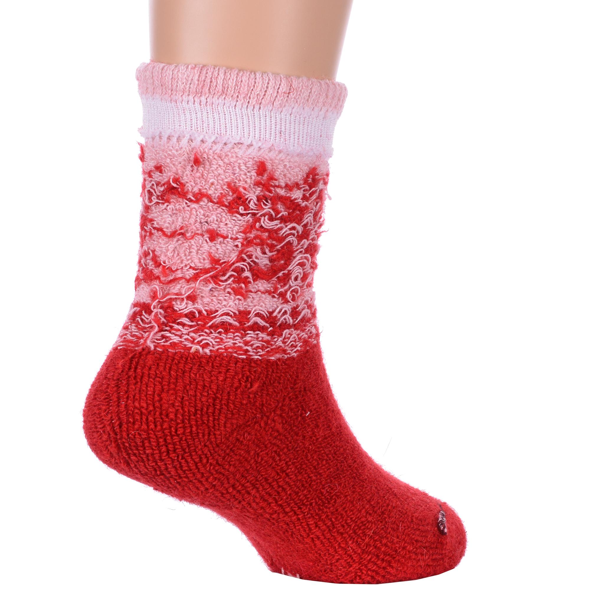 Зимние укороченные детские носки, цвет розовый-красный, теплые, повседневные, махровые, шов обычный (не бесшовные), принт (рисунок): орнамент, норвежский жаккард, зимний, новый год, с узором, состав: 35% вискоза, 20% шерсть, 10% ангора, 30% полиэстер, 5% эластан, арт. Ндад7620. Производитель «Китай, страна бренда - Россия» под брендом «Hobby line».