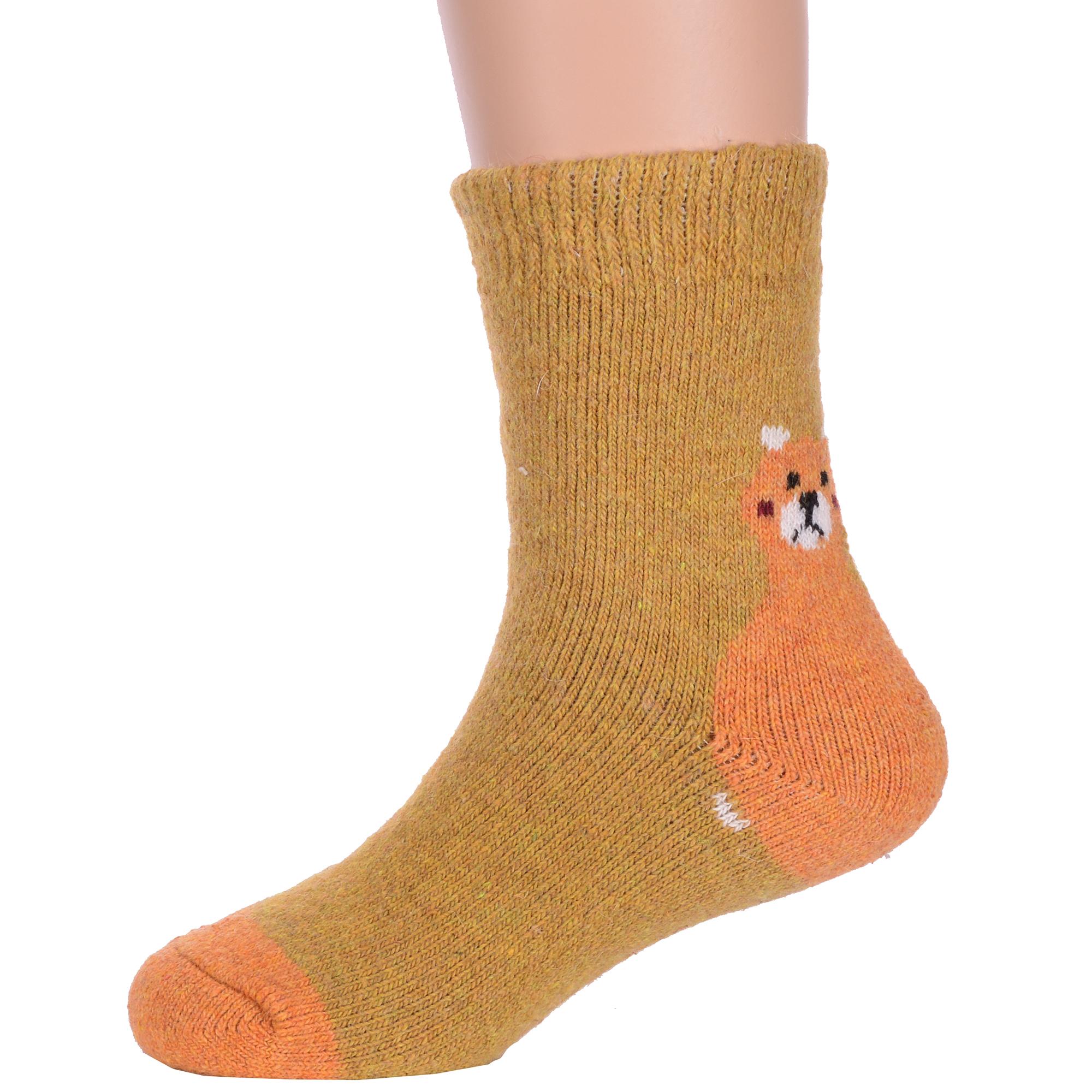Зимние укороченные детские носки, цвет коричневый, теплые, повседневные, махровые, шов обычный (не бесшовные), принт (рисунок): контрастные пятка / мысок / резинка, животные, с узором, состав: 35% вискоза, 20% шерсть, 10% ангора, 30% полиэстер, 5% эластан, арт. Ндад7617-1. Производитель «Китай, страна бренда - Россия» под брендом «Hobby line».