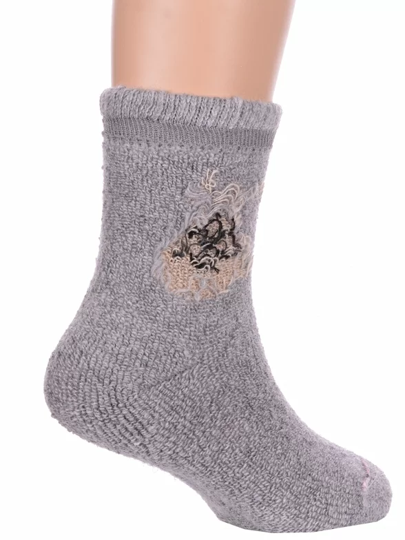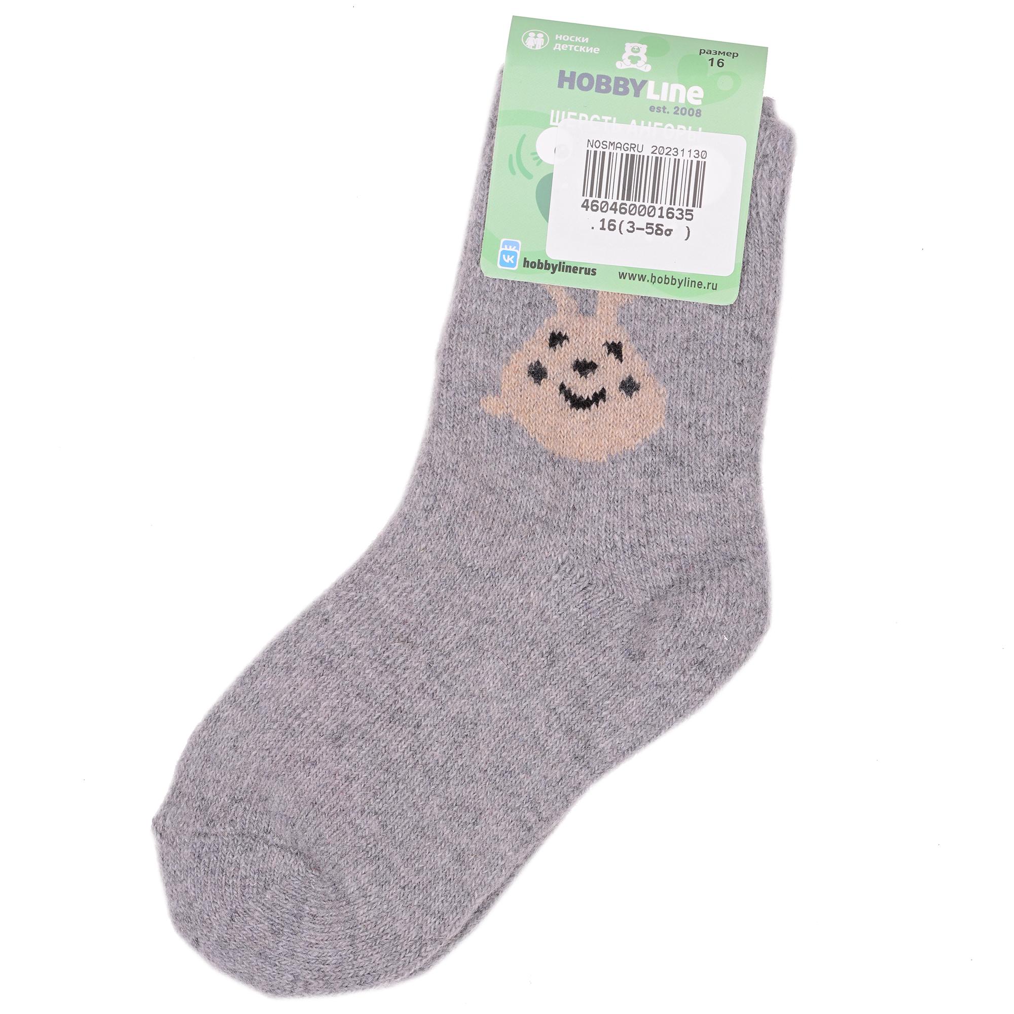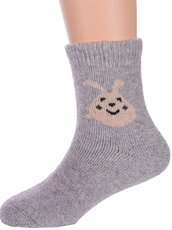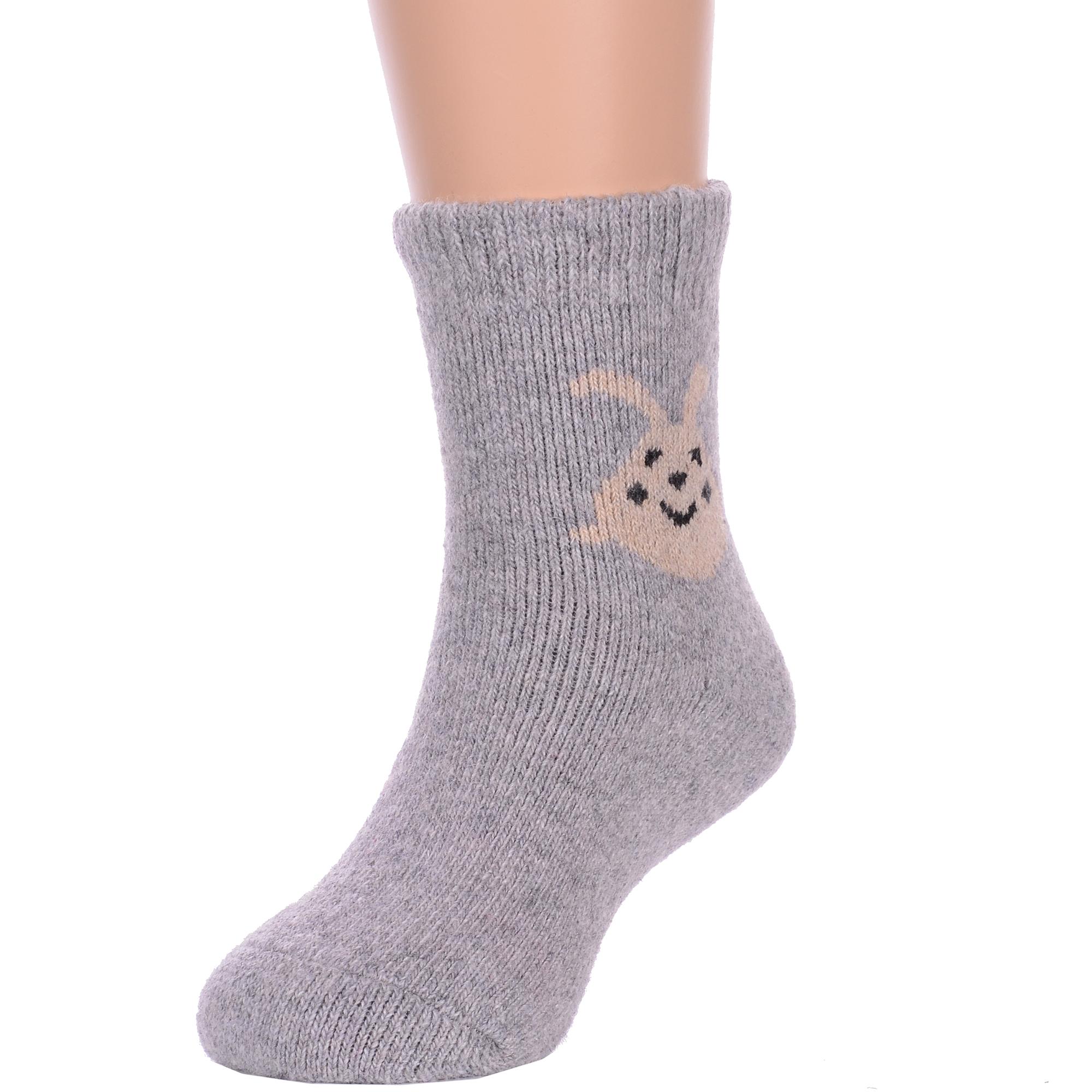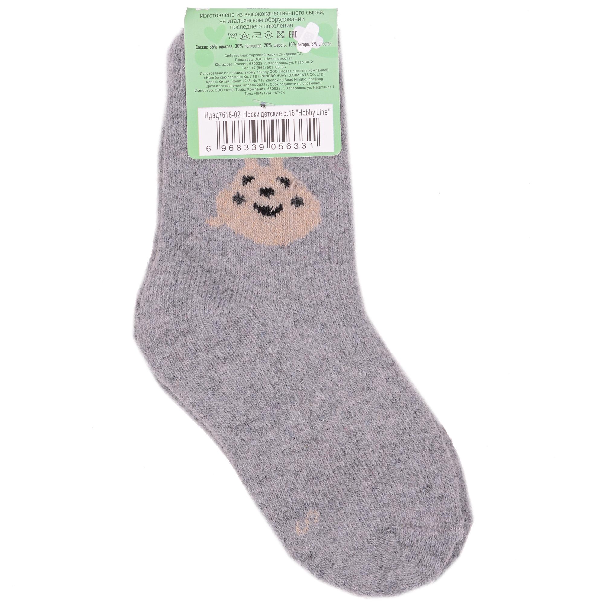 Зимние укороченные детские носки, цвет серый, теплые, повседневные, махровые, шов обычный (не бесшовные), принт (рисунок): животные, с узором, состав: 35% вискоза, 20% шерсть, 10% ангора, 30% полиэстер, 5% эластан, арт. Ндад7618-02. Производитель «Китай, страна бренда - Россия» под брендом «Hobby line».